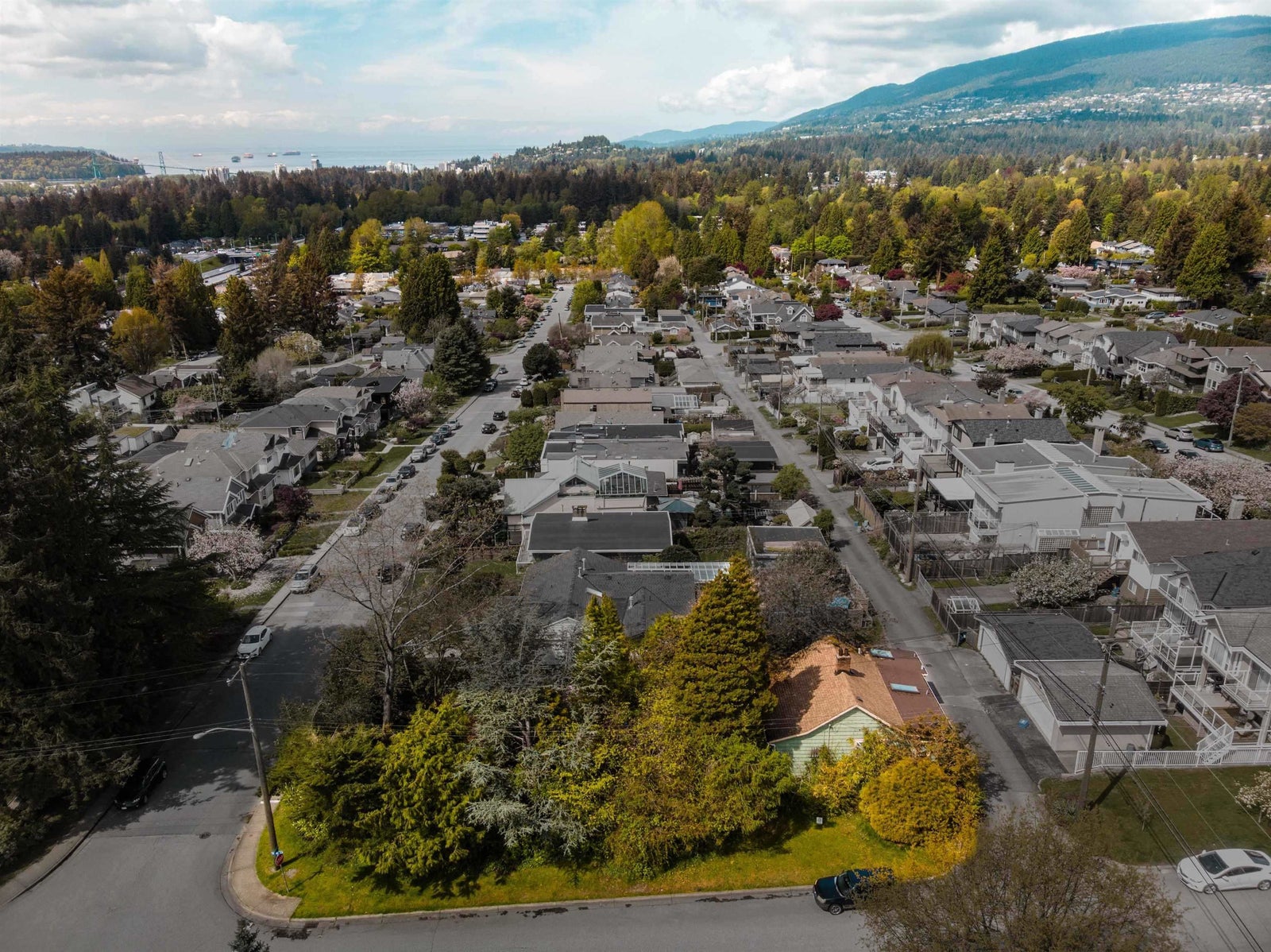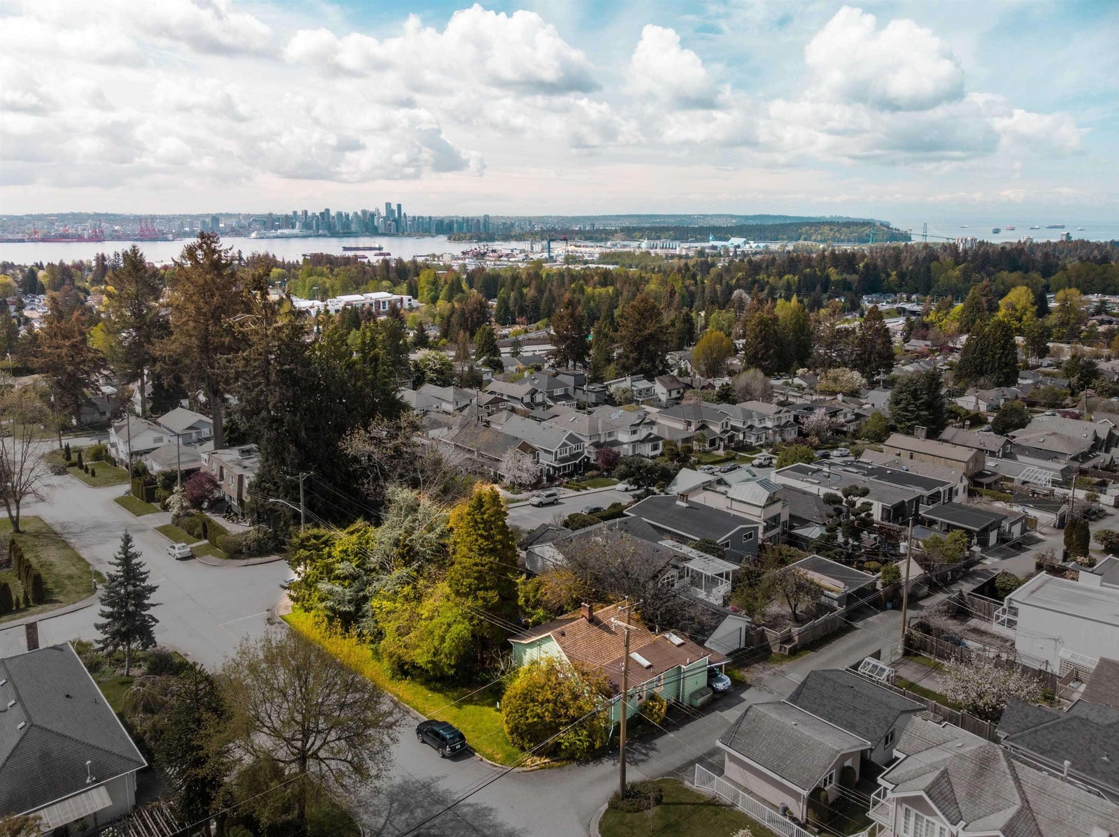 PERFECT FOR INVESTMENT or A CUSTOM NEW HOME! A beautiful 44 x 122 south facing lot with stunning views to the south of downtown Vancouver, 180 degree views to the west of Lions Gate Bridge + Ocean, and a beautiful snow capped mountain backdrop to the North. Situated on the NW corner of 27th & Mahon, this property provides perfect exposure for back and front yards which will be filled with sunshine throughout the day. Property contains an original charming 2 level home that is currently tenanted for $1700 upstairs & $1250 down, and the tenants would like to stay! A perfect opportunity to hold this property while designing your dream home. Lane Access with only 1 neighbour creates ultra privacy for a new home.