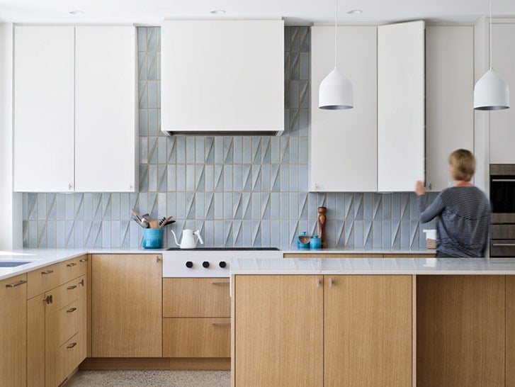 Another way to incorporate colour is by mixing it with different textures. We love how this B.C. home acheived understated elegance with their kitchen backsplash. Architect Randy Bens uses light blue tiles to balance out the wood and stone in the kitchen, creating an overall lighter (and brighter) feel to the space.