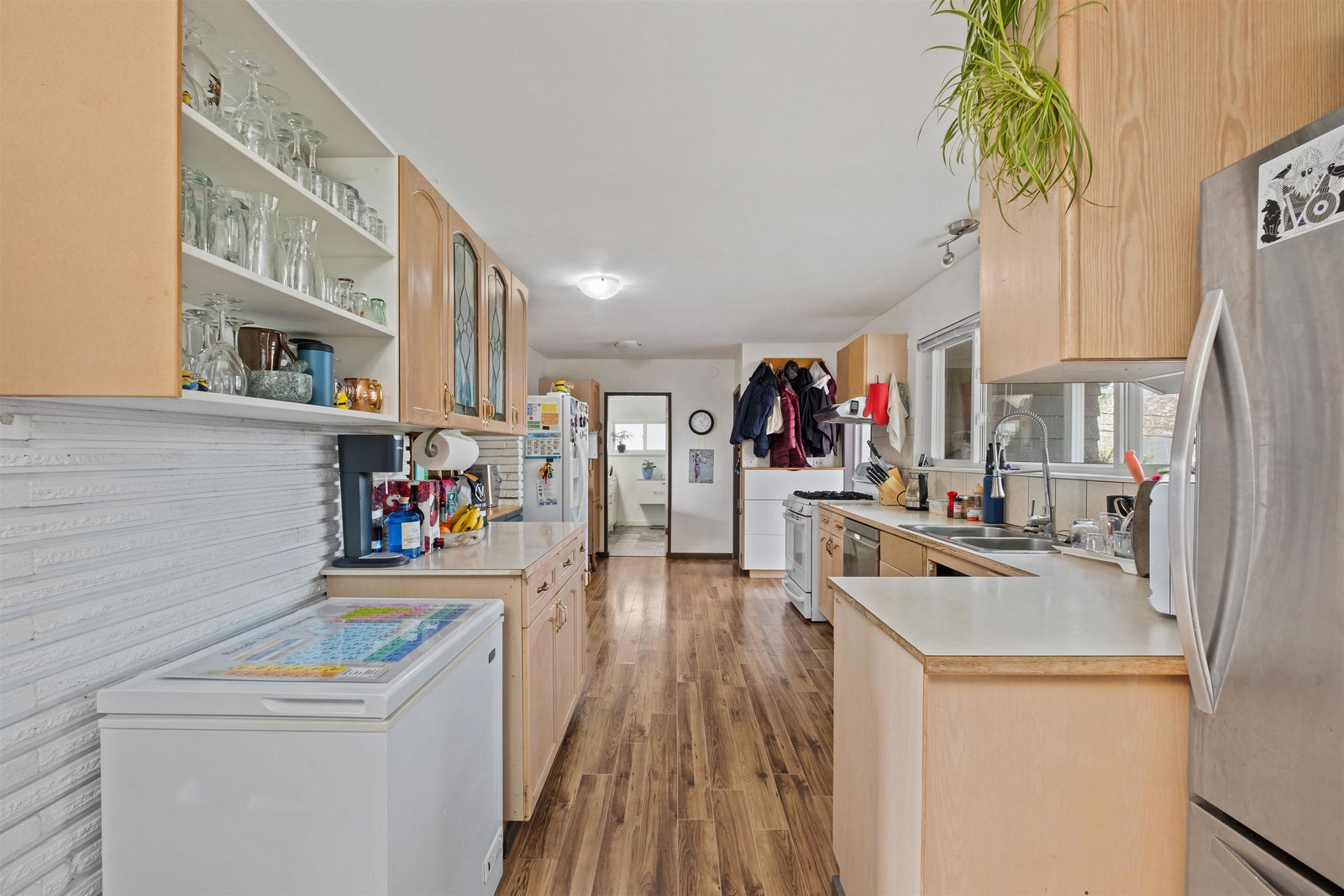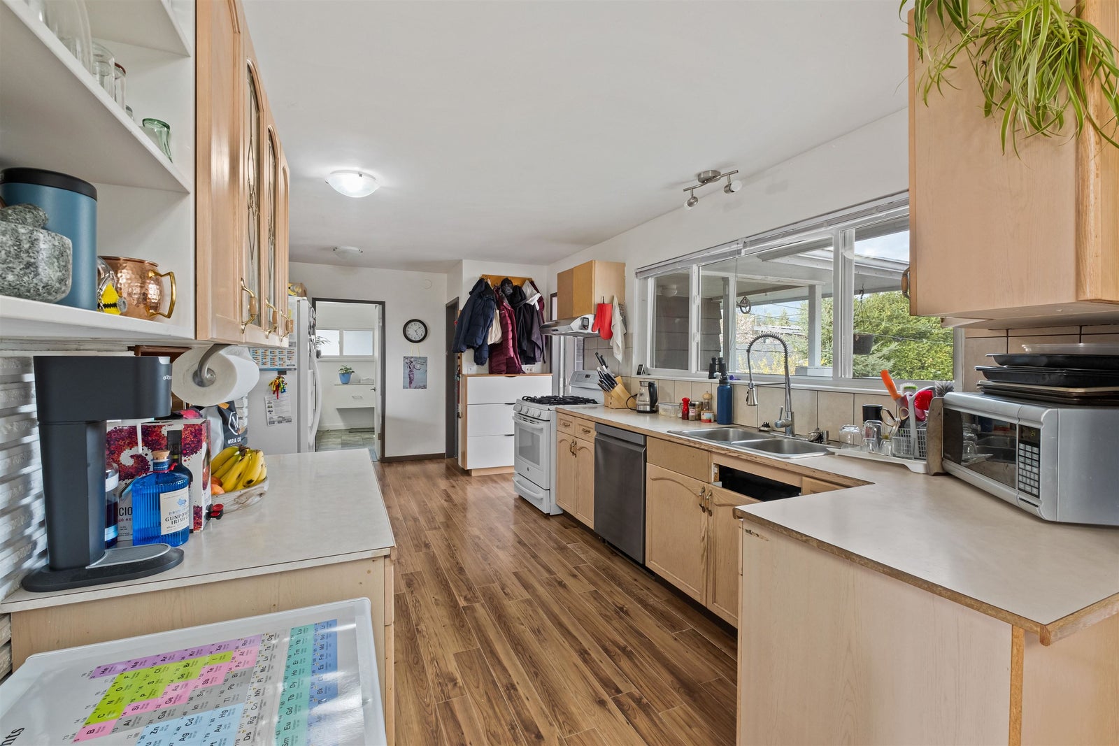 GRAND BOULEVARD LOCATION! Sitting on a flat 52 x 140 lot, this 2,500 SF home offers 4 bedrooms (2 up, 2 down) and 2 bathrooms. Ideally located at 13th and Grand Boulevard, it overlooks the park and is just steps to transit and Ray Perrault Park. Enjoy tennis courts, soccer fields, walking trails, and playgrounds right outside your door. The main level features oak hardwood floors, a cozy fireplace, a bright kitchen with an eating area, and access to a spacious backyard—perfect for entertaining. Downstairs includes a large rec room, two more bedrooms, and storage—ideal for a suite or extra family space. With City approval, there’s potential for a suite and coach house. Ample rear parking for a boat, RV, or extra storage. Long-term tenants in place—showings by appointment only with notice.