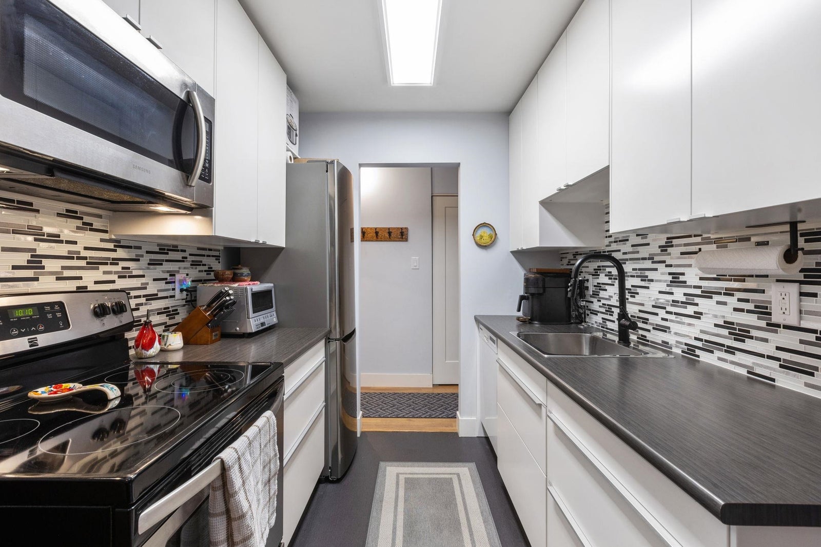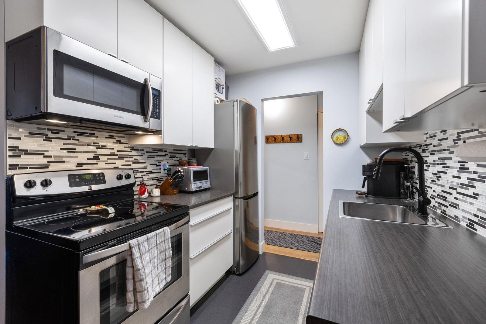 Beautiful 1 bedroom condo located in Lower Lonsdale with a bright south-facing layout. Enjoy the convenience of being just a short walk away from Lonsdale Quay, Shipyards, restaurants, local Breweries, shopping, and more. This unit features a 120 sqft patio perfect for BBQs. Shared laundry with newer machines and storage conveniently located across the hall. The building is very well-maintained with a proactive strata, making it an ideal place to call home in the vibrant Lower Lonsdale neighborhood. Unit is not ground level.
