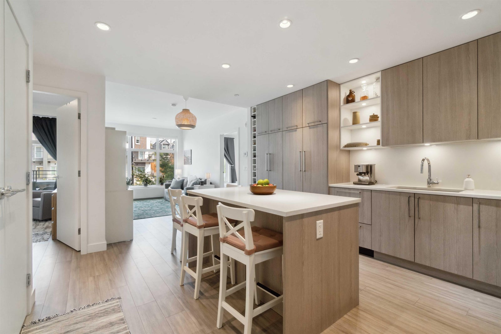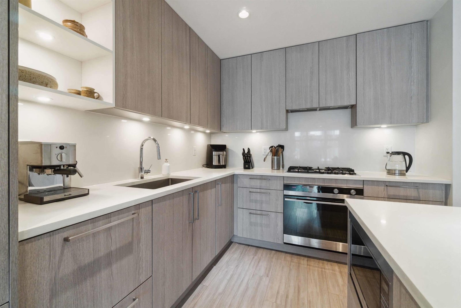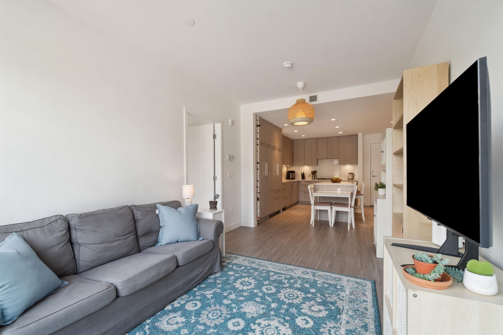 Discover your new home at Green – where thoughtful design meets exceptional living. This stunning 2-bedroom, 2-bathroom layout offers 900 square feet of beautifully crafted space, featuring premium interiors that leave a lasting impression. The chef’s kitchen is a true inspiration, boasting a seamless island, quartz countertops, a gas range, and integrated Fisher & Paykel appliances. Retreat to the elegant, spa-inspired bathrooms, complete with frameless showers, porcelain tile, and under-cabinet lighting, with bedrooms thoughtfully positioned on opposite sides of the suite for maximum privacy. Enjoy the tranquility of a cedar-enclosed patio, perfect for a cozy cottage-like escape. OPEN HOUSE THURSDAY CANCELLED. SHOWINGS SATURDAY BY APPOINTMENT ONLY.