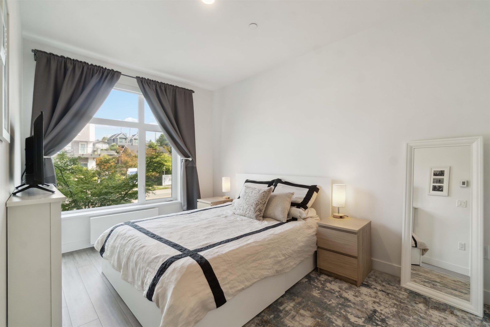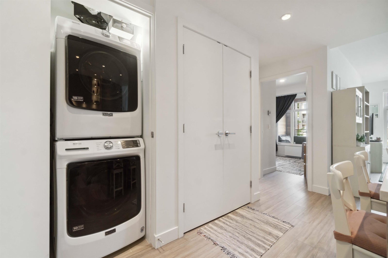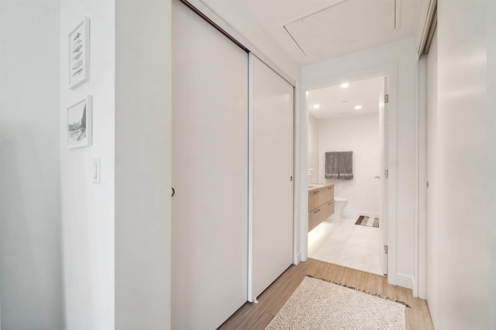 Discover your new home at Green – where thoughtful design meets exceptional living. This stunning 2-bedroom, 2-bathroom layout offers 900 square feet of beautifully crafted space, featuring premium interiors that leave a lasting impression. The chef’s kitchen is a true inspiration, boasting a seamless island, quartz countertops, a gas range, and integrated Fisher & Paykel appliances. Retreat to the elegant, spa-inspired bathrooms, complete with frameless showers, porcelain tile, and under-cabinet lighting, with bedrooms thoughtfully positioned on opposite sides of the suite for maximum privacy. Enjoy the tranquility of a cedar-enclosed patio, perfect for a cozy cottage-like escape. OPEN HOUSE THURSDAY CANCELLED. SHOWINGS SATURDAY BY APPOINTMENT ONLY.