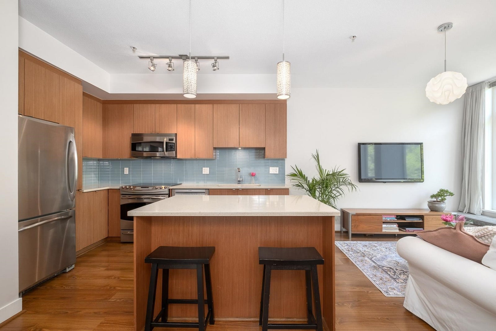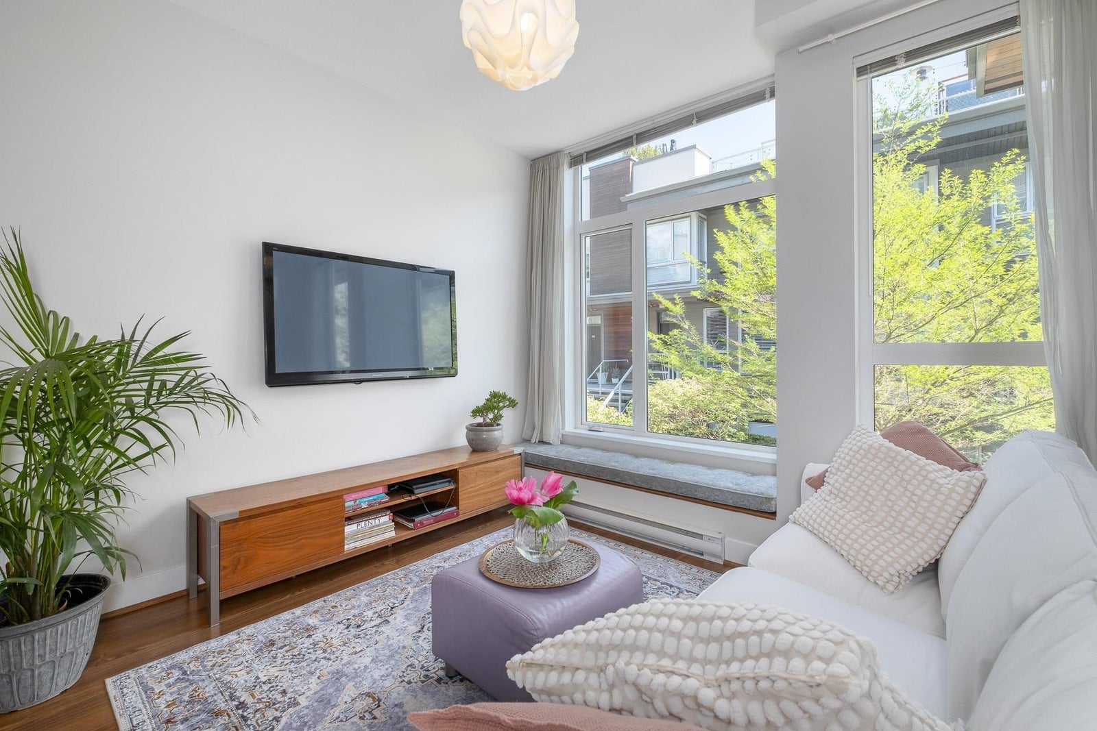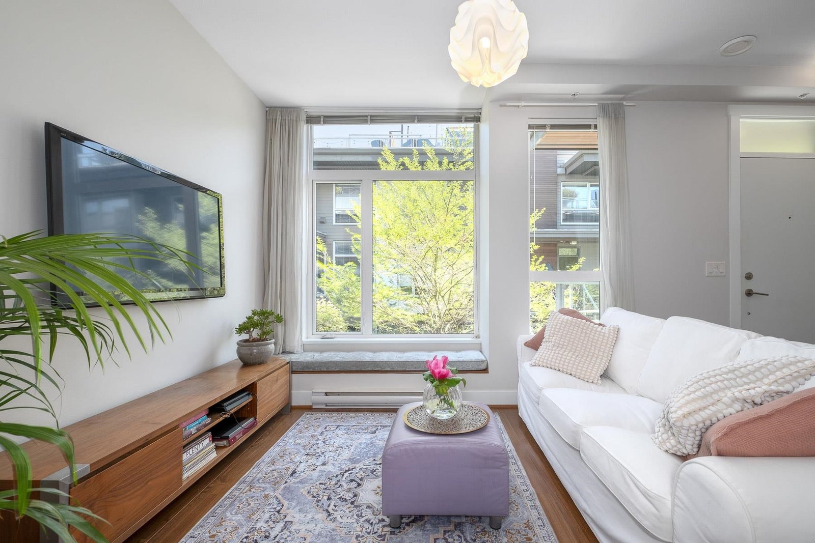 Welcome home to this spacious, open-concept 2 bed, 1.5 bath townhome! Located just steps from Marine Drive & walking trails, you’ve got the city & nature at your doorstep. Tons of natural light in this east-facing unit with 349 sf rooftop patio with views of downtown & the North Shore mountains. Updated appliances throughout, rooftop hot tub, an abundance of in suite storage & high ceilings with floor-to-ceiling windows. Built by award winning Adera, with two prestigious building certifications: LEED Platinum & Built Green Gold. Situated in a quiet nook, schools & shopping within walking distance & HWY 1 nearby. 1 parking, 1 storage locker, rentals & 2 pets allowed. Enjoy the fully stocked gym, bike room, playground & gardening plots. Sneak peak Thurs 5-7pm. Open House Sat & Sun 2-4pm.