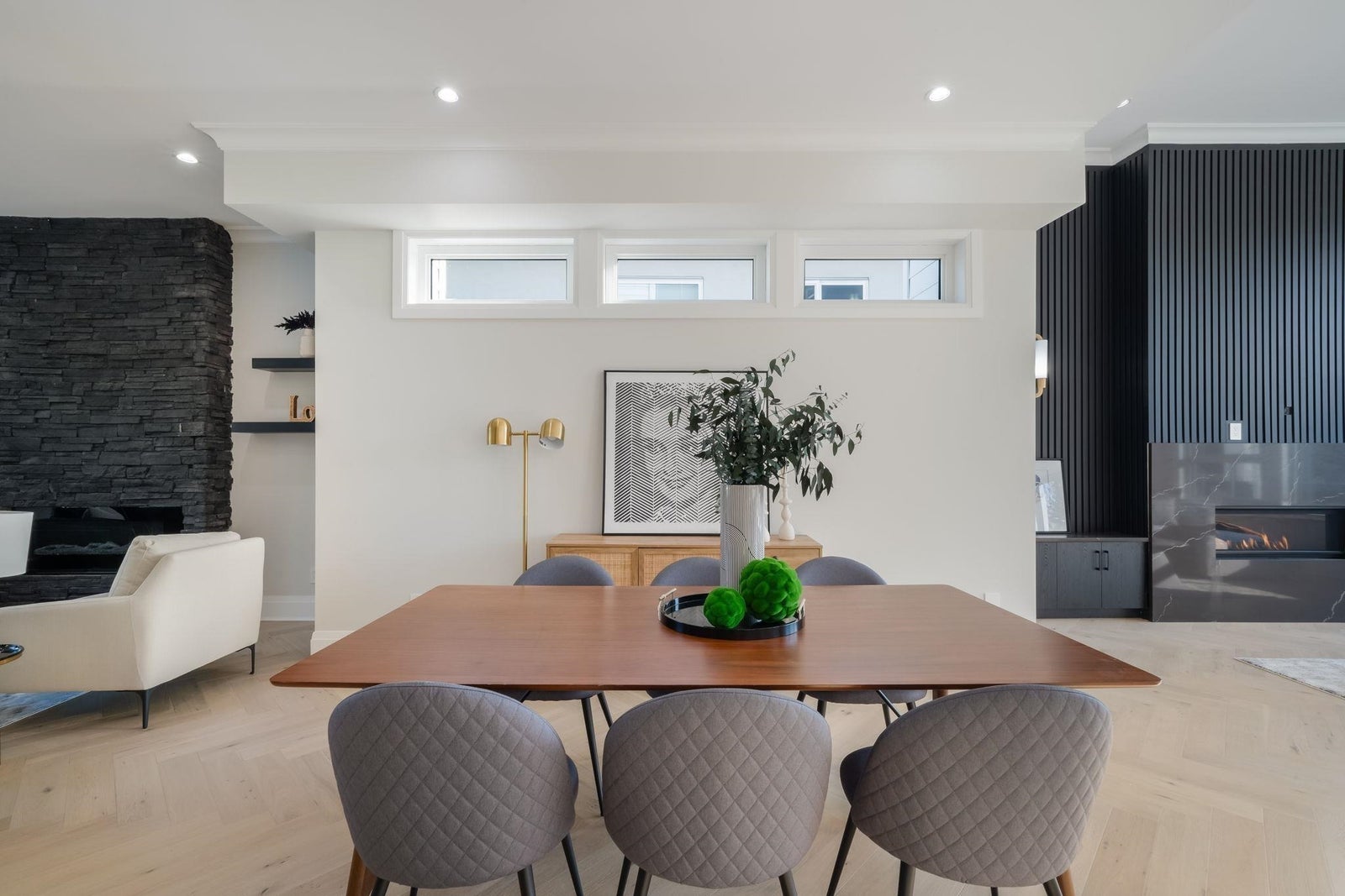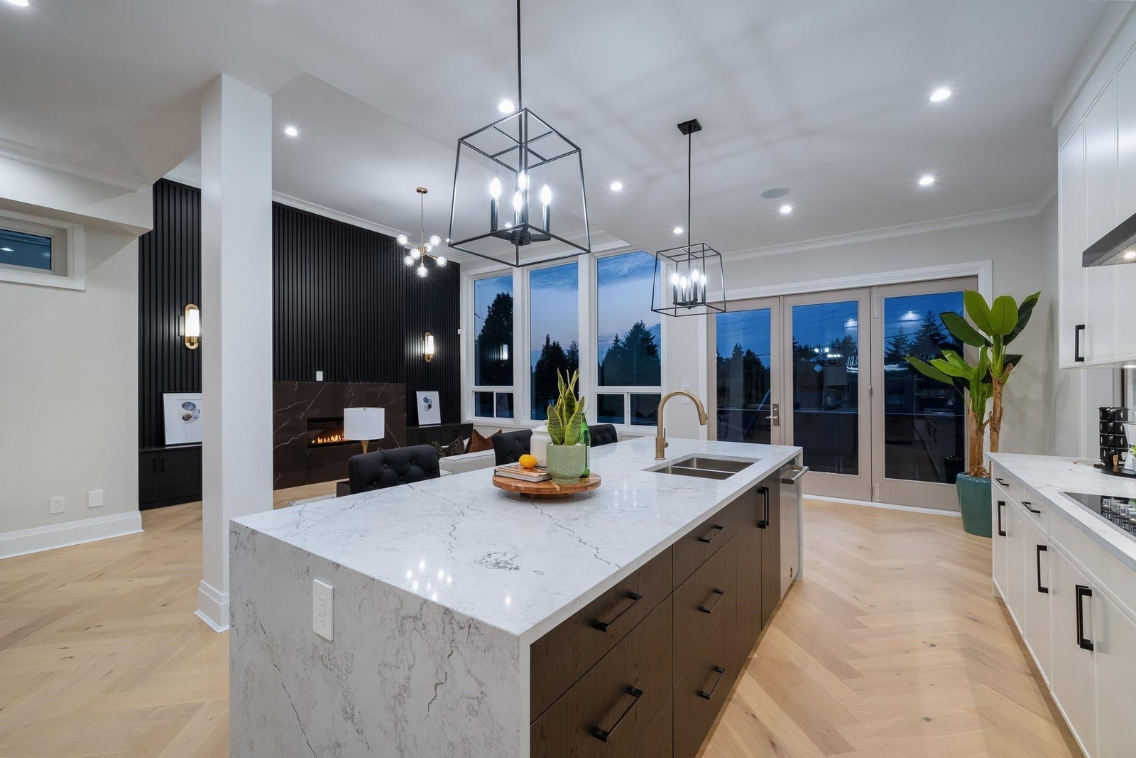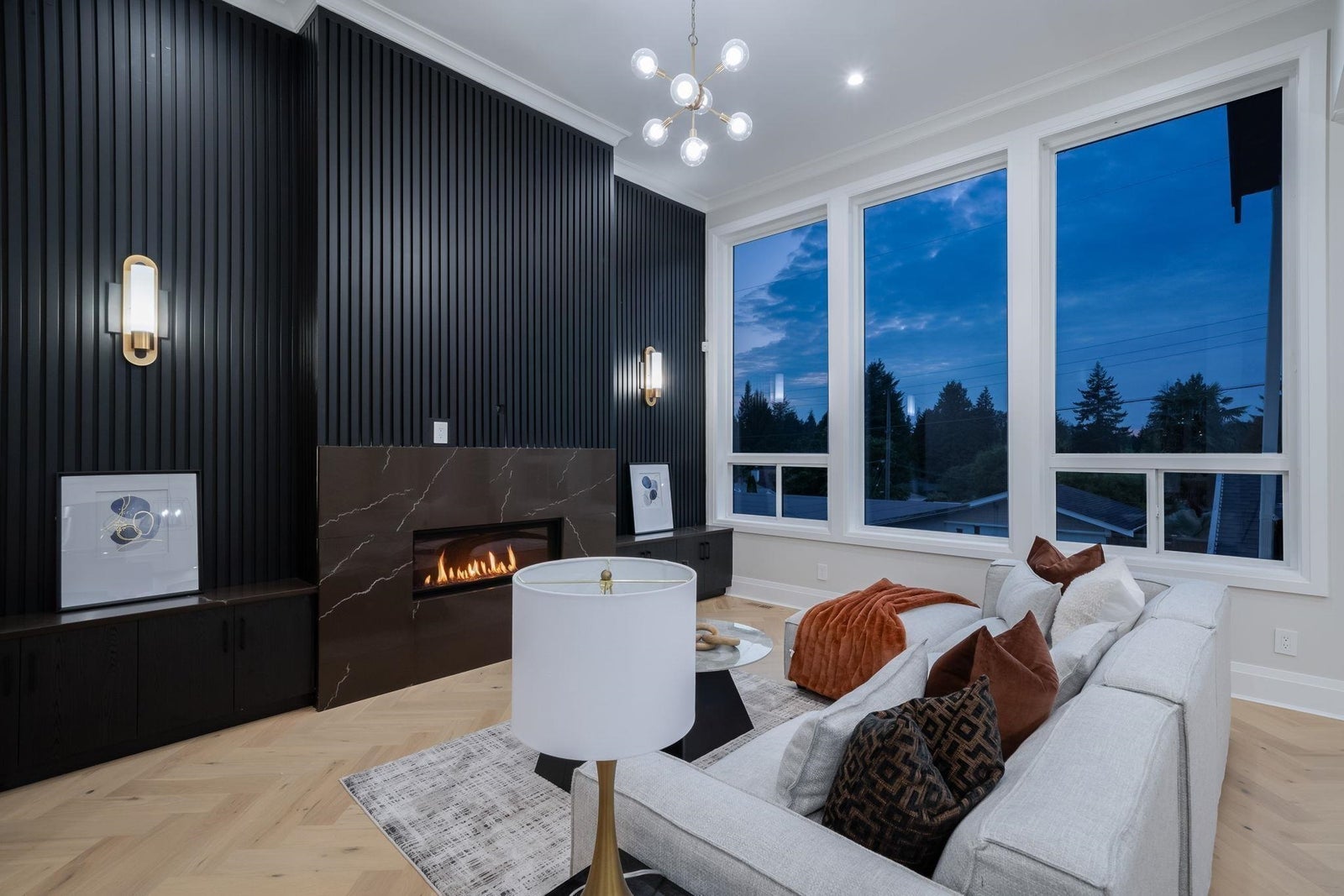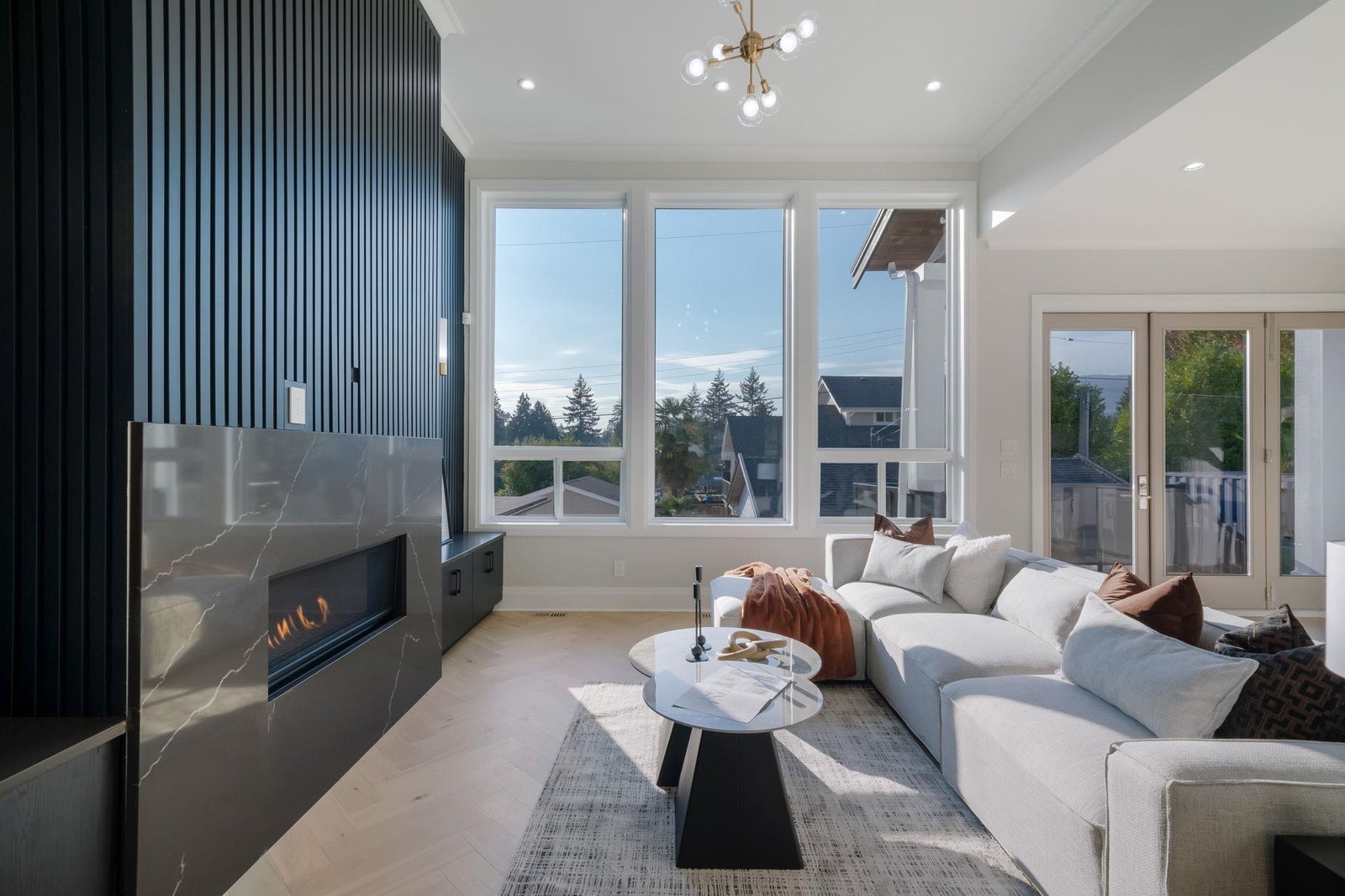 Discover modern luxury in this newly crafted home, nestled in a quiet, yet convenient Central Lonsdale neighbourhood. The main floor features over-height ceilings with expansive windows steaming in natural light while maintaining your privacy. Enjoy the design touches with its herringbone oak hardwood floors, millwork panelling details, wallpapered powder room, feature walls, & light fixtures. The chef's kitchen offers a deluxe fridge & freezer with a spice kitchen boasting a gas cooktop & additional fridge. Upstairs you'll find four bedrooms each with their own ensuite for ultimate convenience. The basement hosts a 2-bedroom LEGAL SUITE with its own entrance, media room, & wet bar for versatile entertaining. Completed with a 2 car garage & outdoor space. Take a look before it's gone!