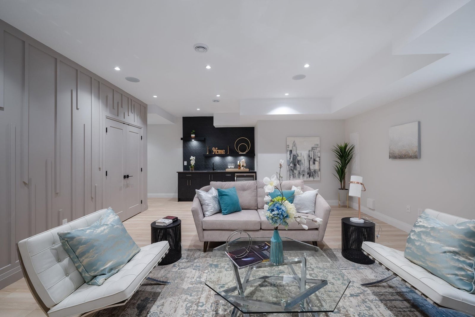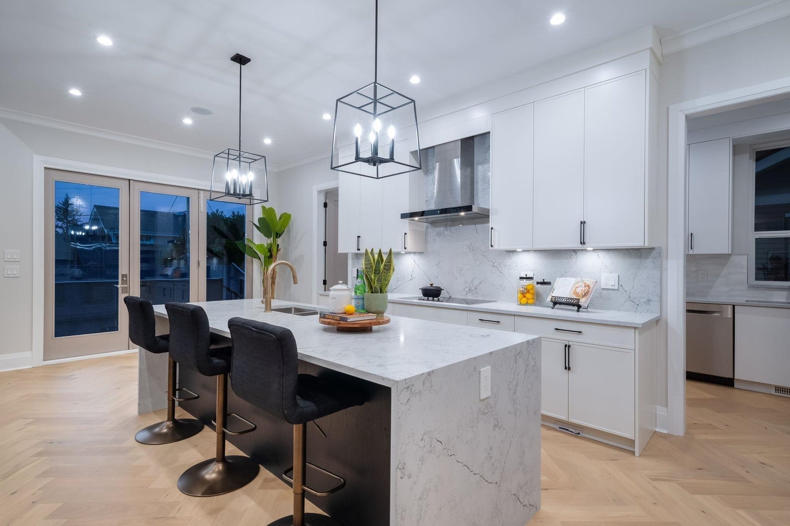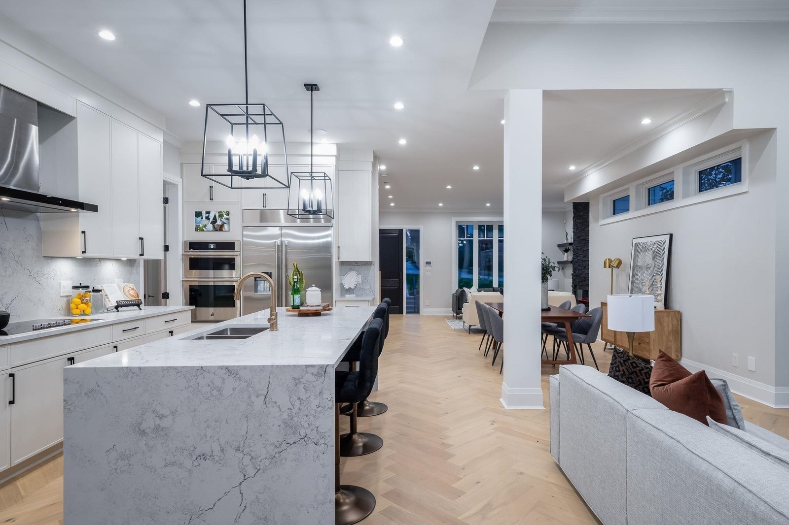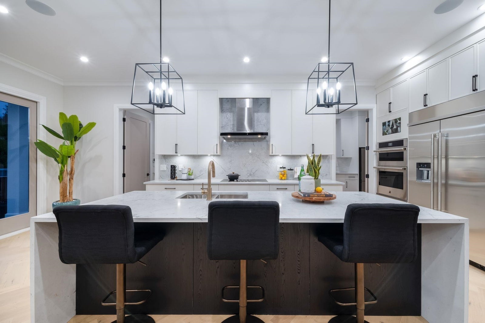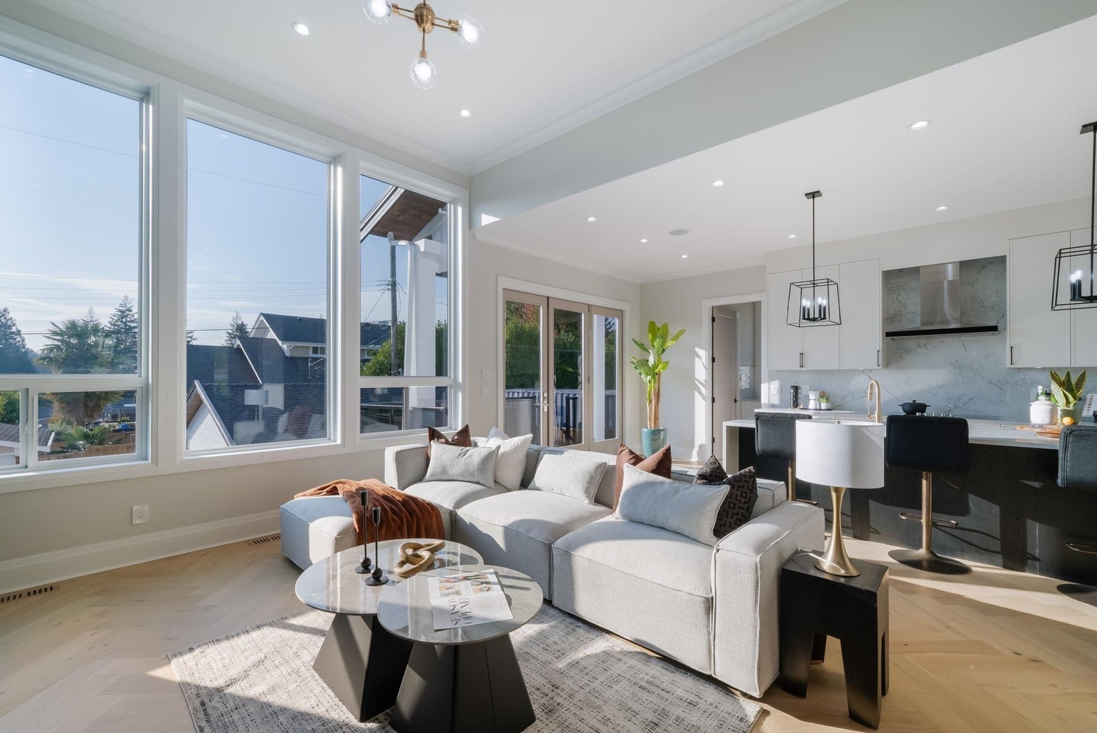 Discover modern luxury in this newly crafted home, nestled in a quiet, yet convenient Central Lonsdale neighbourhood. The main floor features over-height ceilings with expansive windows steaming in natural light while maintaining your privacy. Enjoy the design touches with its herringbone oak hardwood floors, millwork panelling details, wallpapered powder room, feature walls, & light fixtures. The chef's kitchen offers a deluxe fridge & freezer with a spice kitchen boasting a gas cooktop & additional fridge. Upstairs you'll find four bedrooms each with their own ensuite for ultimate convenience. The basement hosts a 2-bedroom LEGAL SUITE with its own entrance, media room, & wet bar for versatile entertaining. Completed with a 2 car garage & outdoor space. Take a look before it's gone!