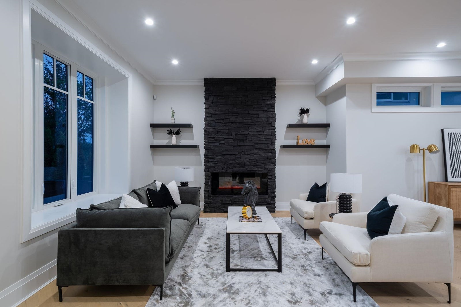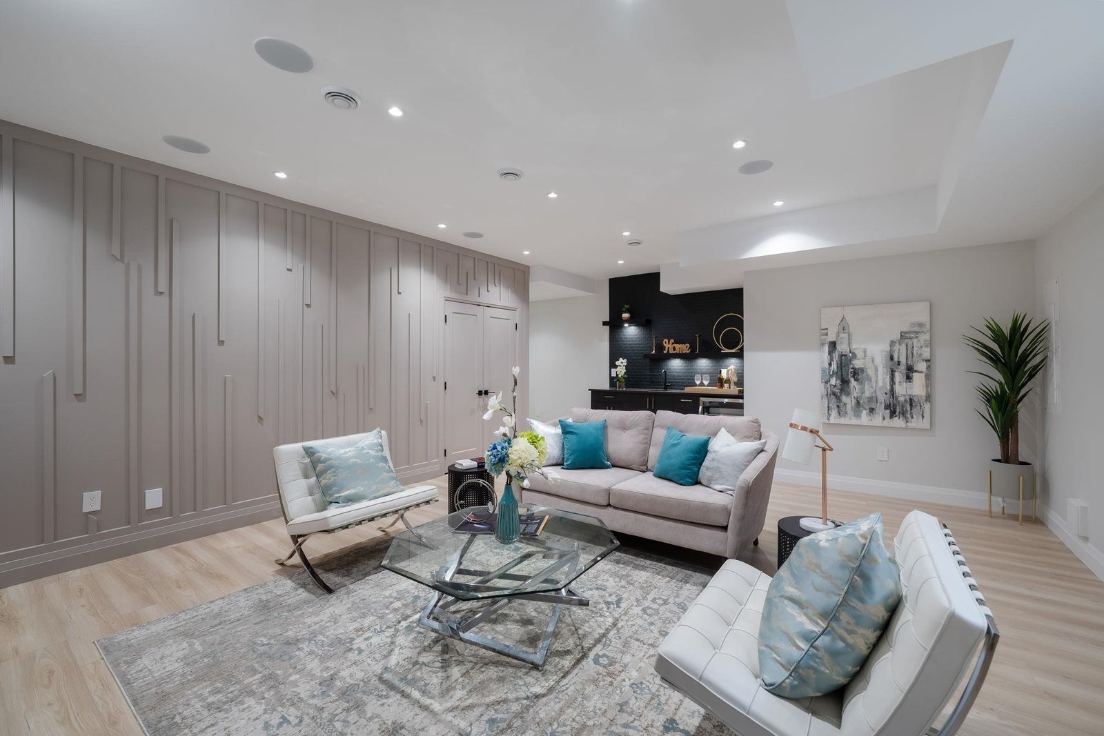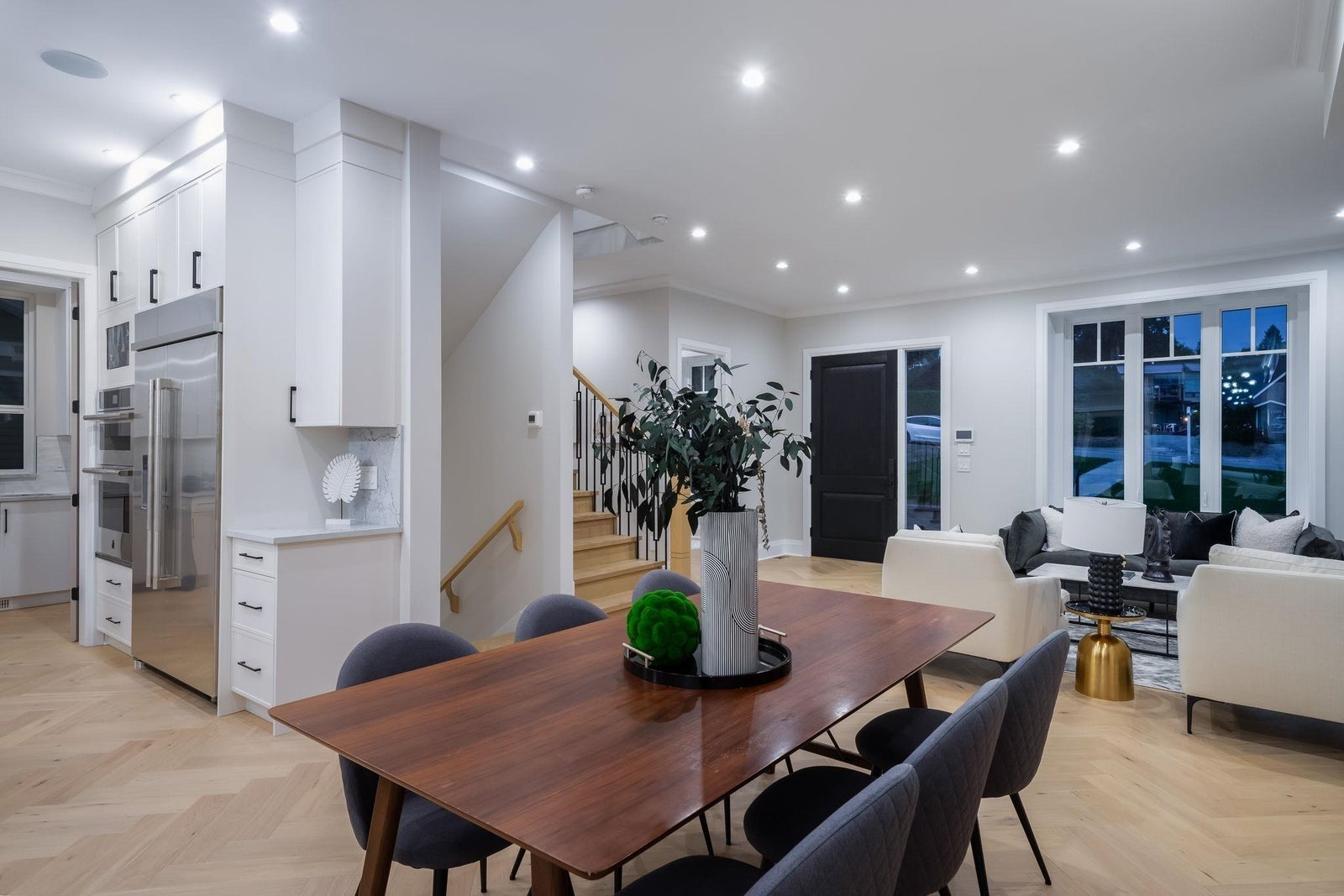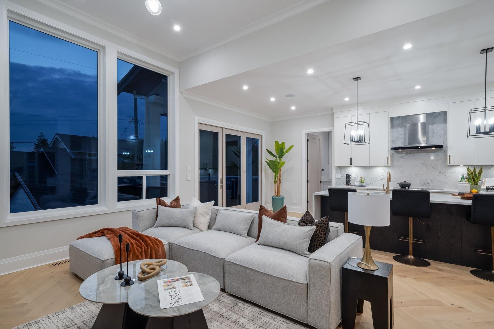 Discover modern luxury in this newly crafted home, nestled in a quiet, yet convenient Central Lonsdale neighbourhood. The main floor features over-height ceilings with expansive windows steaming in natural light while maintaining your privacy. Enjoy the design touches with its herringbone oak hardwood floors, millwork panelling details, wallpapered powder room, feature walls, & light fixtures. The chef's kitchen offers a deluxe fridge & freezer with a spice kitchen boasting a gas cooktop & additional fridge. Upstairs you'll find four bedrooms each with their own ensuite for ultimate convenience. The basement hosts a 2-bedroom LEGAL SUITE with its own entrance, media room, & wet bar for versatile entertaining. Completed with a 2 car garage & outdoor space. Take a look before it's gone!