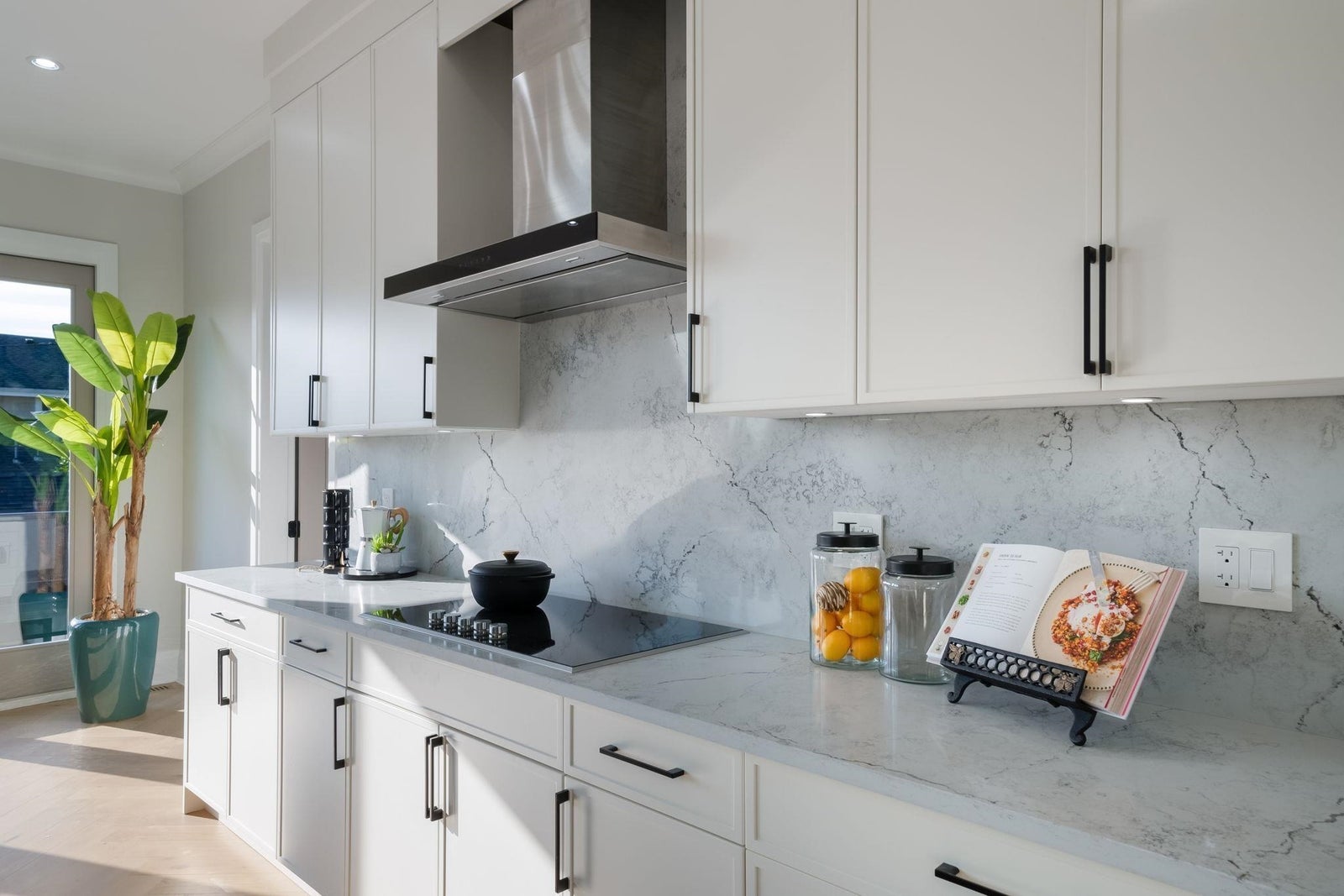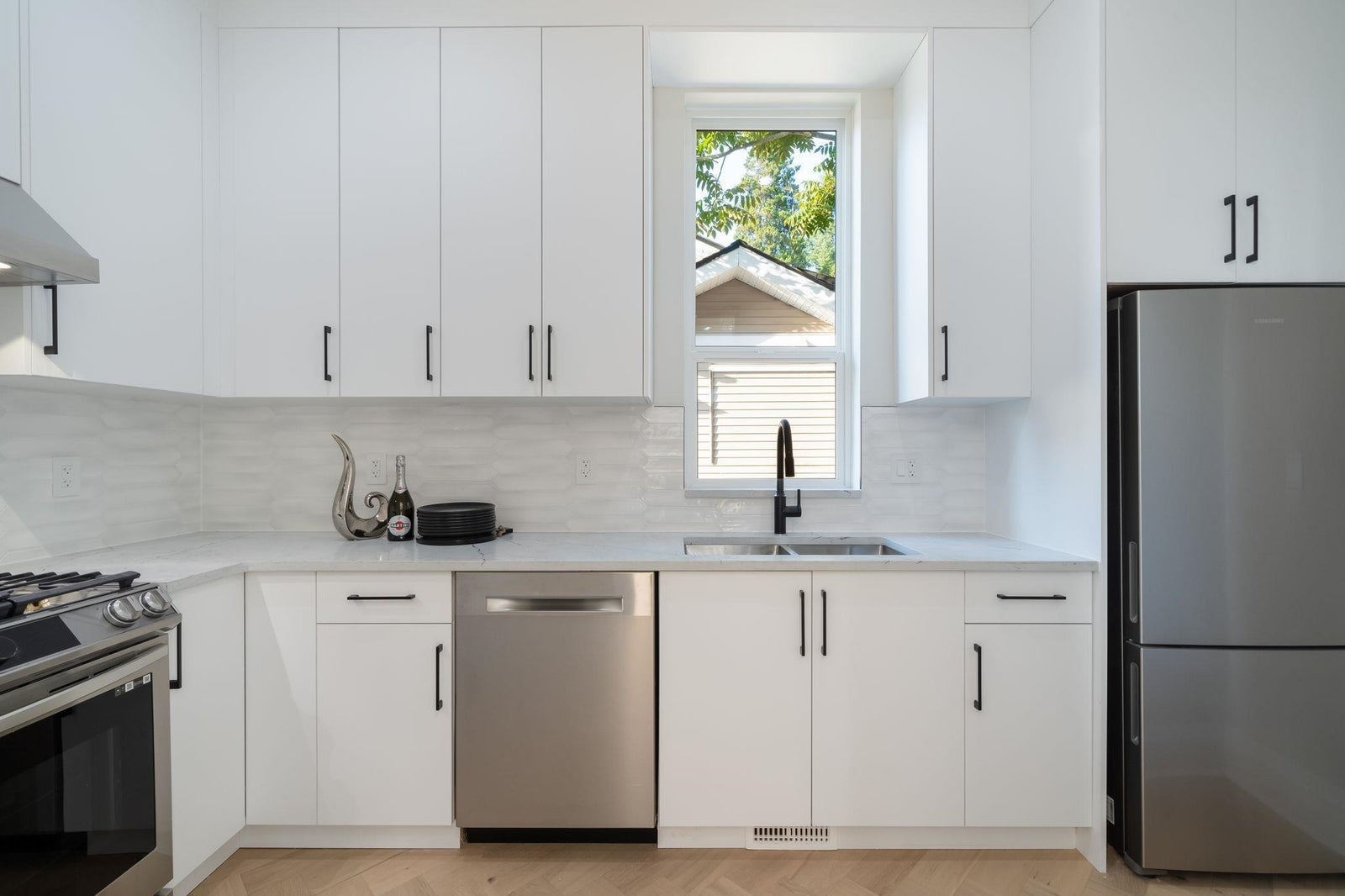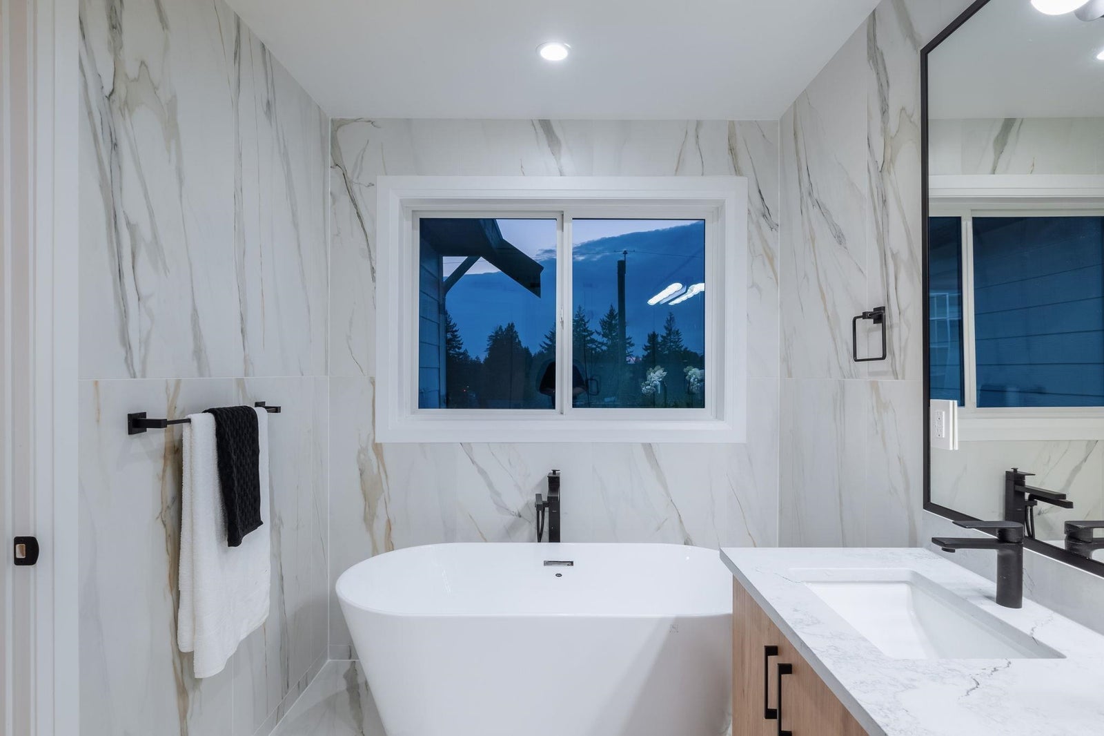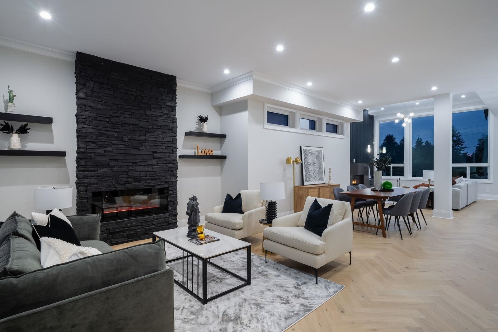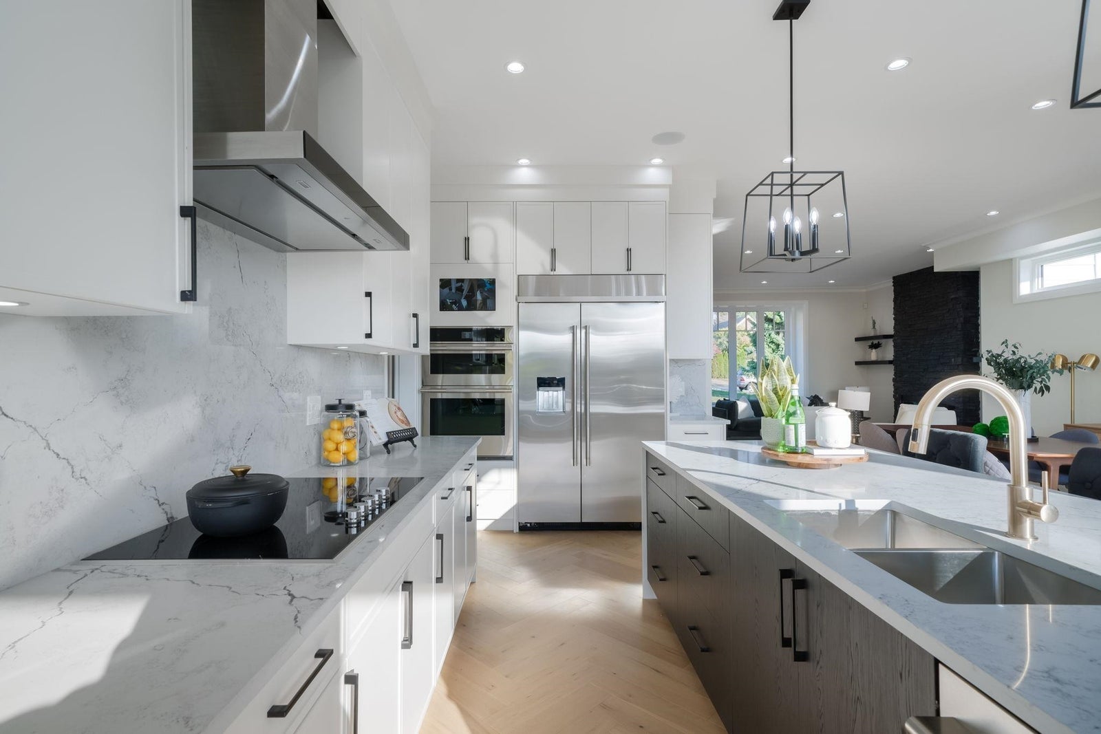 Discover modern luxury in this newly crafted home, nestled in a quiet, yet convenient Central Lonsdale neighbourhood. The main floor features over-height ceilings with expansive windows steaming in natural light while maintaining your privacy. Enjoy the design touches with its herringbone oak hardwood floors, millwork panelling details, wallpapered powder room, feature walls, & light fixtures. The chef's kitchen offers a deluxe fridge & freezer with a spice kitchen boasting a gas cooktop & additional fridge. Upstairs you'll find four bedrooms each with their own ensuite for ultimate convenience. The basement hosts a 2-bedroom LEGAL SUITE with its own entrance, media room, & wet bar for versatile entertaining. Completed with a 2 car garage & outdoor space. Take a look before it's gone!