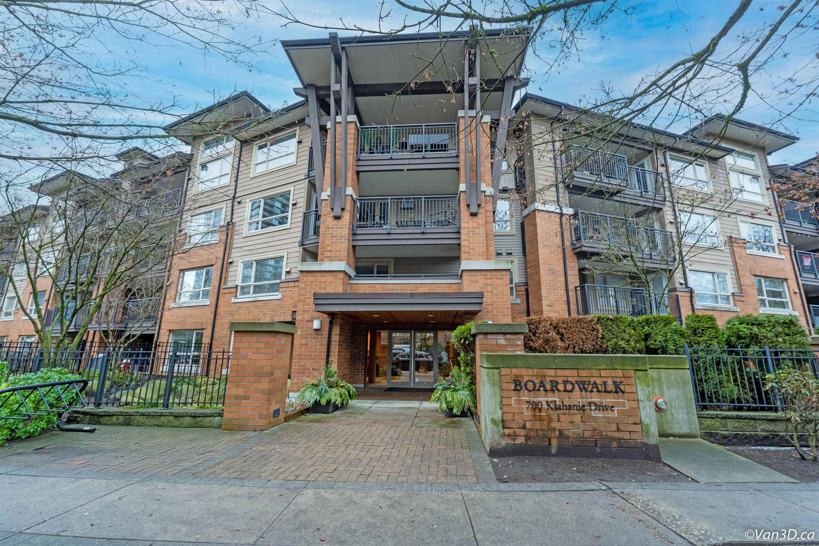 Welcome to Boardwalk at Klahanie, well maintained 2 bed & 2 bath home features a oversized 153 sqft covered Balcony/Deck spacious 880 sqft floor plan, kitchen with granite countertops and gas stove. Fireplace, large windows, Master bedroom with walk-in closet, and a good size 2nd bedroom. Outstanding amenities Canoe Club offers an outdoor pool, hot tub, daycare tennis courts, huge party room, gym, guest suites and more. Walking distance to Suter Brook & Newport Villages, West Coast Express, Skytrain. Rocky Point with Marina and Perfect for bike riding, running, & taking pets for walks. Popular Brewers Row. 2 PARKING, 1 STORAGE. Move-in ready. Easy to show