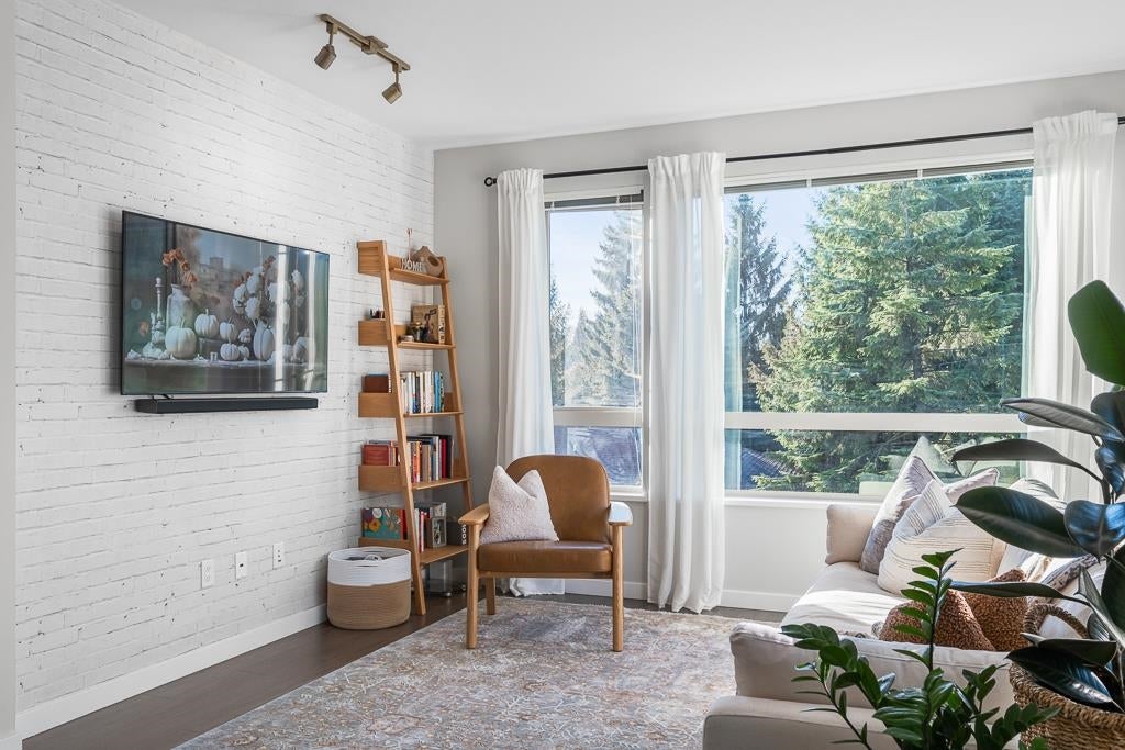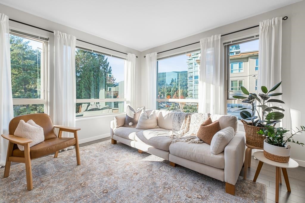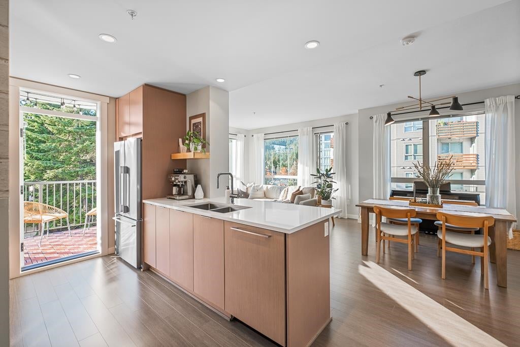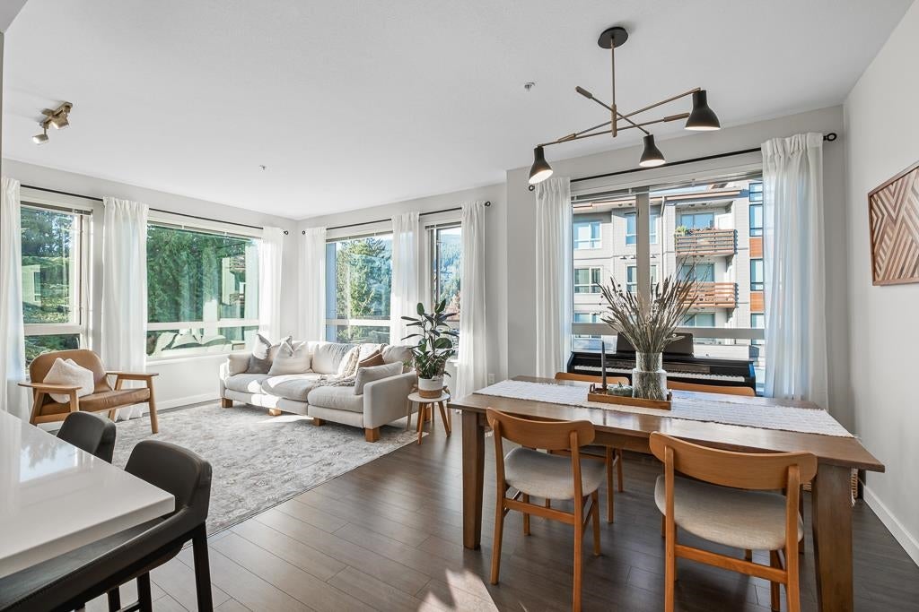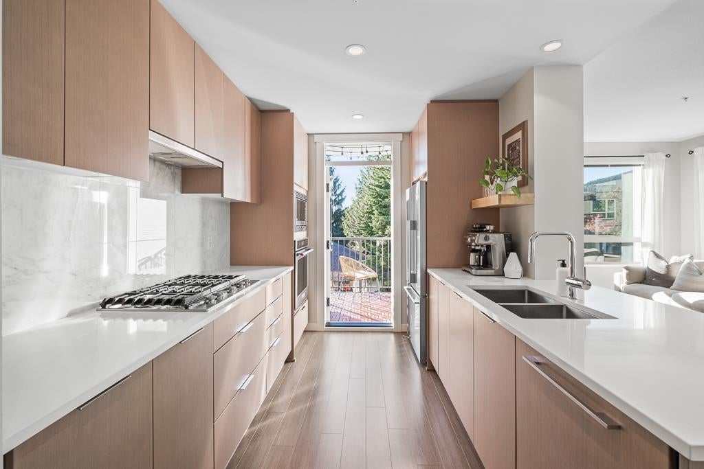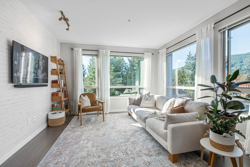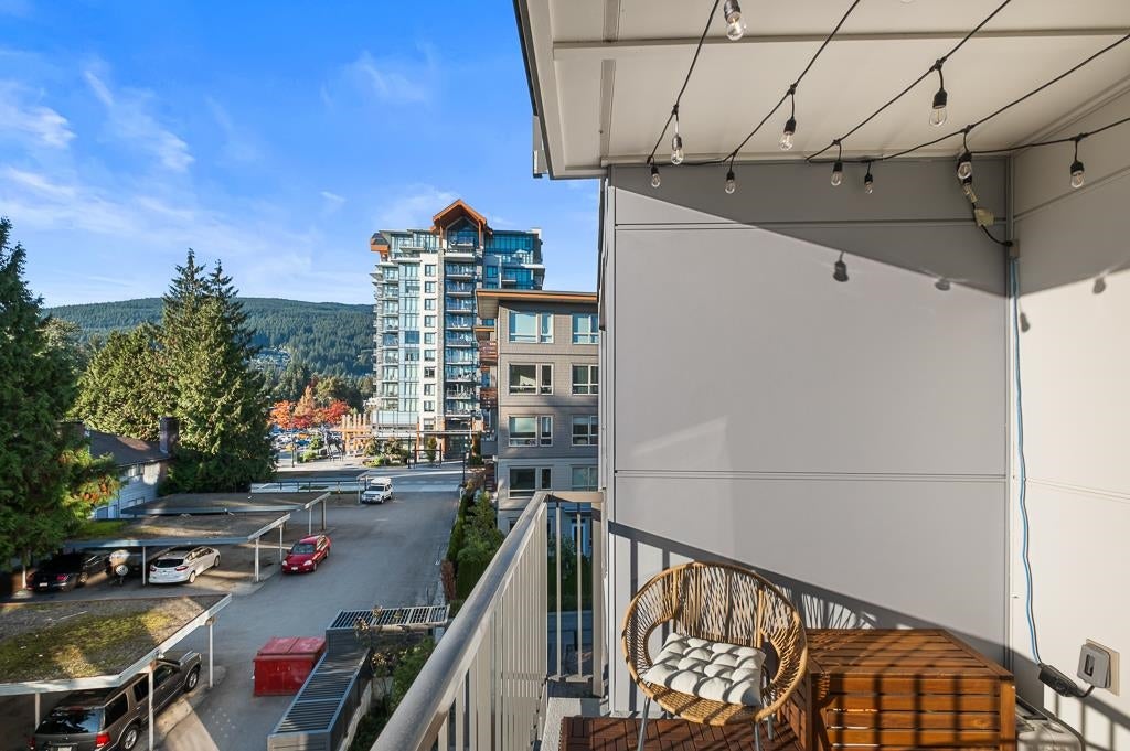 A SPECTACULAR PRIVATE 2 BED + 2 BATH in popular Taluswood, built by Polygon. Take in the beautiful mountain views with loads of natural light, a west facing outdoor covered balcony, all overlooking the courtyard area. This unit boasts many upgrades with lighting, built in storage, & 2 oversized side by side EV parking stalls located beside the elevator. The main living area is great for entertaining with a functional open concept kitchen + dining + living area. The primary bedroom features a fantastic walk-in-closet with upgrades & a spa-like bathroom. The 2nd bed is on the opposite corner which is great for privacy. Enjoy the convenience of a gym, party room, storage locker, pet & car washing station (pets allowed). Located in an amazing central hub of Lynn Valley Center. OPEN BY APPT.
