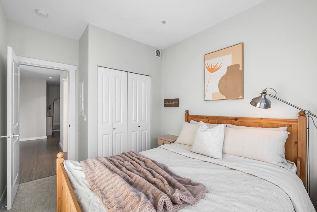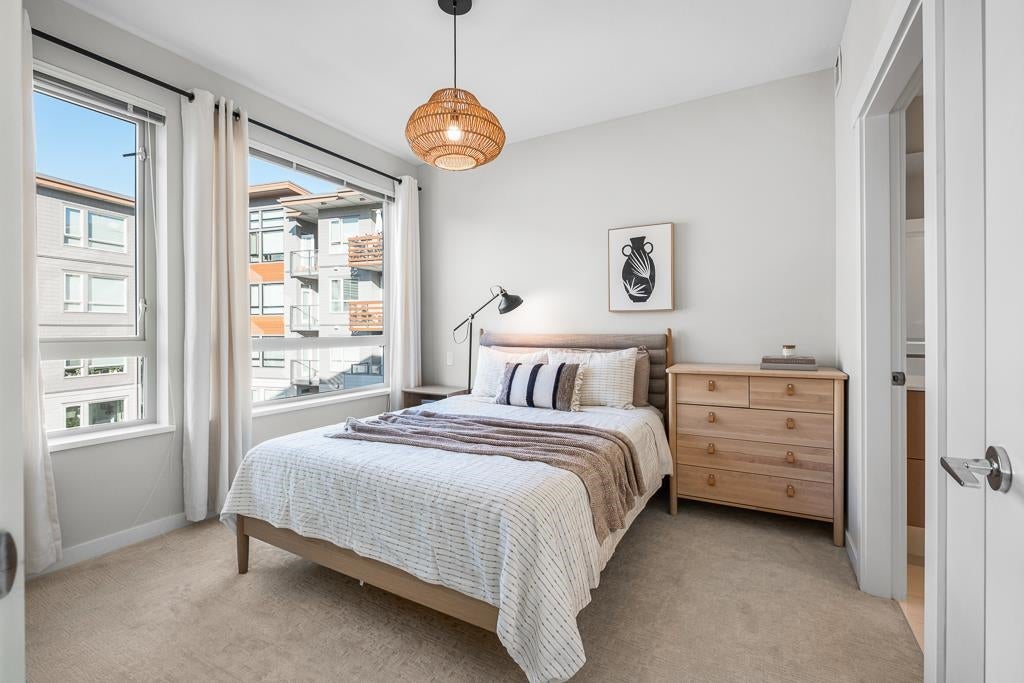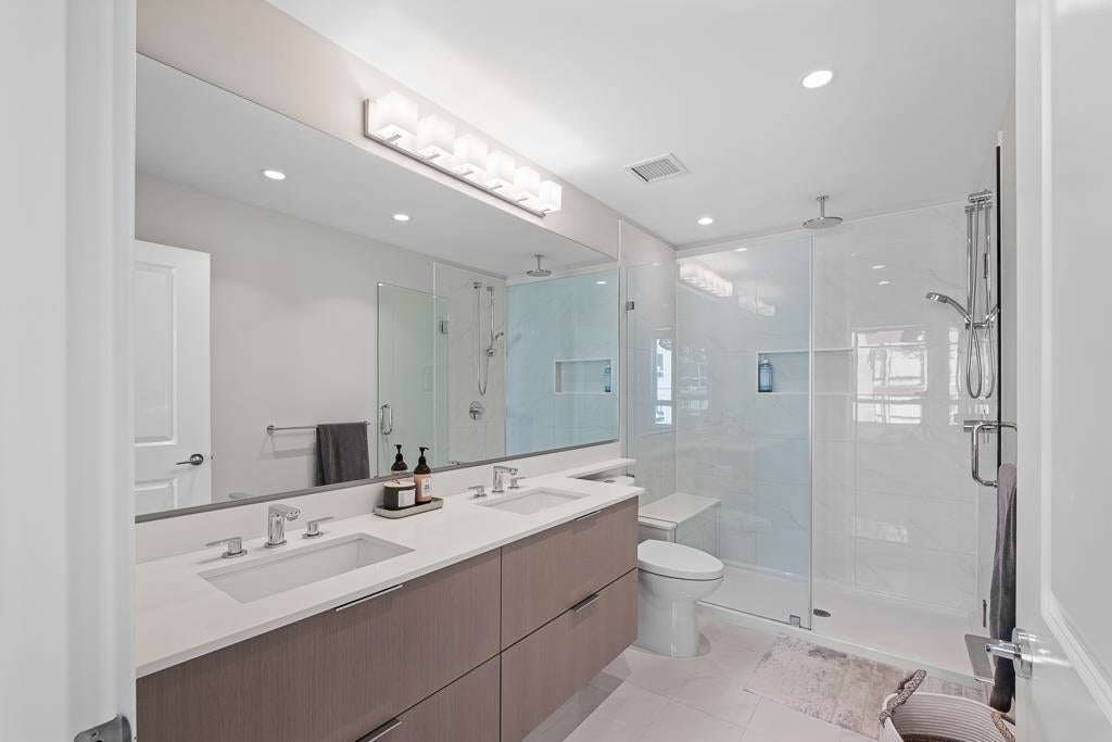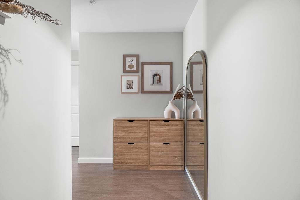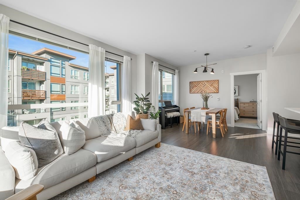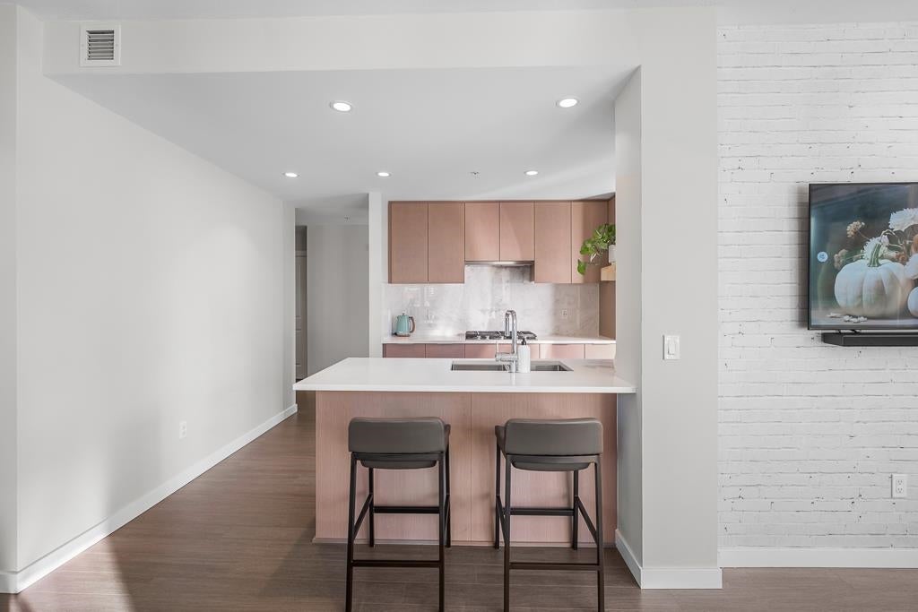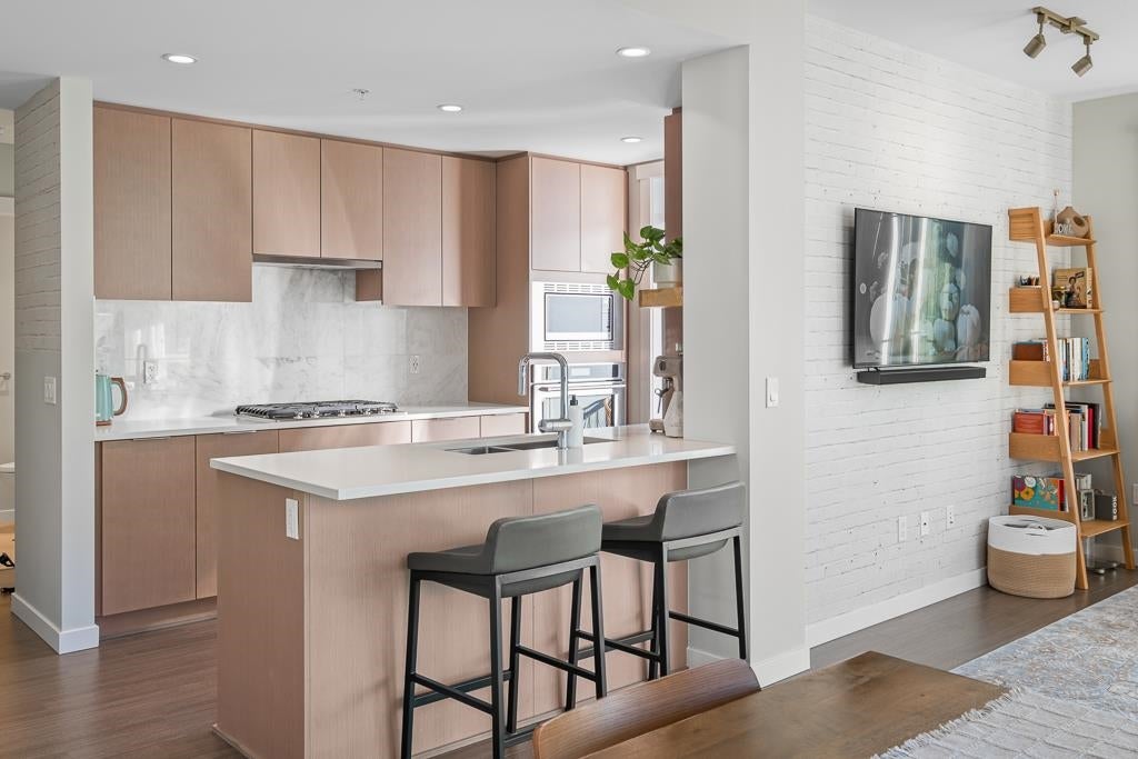 A SPECTACULAR PRIVATE 2 BED + 2 BATH in popular Taluswood, built by Polygon. Take in the beautiful mountain views with loads of natural light, a west facing outdoor covered balcony, all overlooking the courtyard area. This unit boasts many upgrades with lighting, built in storage, & 2 oversized side by side EV parking stalls located beside the elevator. The main living area is great for entertaining with a functional open concept kitchen + dining + living area. The primary bedroom features a fantastic walk-in-closet with upgrades & a spa-like bathroom. The 2nd bed is on the opposite corner which is great for privacy. Enjoy the convenience of a gym, party room, storage locker, pet & car washing station (pets allowed). Located in an amazing central hub of Lynn Valley Center. OPEN BY APPT.
