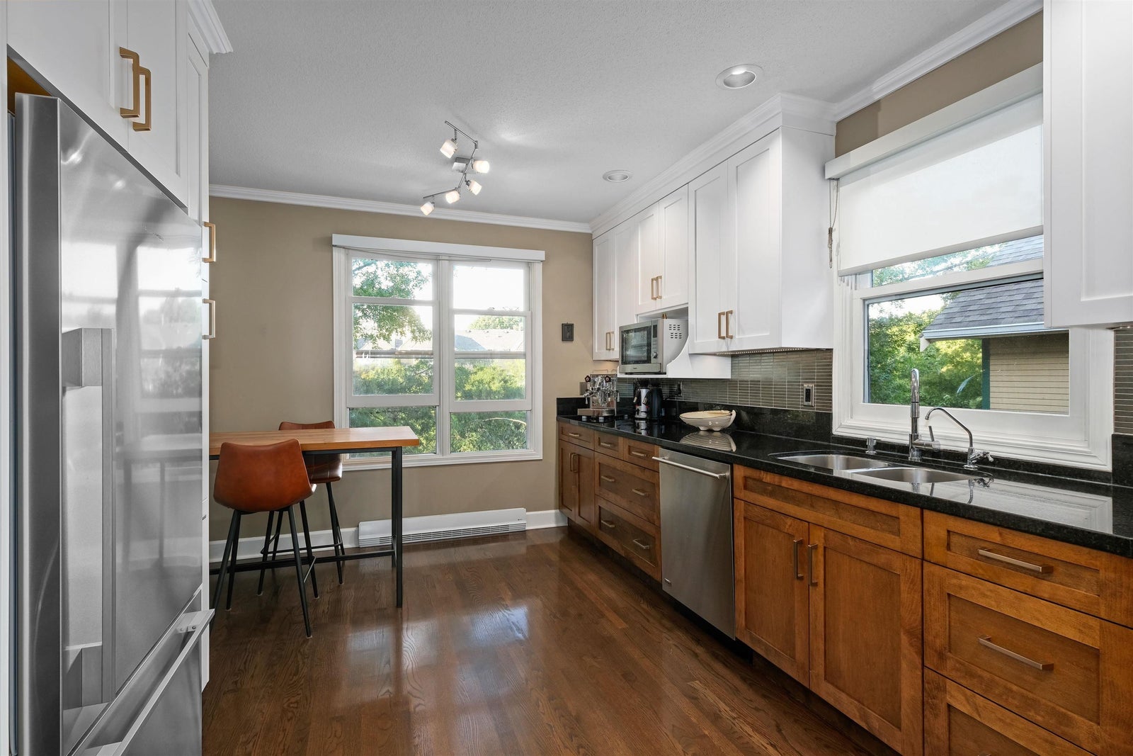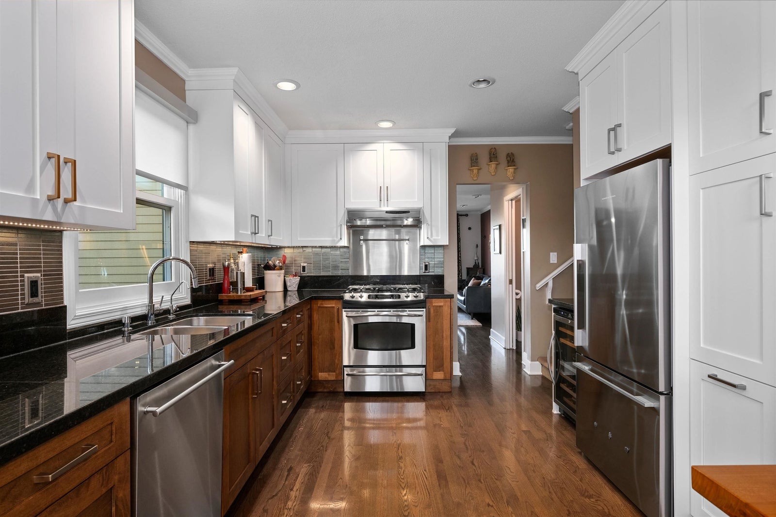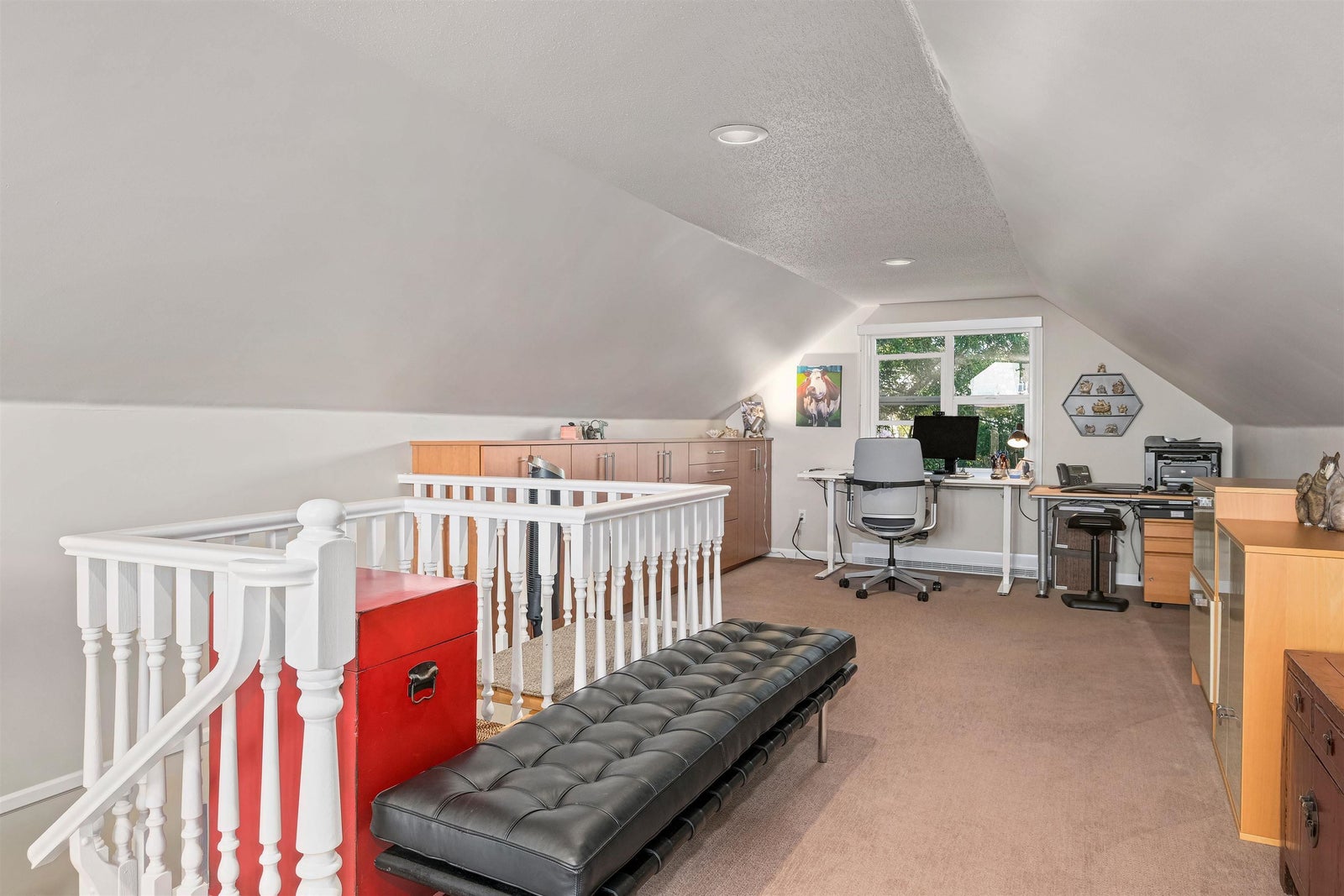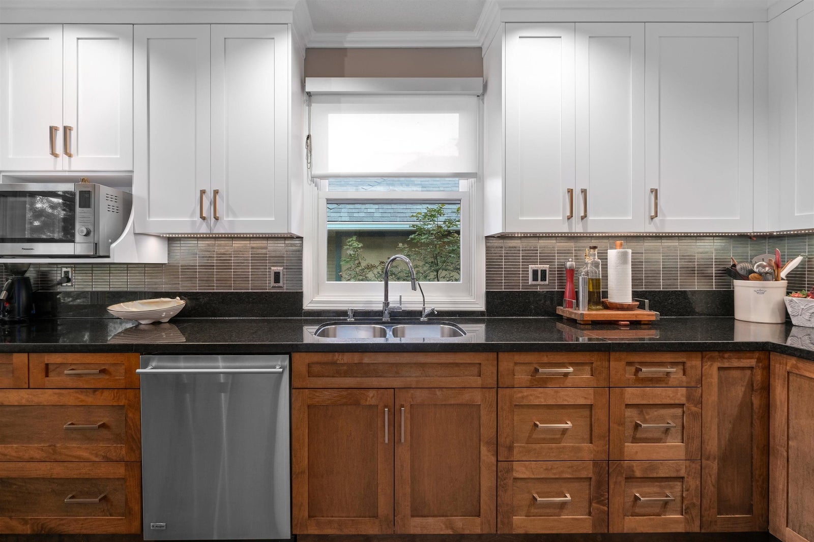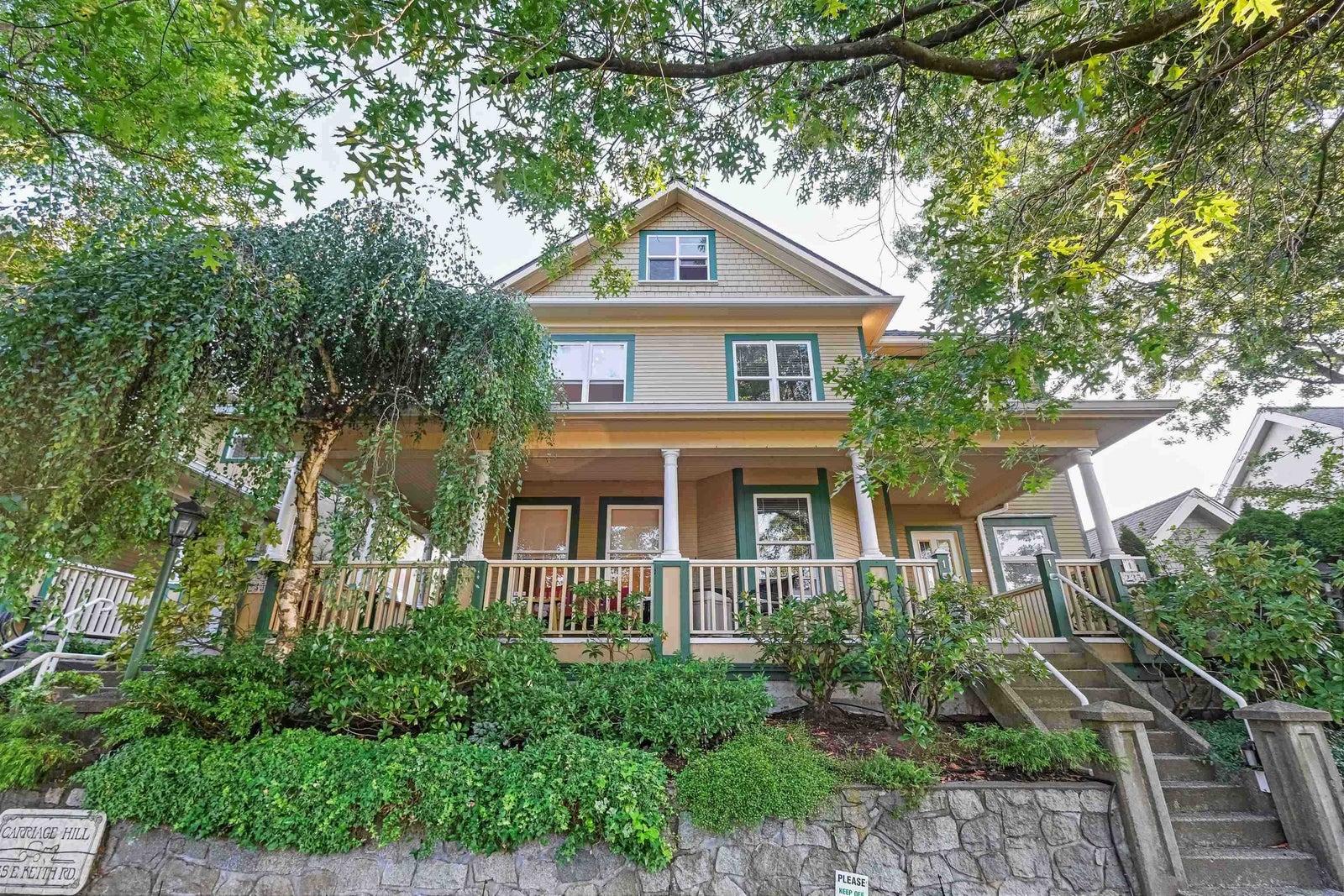 GORGEOUS CHARACTER TOWNHOUSE with 2,000 SF of living with spectacular views. Boasting 2 bedrooms on the main, 500 SF loft space (3rd BED potential), with a flex 215 SF of storage space in the basement area leading out to the underground garage (2 parking). Walking up the stairs you will love the beautifully appointed living area, dining & stunning kitchen with many upgrades, creating an ideal space for indoor/outdoor entertaining with VIEWS. Built in 1991, this townhouse was built with quality and charm! A boutique 9 unit complex situated in a highly desirable location. The front veranda is perfect for reading, overlooking the park like setting. Enjoy the lifestyle & convenience, steps away from LOLO + Victoria Park. A unique offering, very quiet and private.