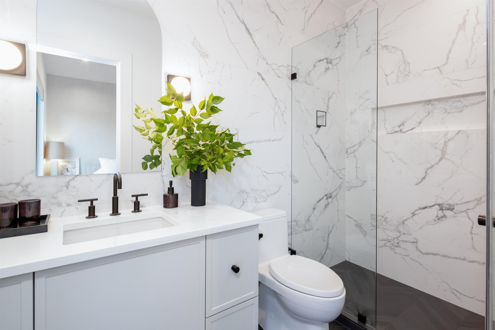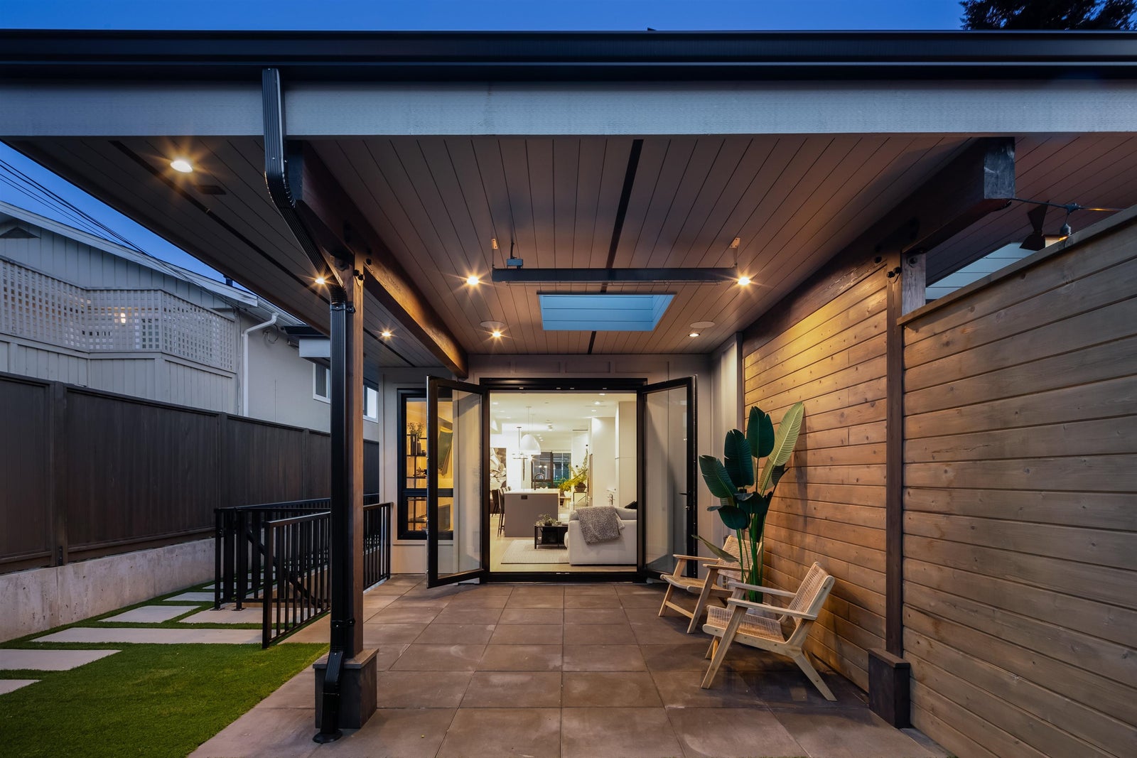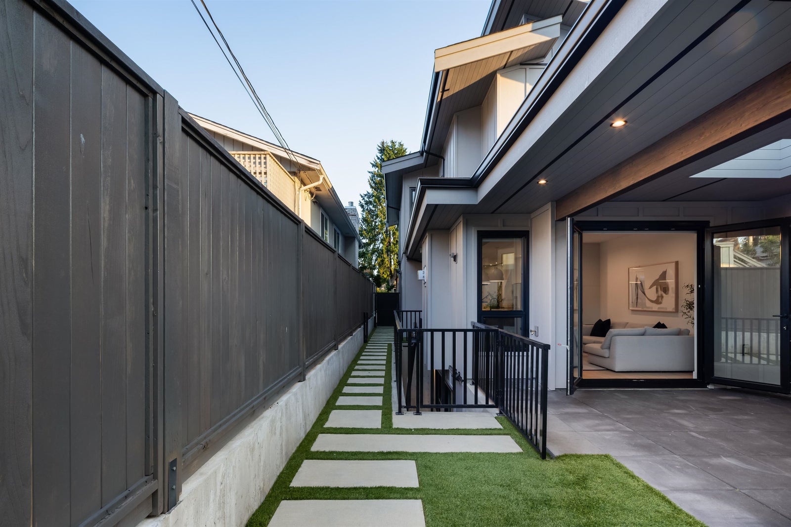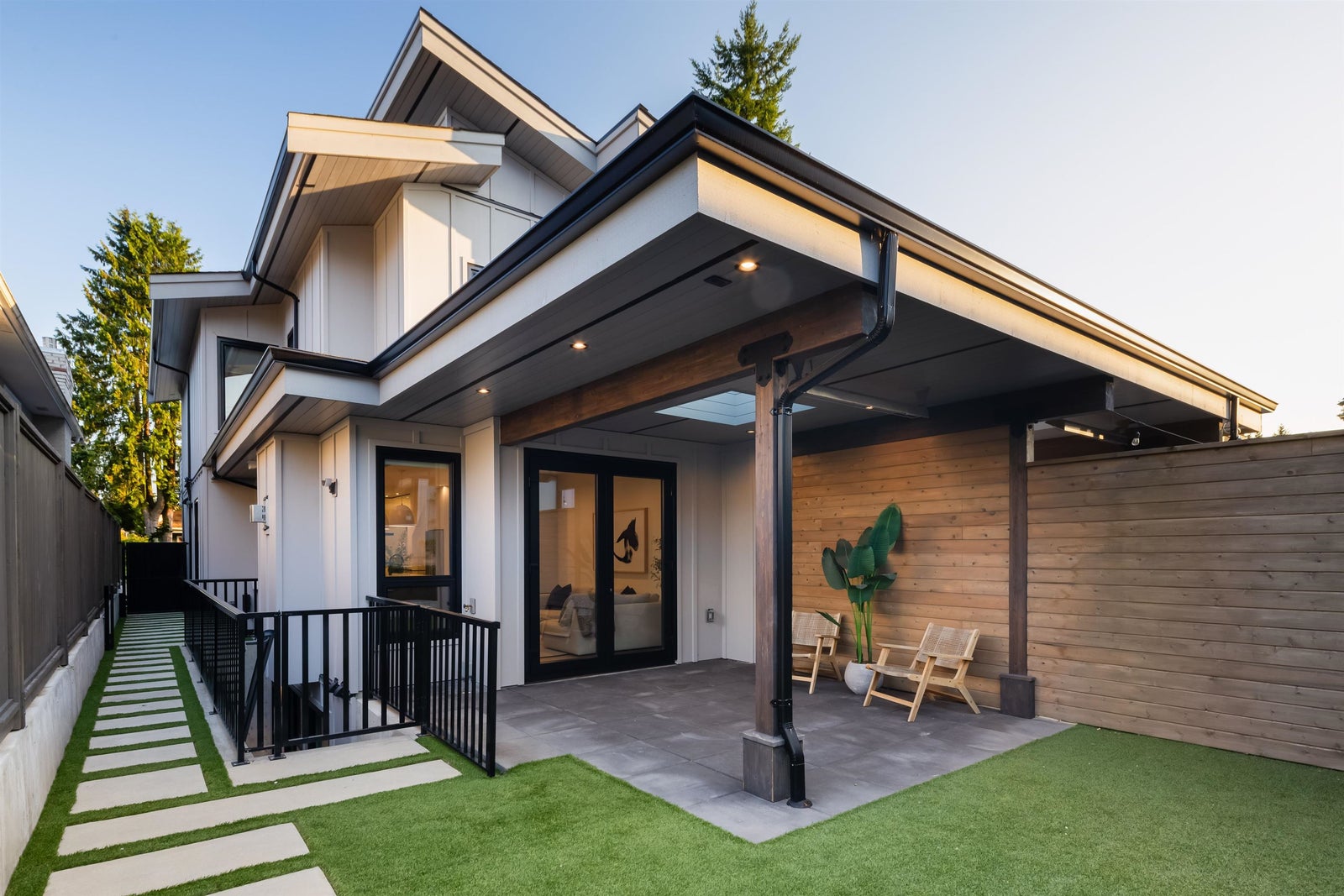 A STRIKING 1/2 DUPLEX IN THE heart of Central Lonsdale. Beautifully designed 2500 SF of living with superior craftsmanship creating a warm modern home, perfect for the North Shore enthusiast. This open concept 3 level layout is built with functionality, a 1 bedroom legal self contained suite down (mortgage helper), a beautiful open concept main living area with private indoor and outdoor living, a flex entertainment area below and a 1 car garage + parking pad. This home is truly custom, built by an award winning developer, with an emphasis on quality, with extra insulation, durable exterior finishes, air conditioning, artificial turf, and a back up generator system. OPEN BY APPOINTMENT ONLY.