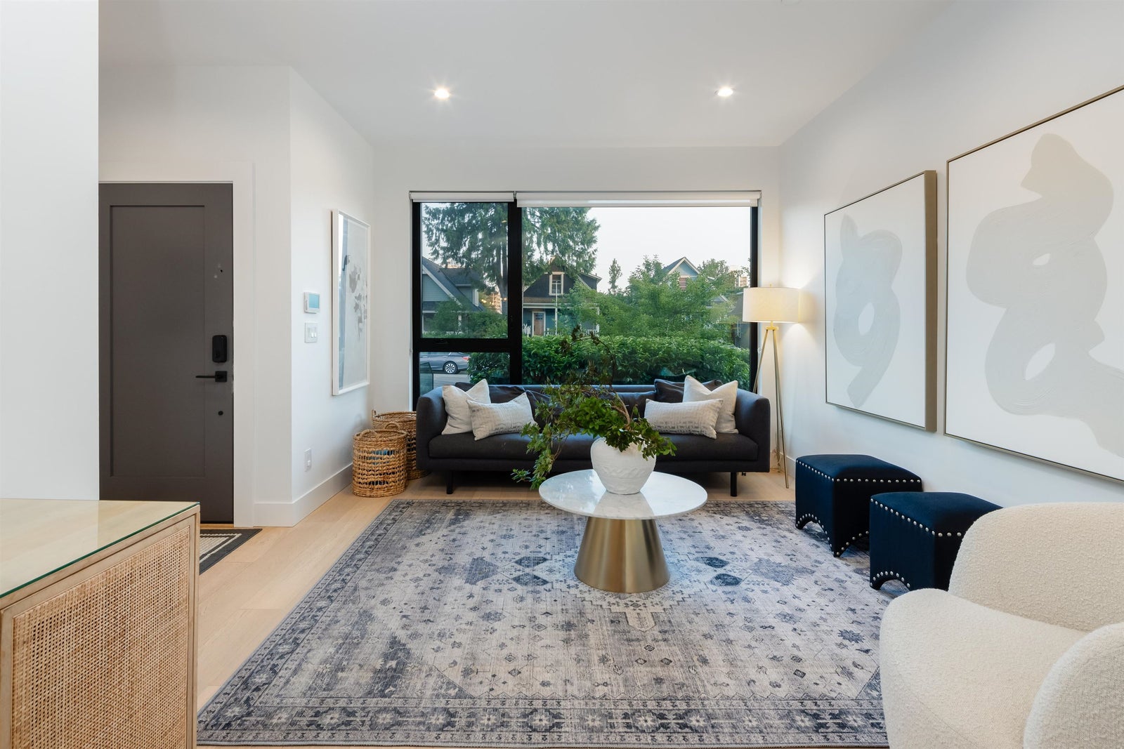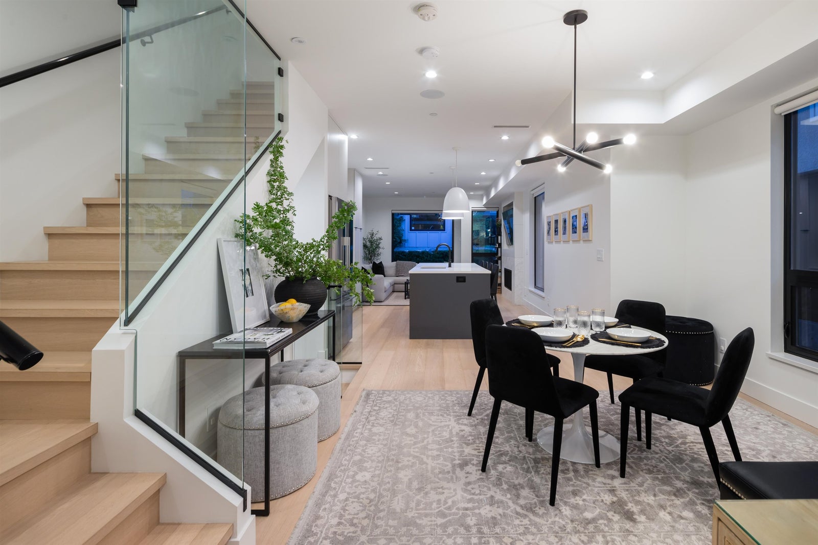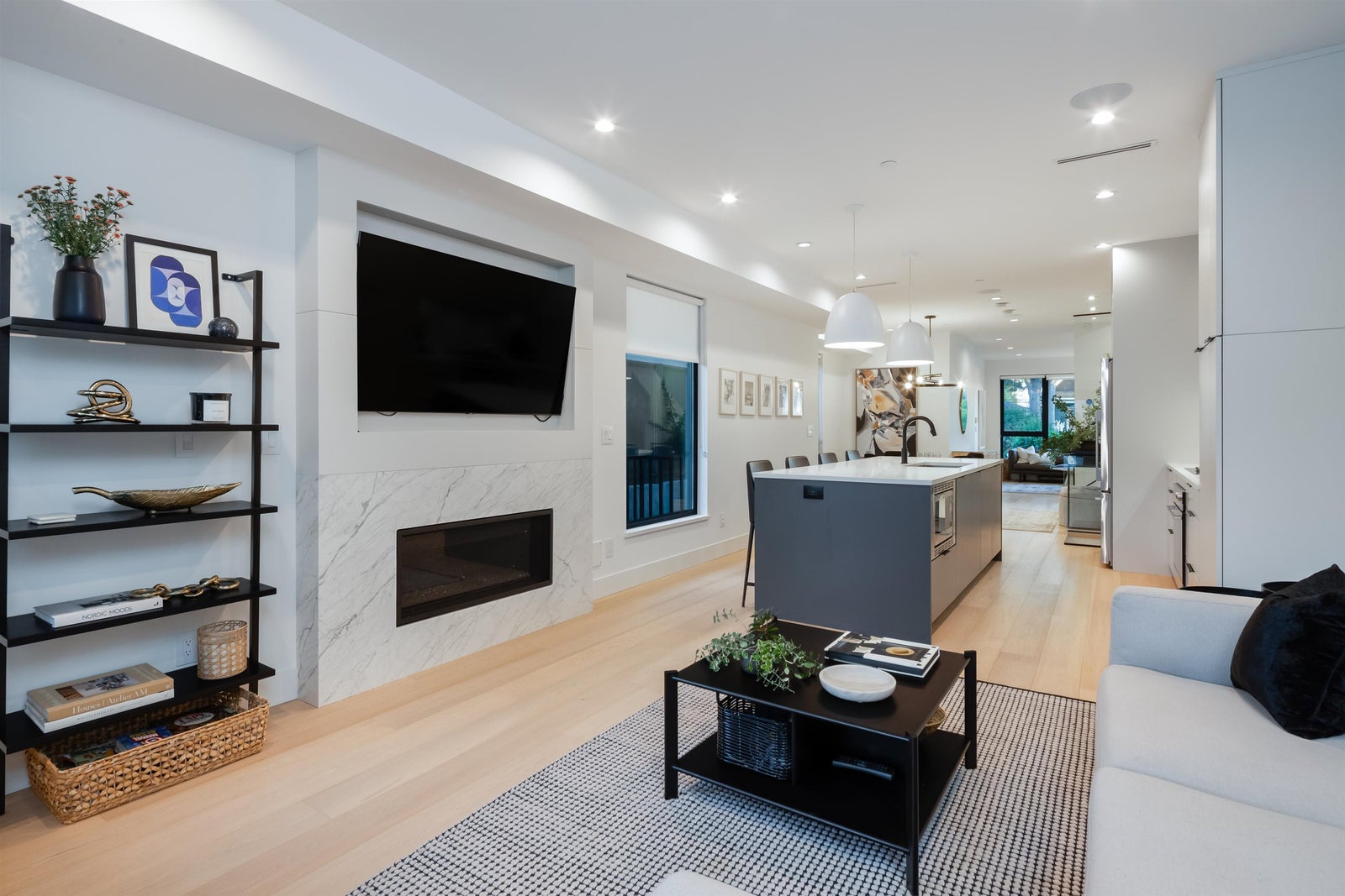 A STRIKING 1/2 DUPLEX IN THE heart of Central Lonsdale. Beautifully designed 2500 SF of living with superior craftsmanship creating a warm modern home, perfect for the North Shore enthusiast. This open concept 3 level layout is built with functionality, a 1 bedroom legal self contained suite down (mortgage helper), a beautiful open concept main living area with private indoor and outdoor living, a flex entertainment area below and a 1 car garage + parking pad. This home is truly custom, built by an award winning developer, with an emphasis on quality, with extra insulation, durable exterior finishes, air conditioning, artificial turf, and a back up generator system. OPEN BY APPOINTMENT ONLY.