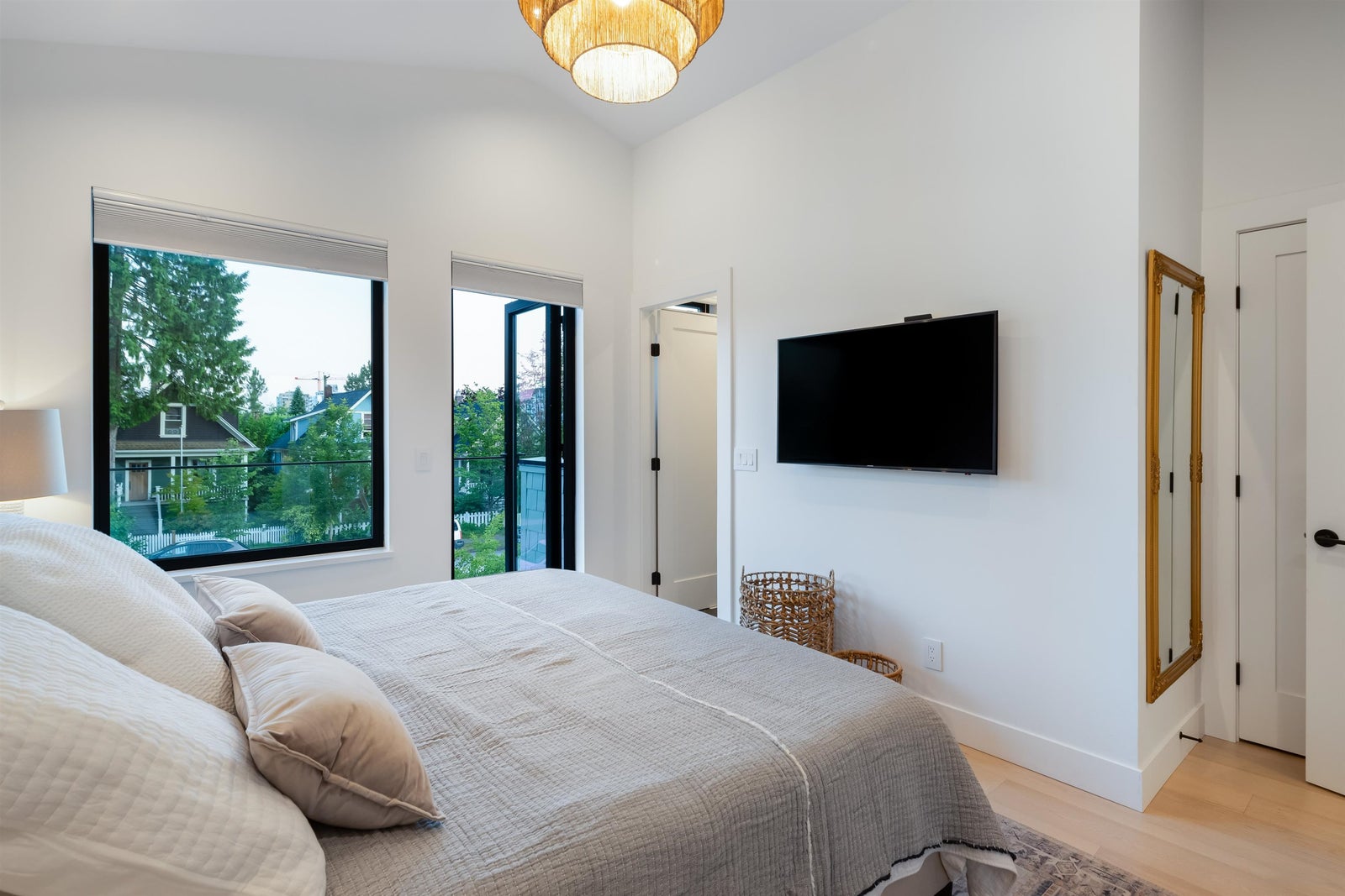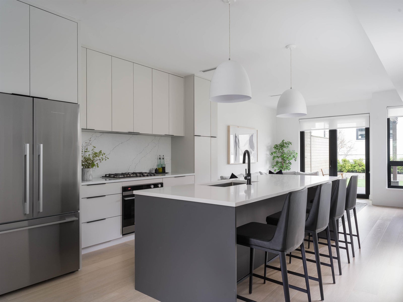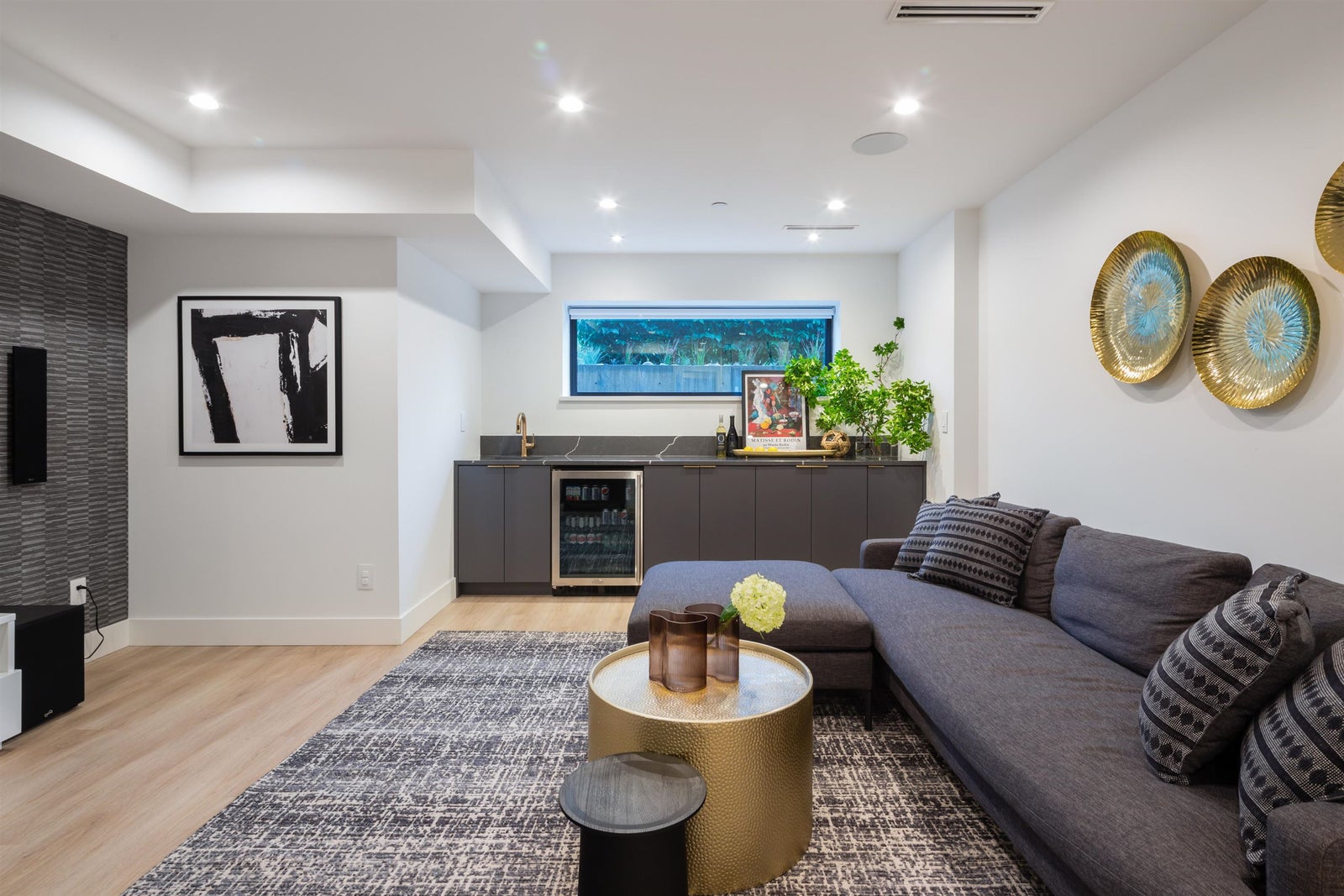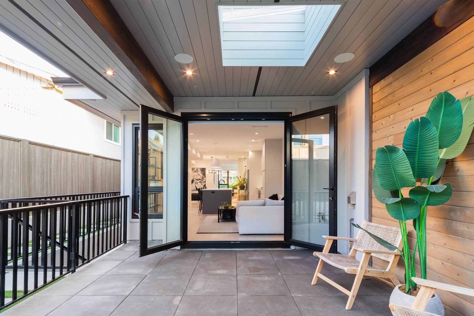 A STRIKING 1/2 DUPLEX IN THE heart of Central Lonsdale. Beautifully designed 2500 SF of living with superior craftsmanship creating a warm modern home, perfect for the North Shore enthusiast. This open concept 3 level layout is built with functionality, a 1 bedroom legal self contained suite down (mortgage helper), a beautiful open concept main living area with private indoor and outdoor living, a flex entertainment area below and a 1 car garage + parking pad. This home is truly custom, built by an award winning developer, with an emphasis on quality, with extra insulation, durable exterior finishes, air conditioning, artificial turf, and a back up generator system. OPEN BY APPOINTMENT ONLY.