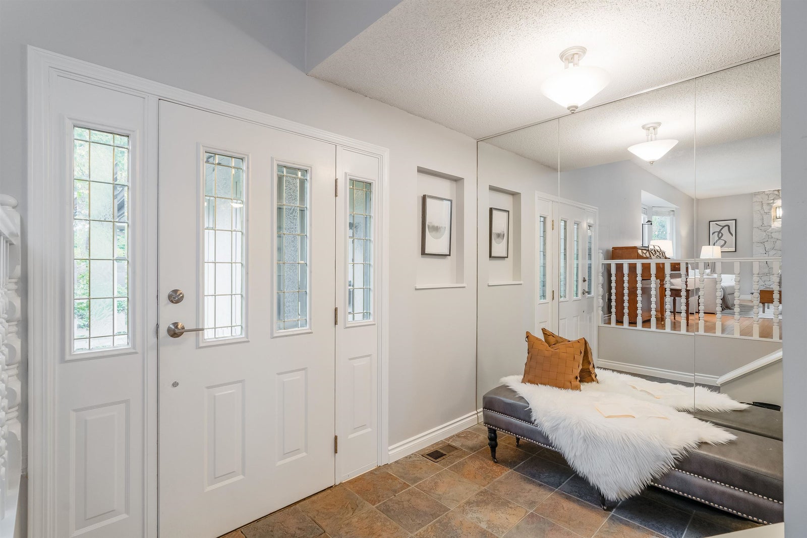 A PERFECT FAMILY HOME, located on a quiet cul-de-sac in Upper Lonsdale's coveted Princess Park with an amazing south facing yard surrounded by beautiful forest surroundings. Featuring 3 bedrooms & 2 baths up, expansive family, dining & office area, 3 fireplaces, hardwood flooring, all on 2 levels of living with an attached 480 SF garage. Sitting on a 7,920 SF lot, enjoy the calmness of the location, the nature surrounding it & the amazing private back yard with turf, perfect for kids, entertaining & enjoying the sunshine in the summer months! Downstairs has a huge crawlspace storage area & a full height self contained nanny living area, that can be accessed from the separate entrance. This quiet, family-oriented street is close to highly ranked North Vancouver schools & hiking trails.