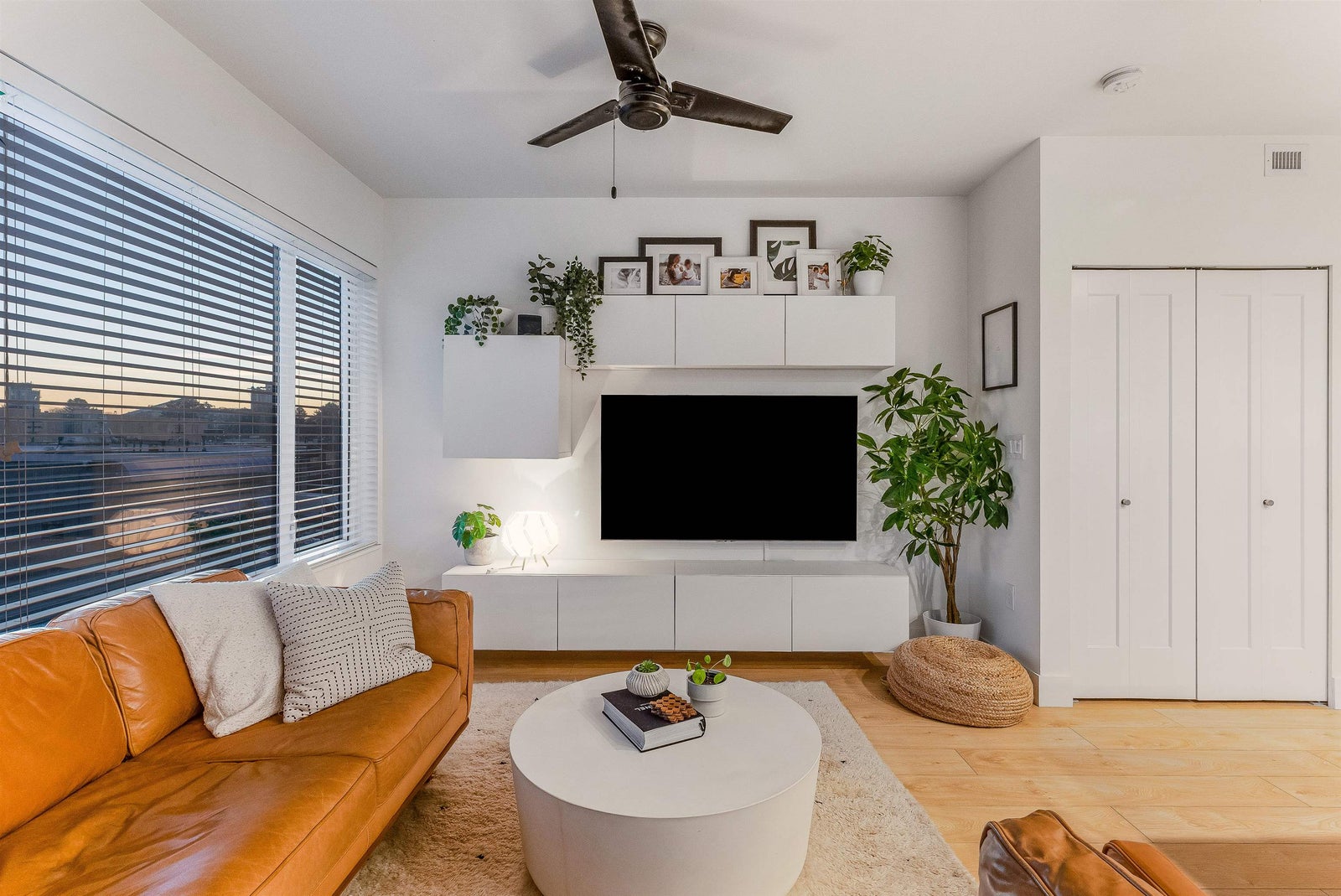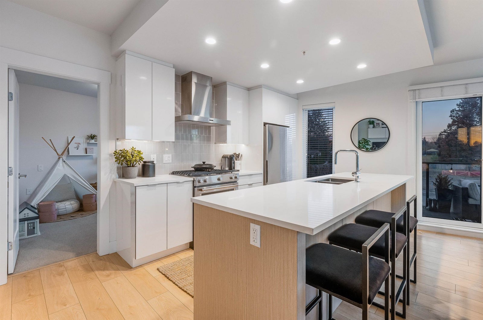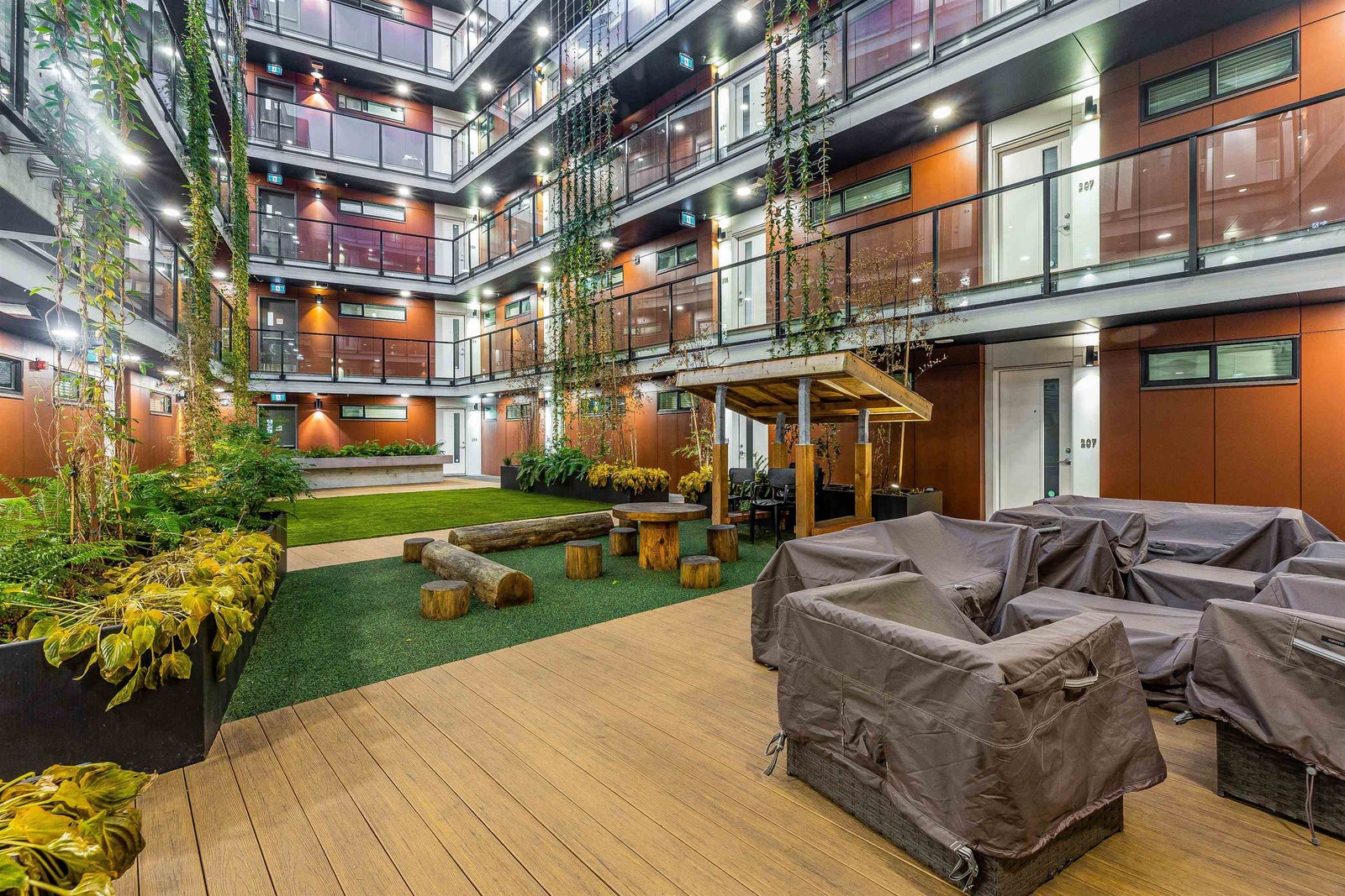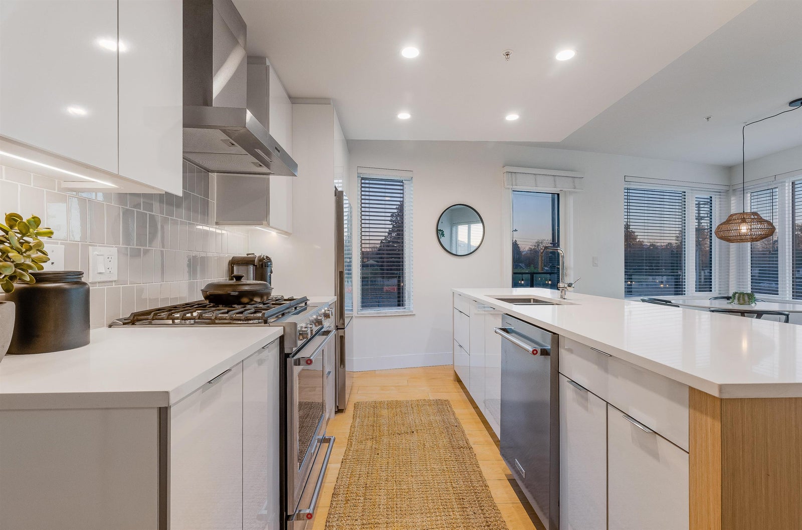 A SPECTACULAR SE 2 Bed + 2 Bath + Den CORNER UNIT AT BROOKLYNN. Immaculately kept; this incredibly spacious 1,040 SF home boasts a brand new feel with warranty included, radiant in floor heating, home office or den & open concept living with oversized windows for natural light! The floorplan is masterly laid out, with an extra large kitchen, built in pantry & entertainment sized island. The covered patio is ideal for BBQ's + entertaining. This is a unique offering as BrookLynn's 1,500SF open-air courtyard is a great casual community space with striking design by Francl Architecture. Situated in the heart of the emerging Lynn Creek Town Centre with a newly remodelled Park, river trails, breweries, cafe's & many more 27,000 SF amenities coming soon. 1 EV ready parking & storage.