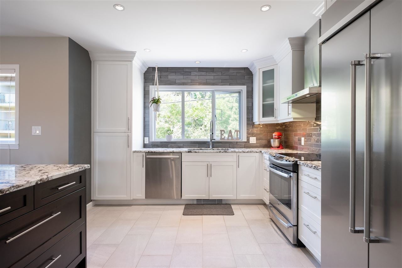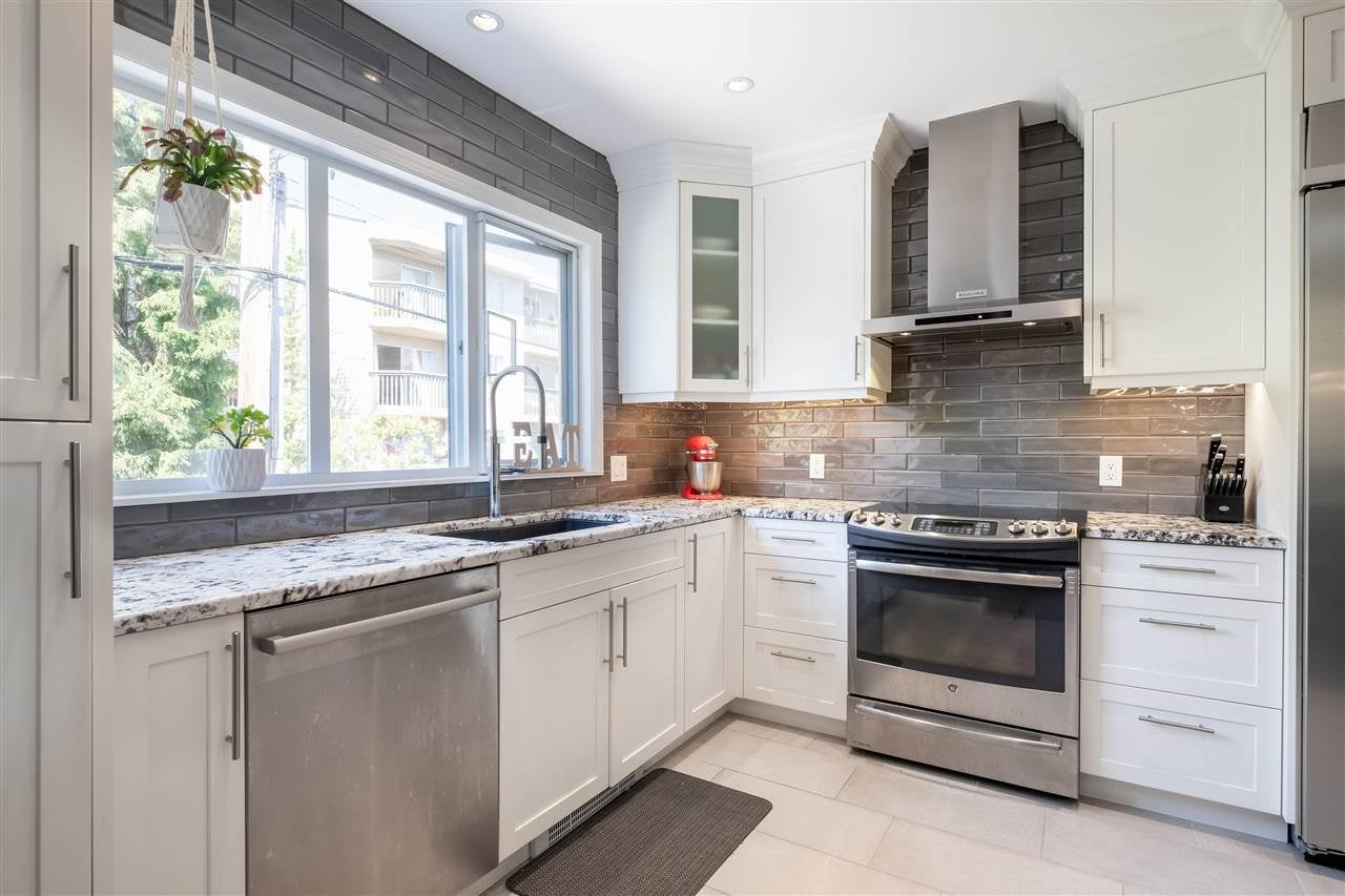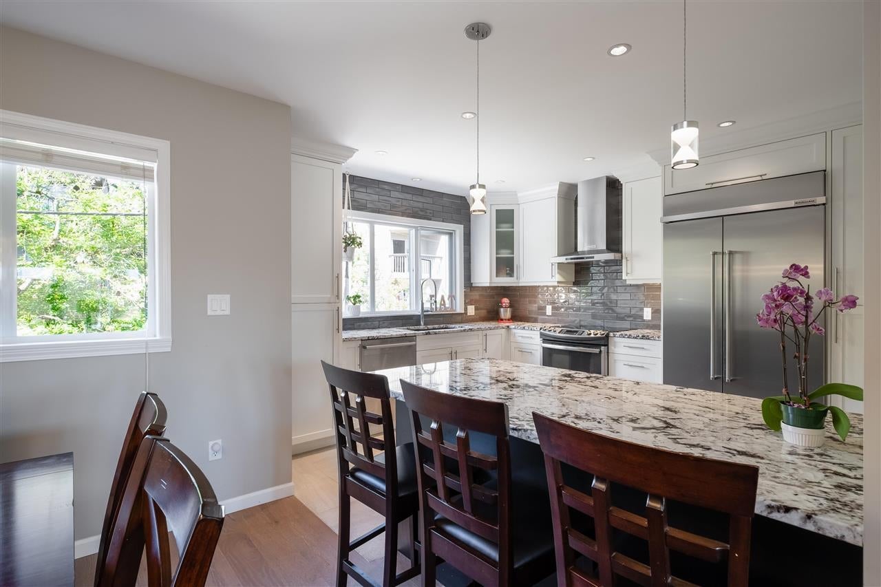 A SPECTACULAR TOWNHOUSE in the heart of Central Lonsdale. Fully renovated, 1500 SF + 300 SF of storage, all in a boutique 14 unit Easthill complex that has beautiful lush gardens, fully gated with pride of ownership throughout. Featuring 2 bedroom + den + rec room with expansive room sizes & multiple outdoor deck areas for the summer! The main floor has a ton of natural light, white oak hardwood, open concept living & dining with a beautiful kitchen with quartz counters. Both bedrooms are a great size on the second level, with both having updated ensuites. Down offers an amazing rec room (3rd bedroom potential) with LOADS of storage. Direct access to 1 private parking stall-Tesla EV hook up. Located on one of the best blocks of Central Lonsdale. No dogs allowed, except indoor cats.