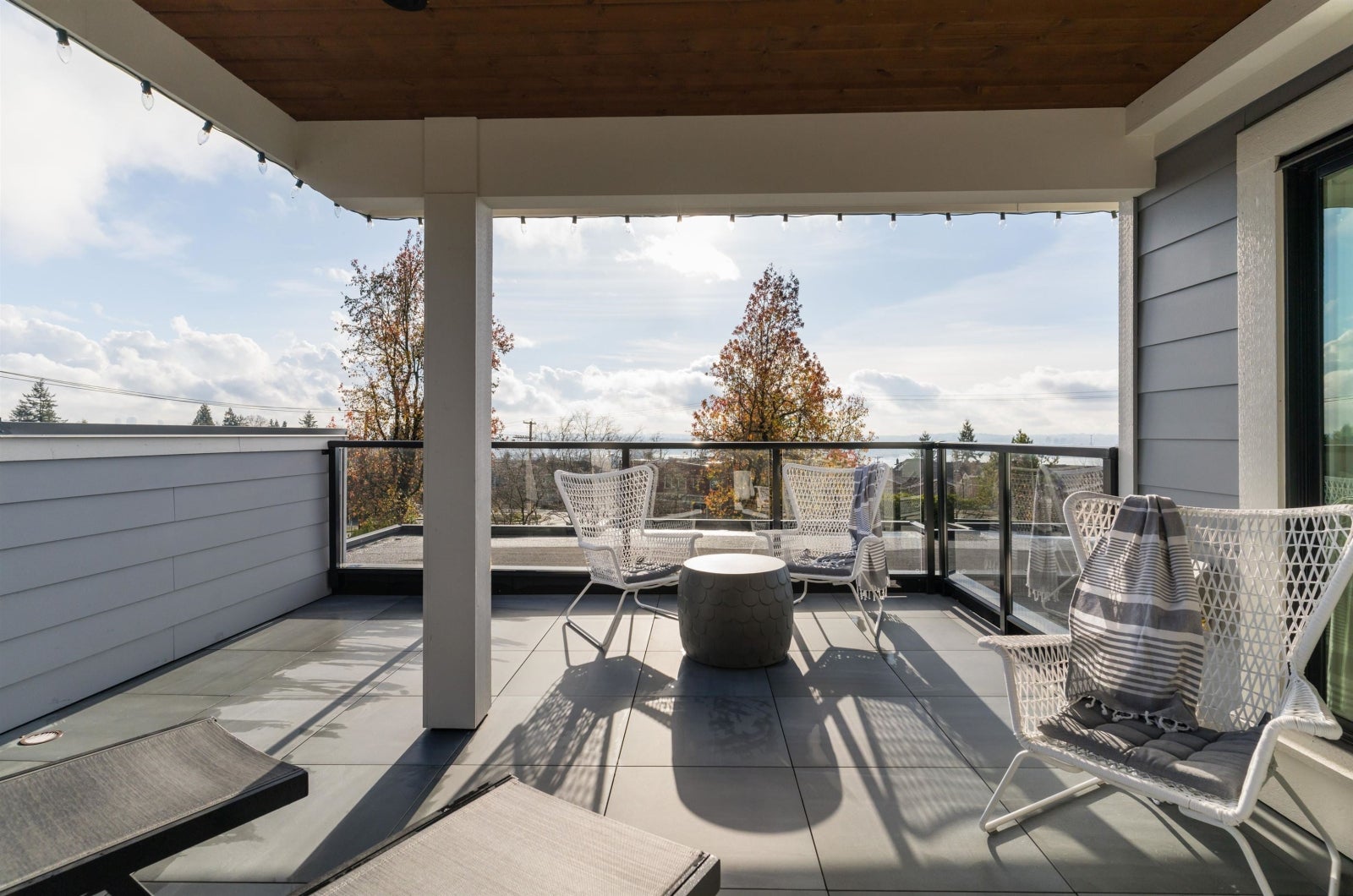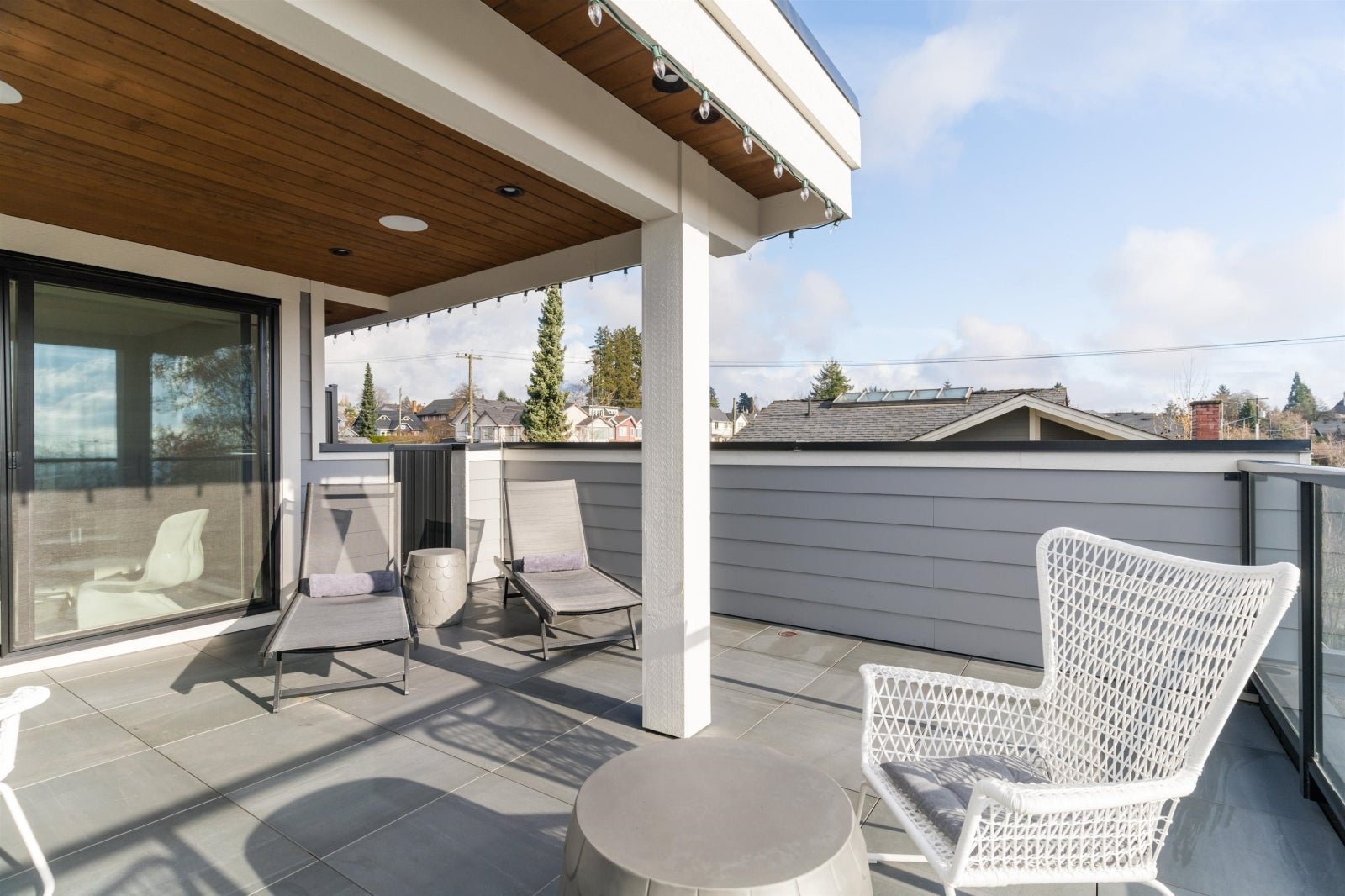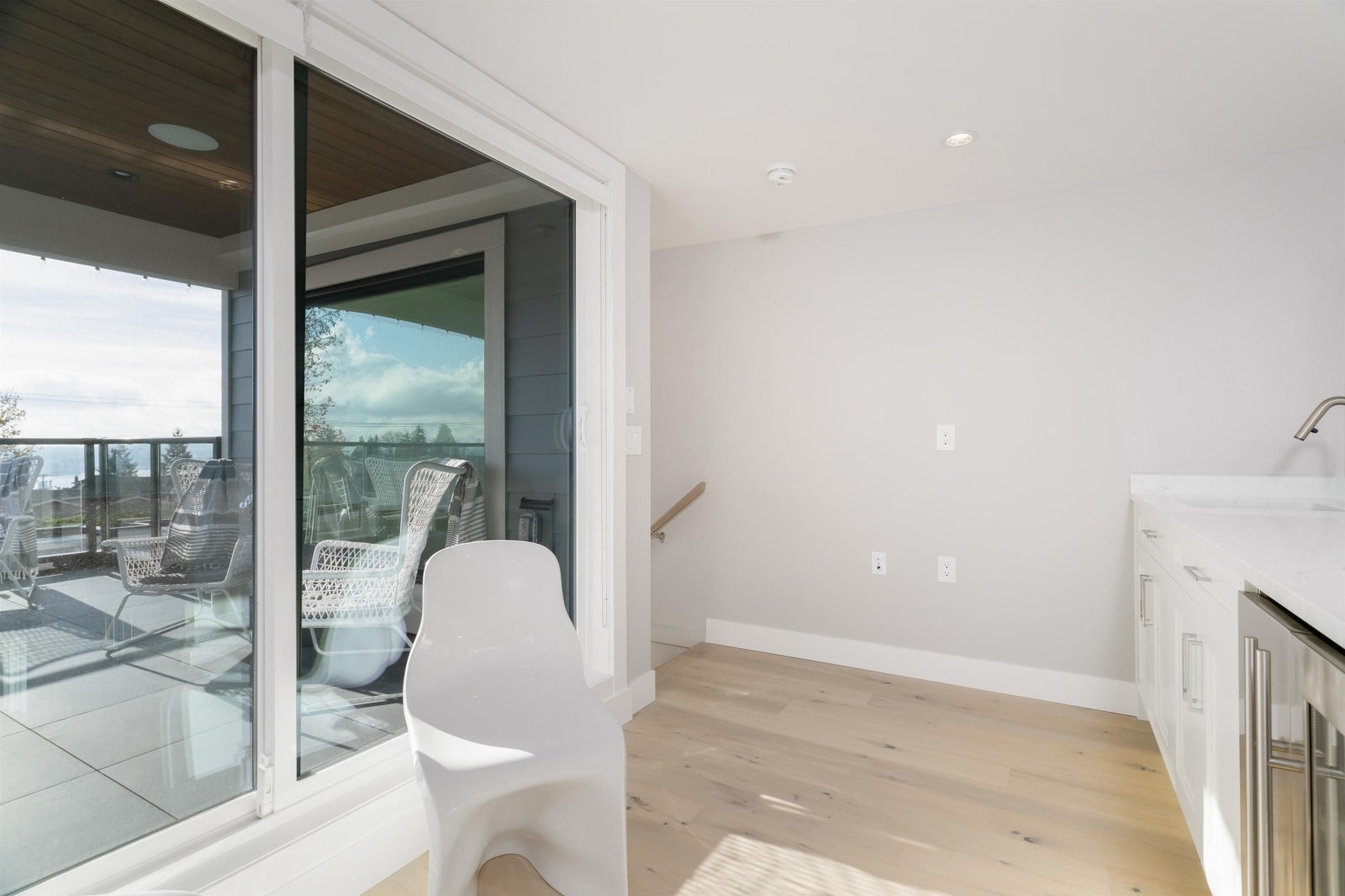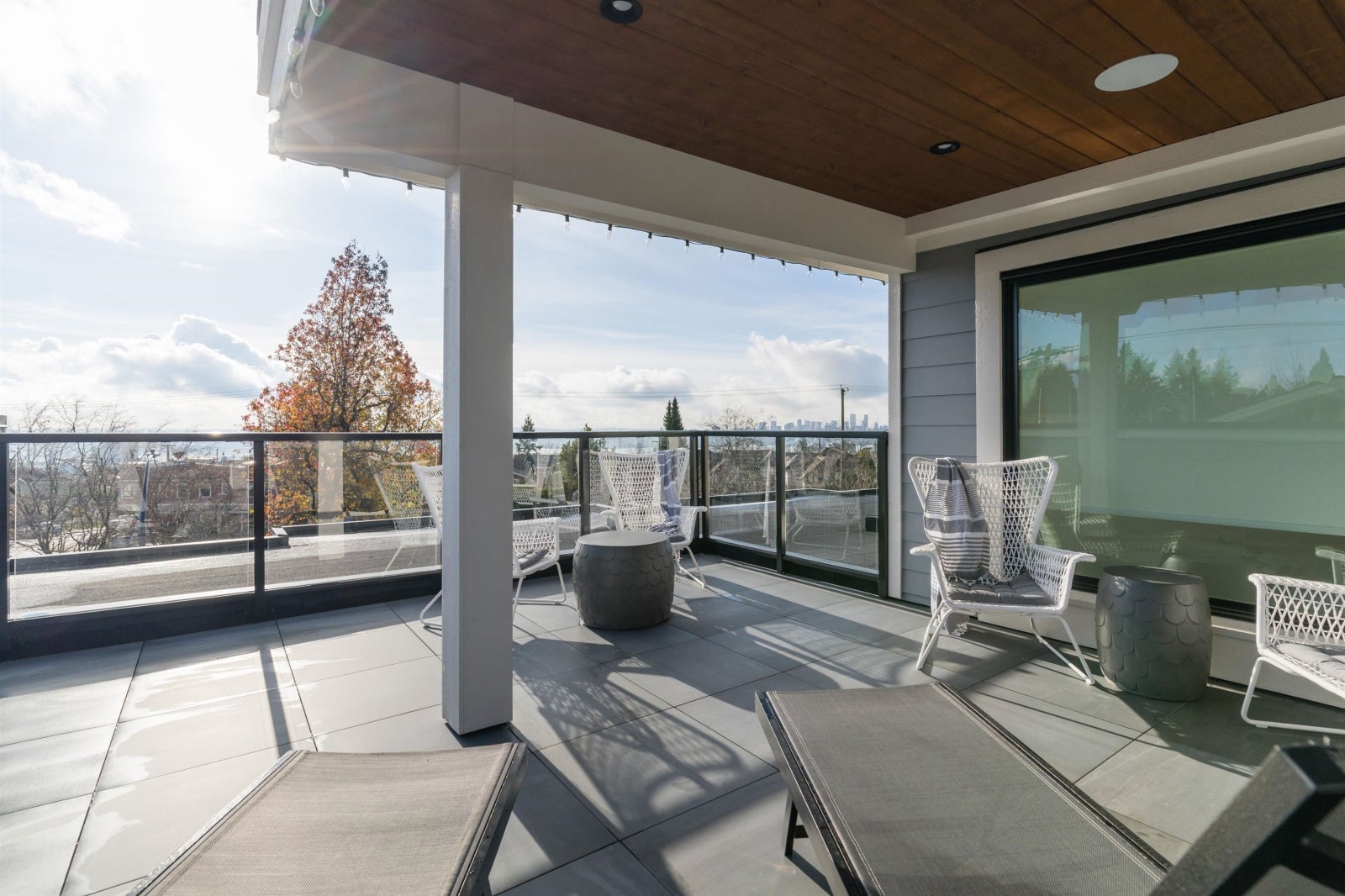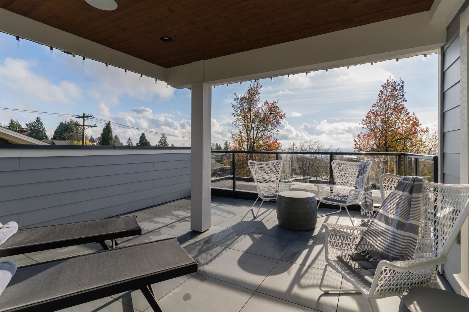 A SPECTACULAR CITY HOME WITH EXCEPTIONAL VIEWS from the roof top patio! Featuring an open concept living plan with sleek interior design, radiant floor heating, Air Conditioning & HRV mechanical systems. The main floor offers an expansive kitchen with custom millwork & quartz counter tops, dining area, & a powder room with a featured brick wall. Upstairs has traditional 3 bedrooms with the primary featuring marble ensuite, WI closet & a deck. The roof top area has a wet bar & a built in office with an exterior south facing patio, perfect for entertaining & taking in the city views. Downstairs has a massive rec room, wet bar, laundry & bath with additional storage areas. Located in one of Central Lonsdale's most sought after areas, this city home is close to all amenities. 1 car garage.