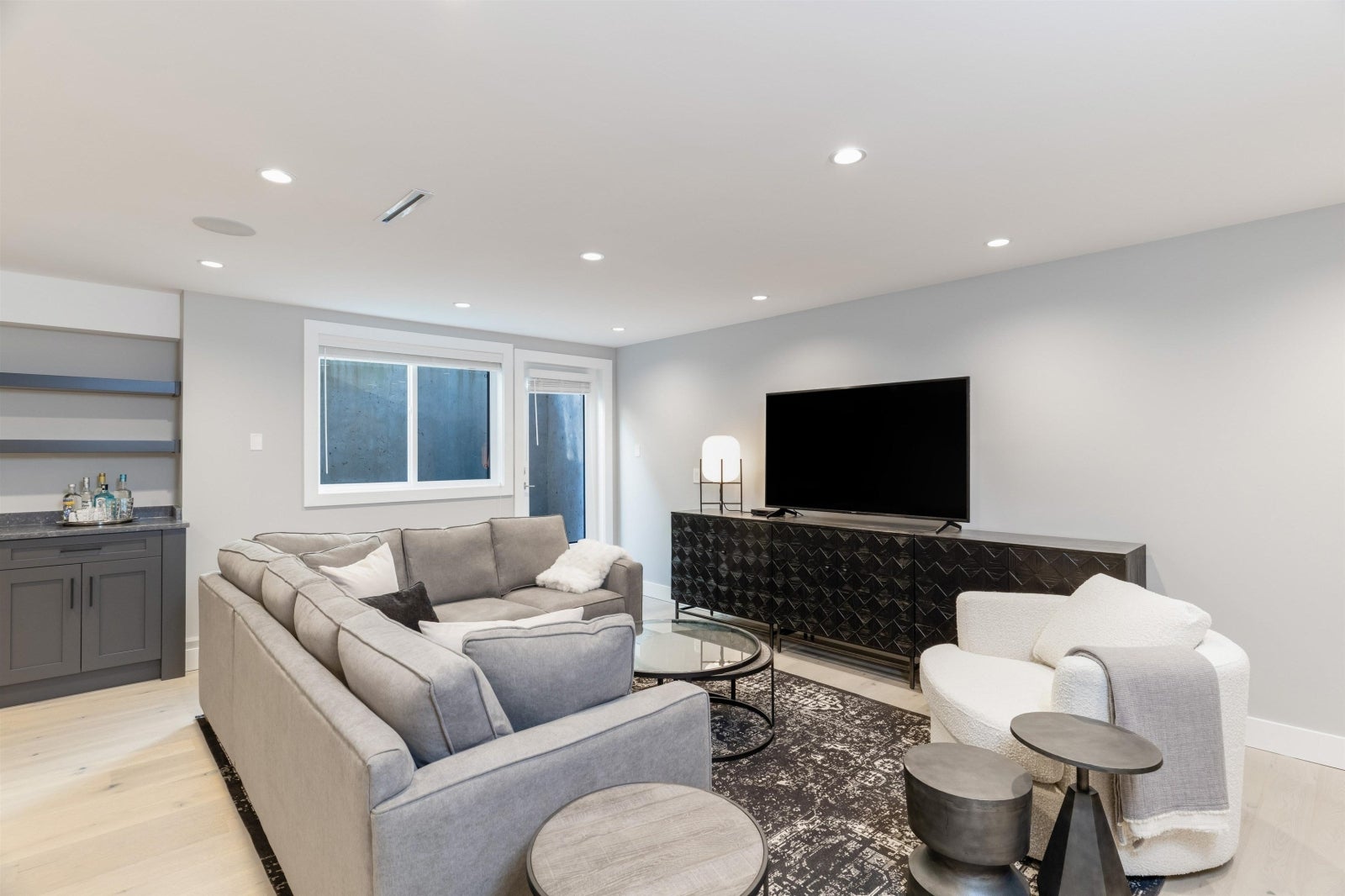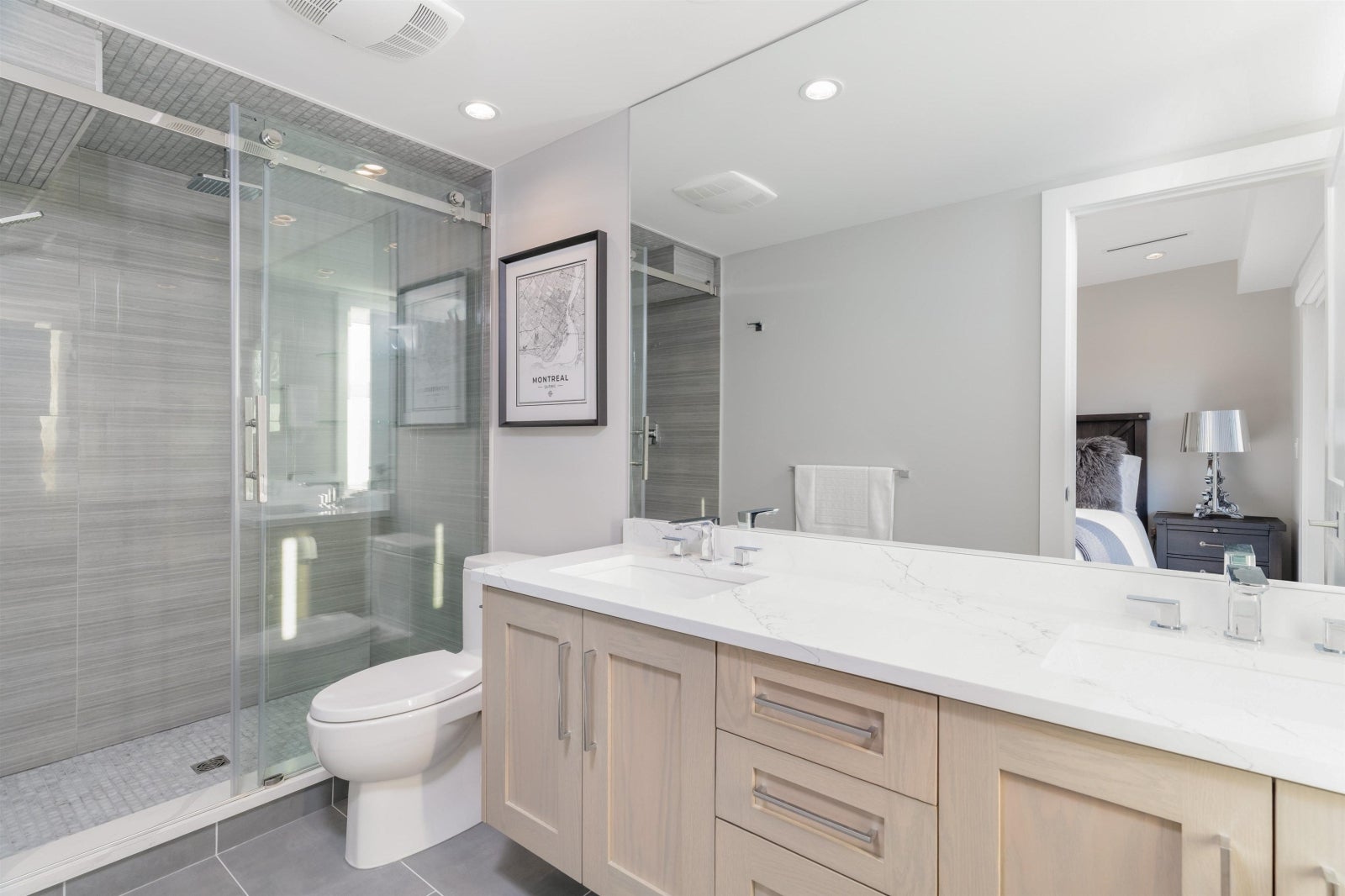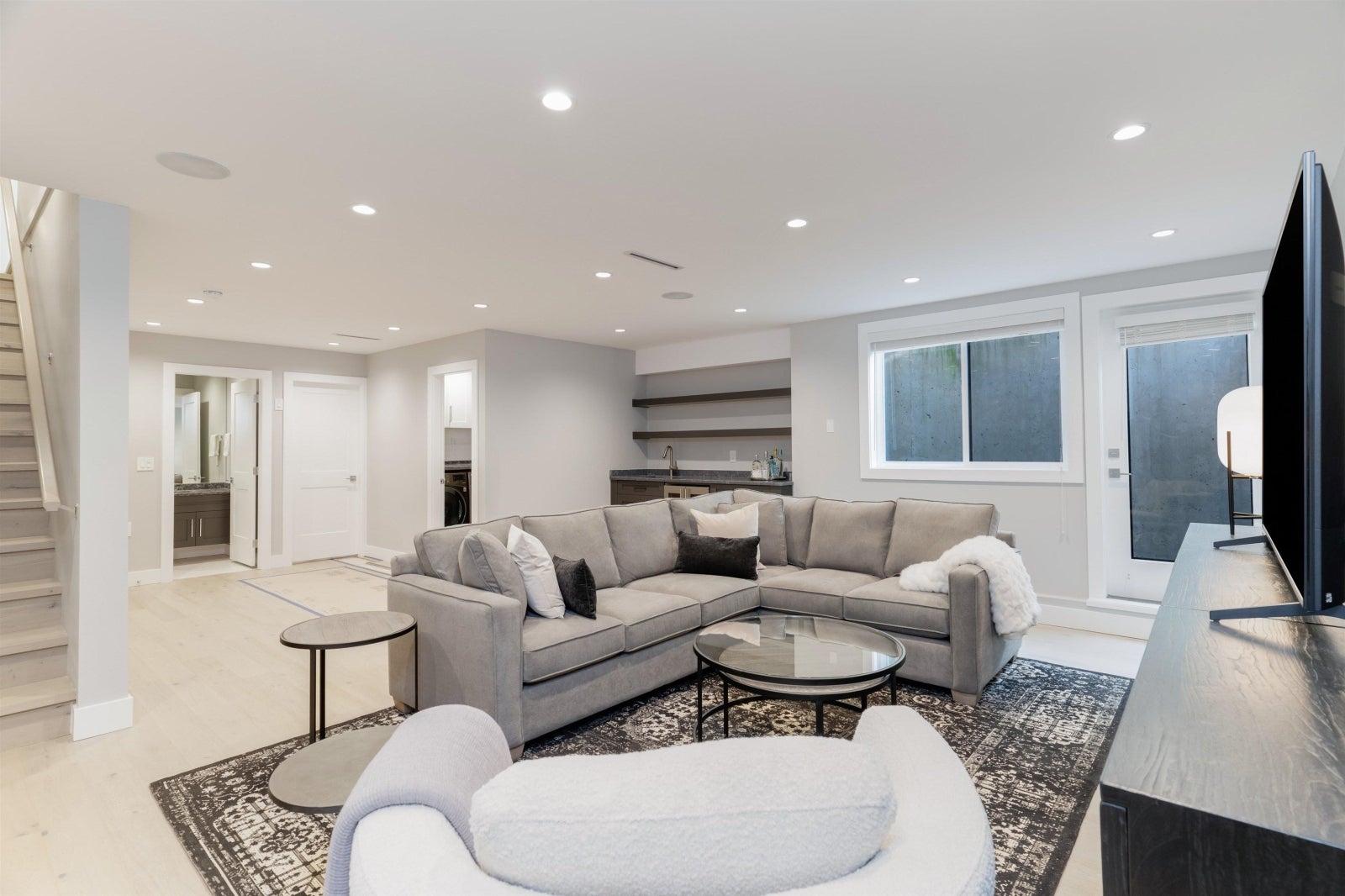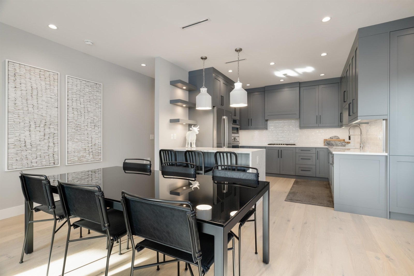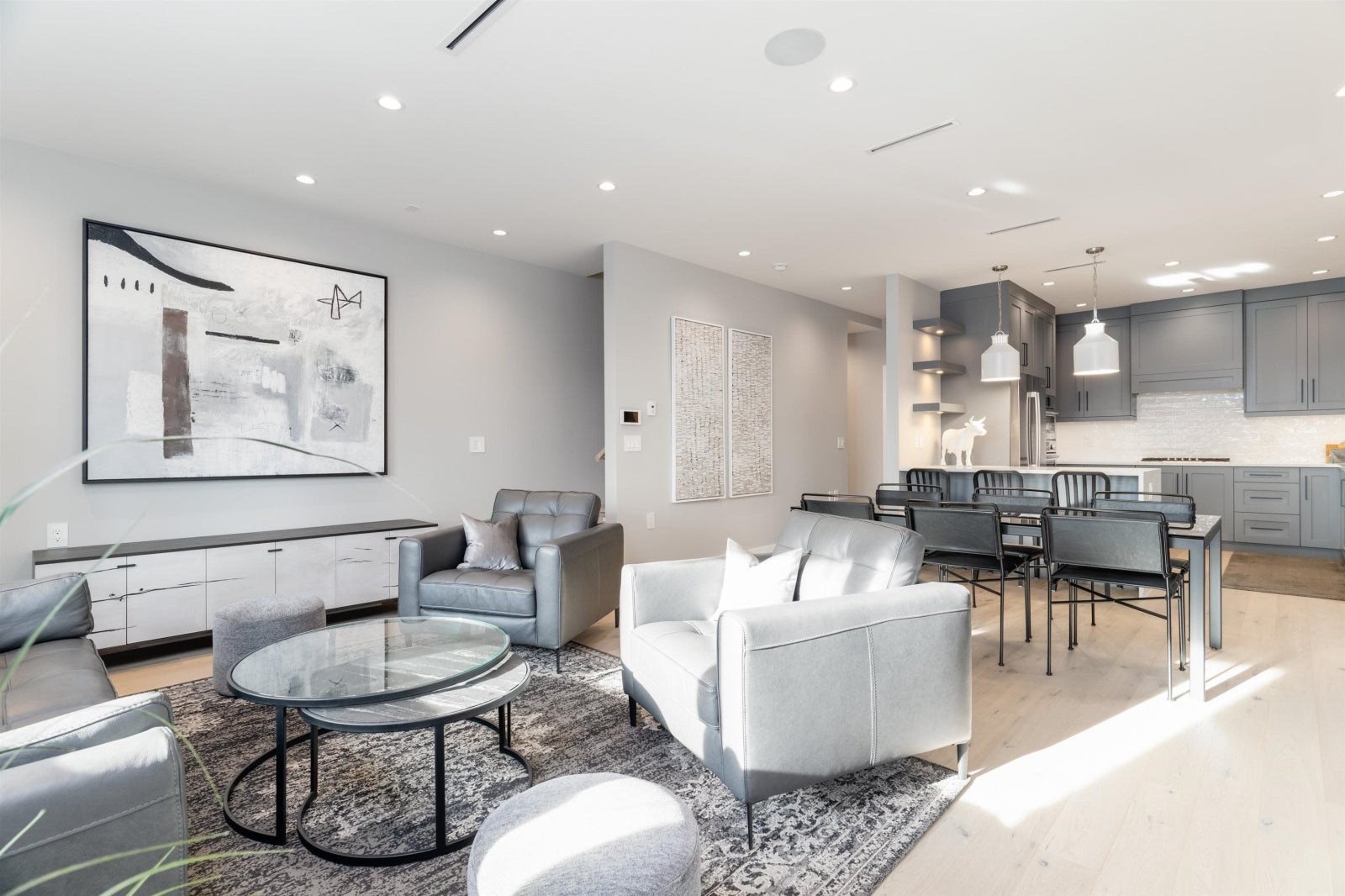 A SPECTACULAR CITY HOME WITH EXCEPTIONAL VIEWS from the roof top patio! Featuring an open concept living plan with sleek interior design, radiant floor heating, Air Conditioning & HRV mechanical systems. The main floor offers an expansive kitchen with custom millwork & quartz counter tops, dining area, & a powder room with a featured brick wall. Upstairs has traditional 3 bedrooms with the primary featuring marble ensuite, WI closet & a deck. The roof top area has a wet bar & a built in office with an exterior south facing patio, perfect for entertaining & taking in the city views. Downstairs has a massive rec room, wet bar, laundry & bath with additional storage areas. Located in one of Central Lonsdale's most sought after areas, this city home is close to all amenities. 1 car garage.