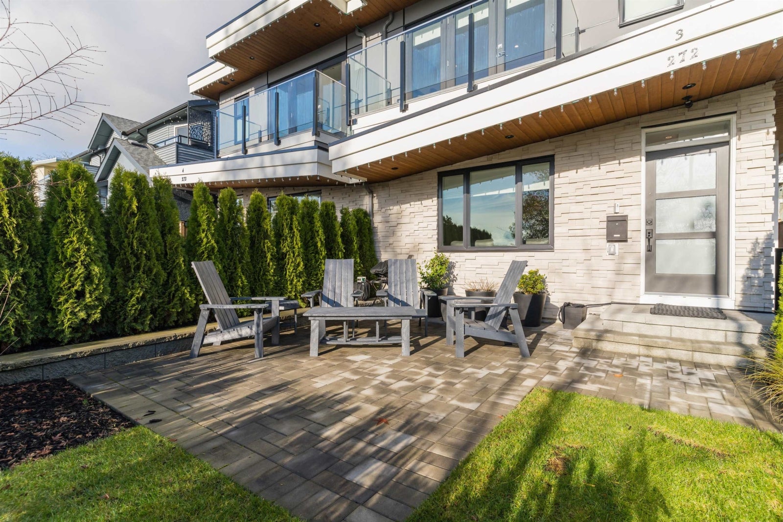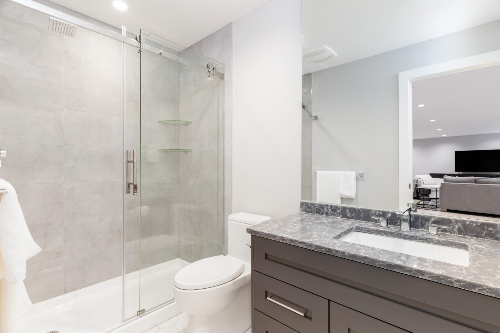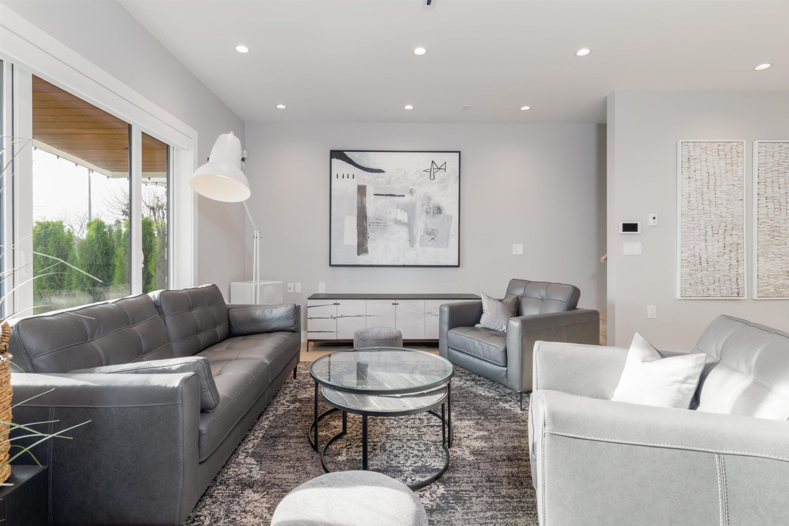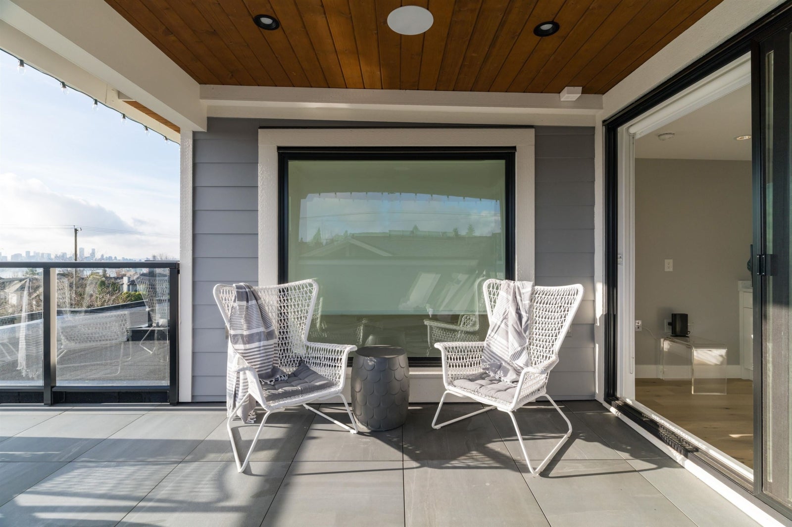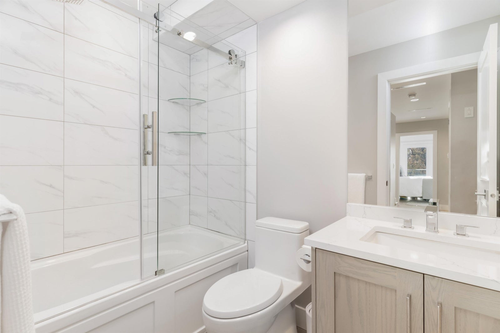 A SPECTACULAR CITY HOME WITH EXCEPTIONAL VIEWS from the roof top patio! Featuring an open concept living plan with sleek interior design, radiant floor heating, Air Conditioning & HRV mechanical systems. The main floor offers an expansive kitchen with custom millwork & quartz counter tops, dining area, & a powder room with a featured brick wall. Upstairs has traditional 3 bedrooms with the primary featuring marble ensuite, WI closet & a deck. The roof top area has a wet bar & a built in office with an exterior south facing patio, perfect for entertaining & taking in the city views. Downstairs has a massive rec room, wet bar, laundry & bath with additional storage areas. Located in one of Central Lonsdale's most sought after areas, this city home is close to all amenities. 1 car garage.