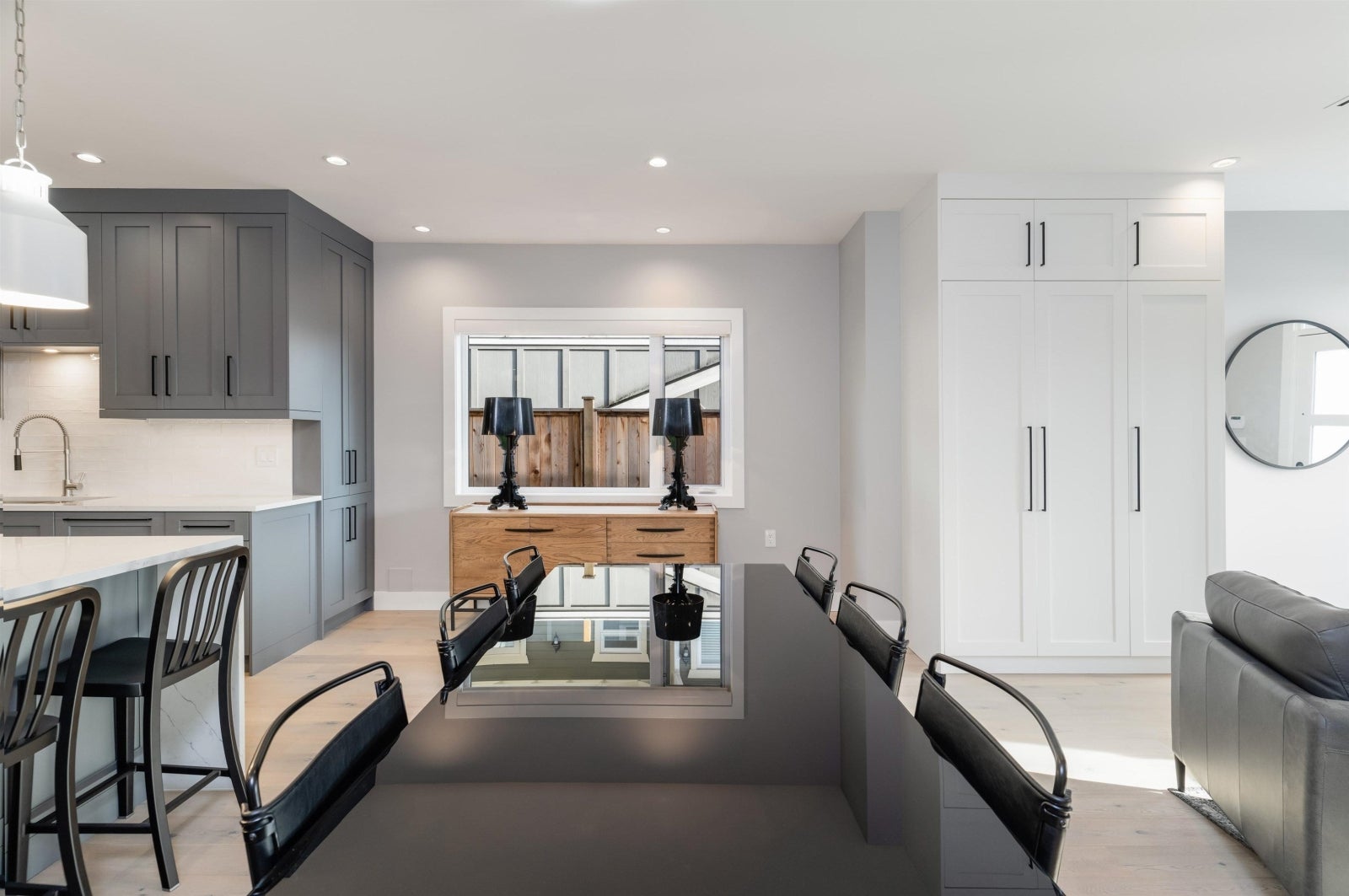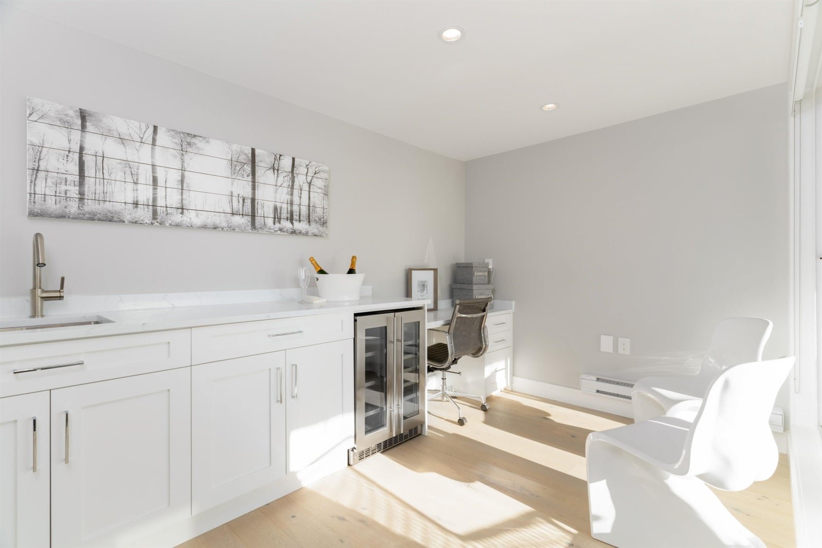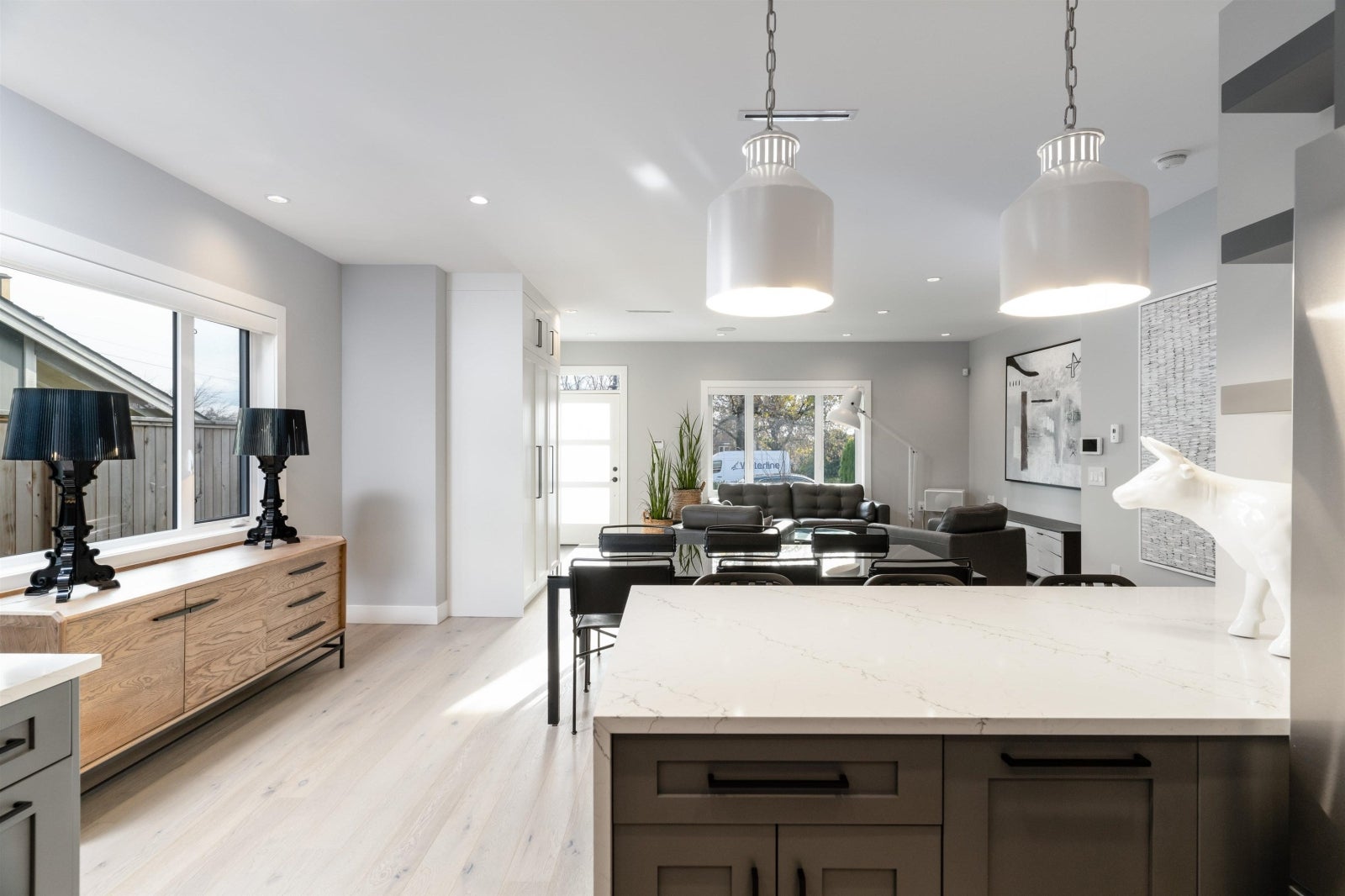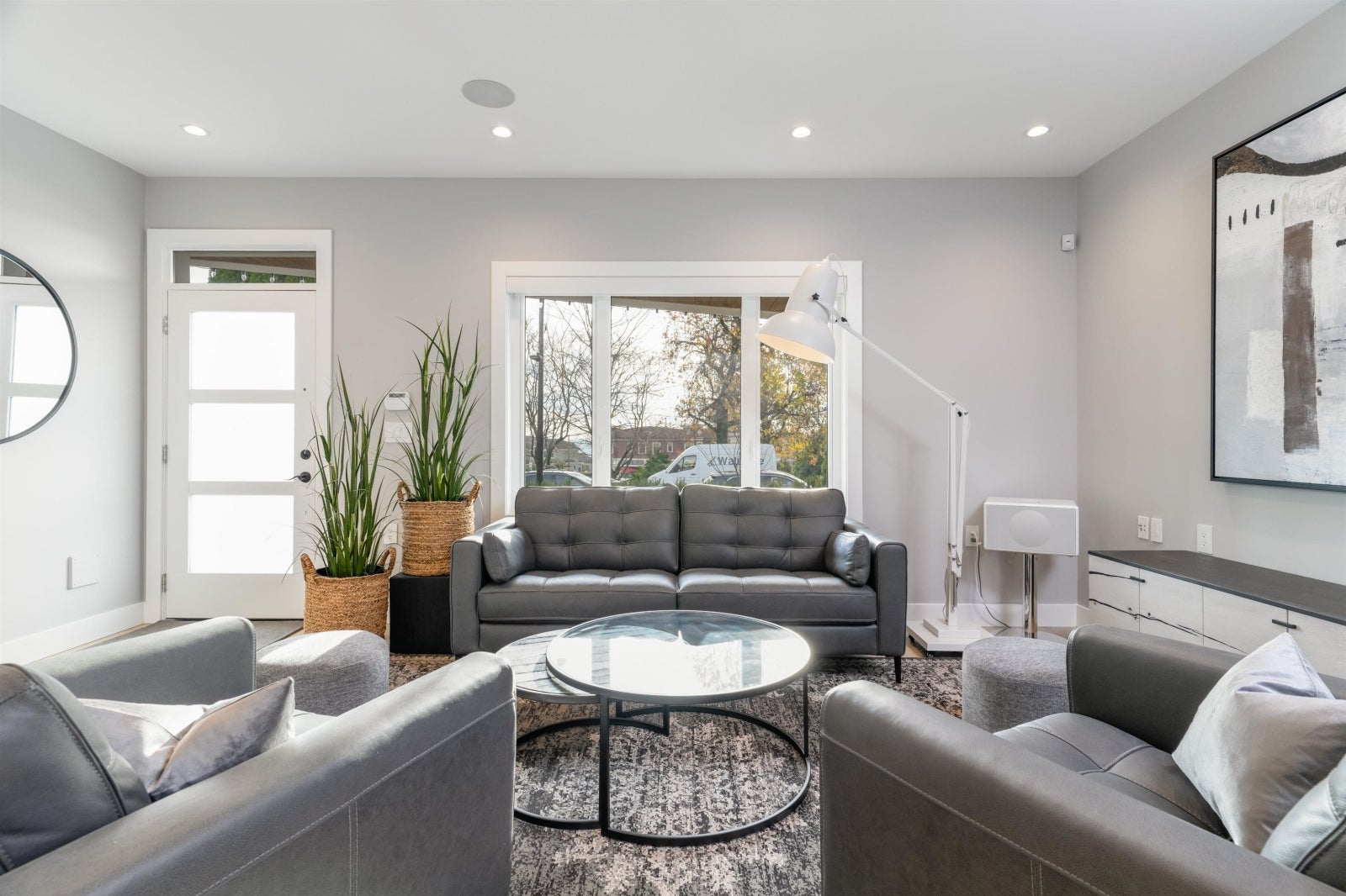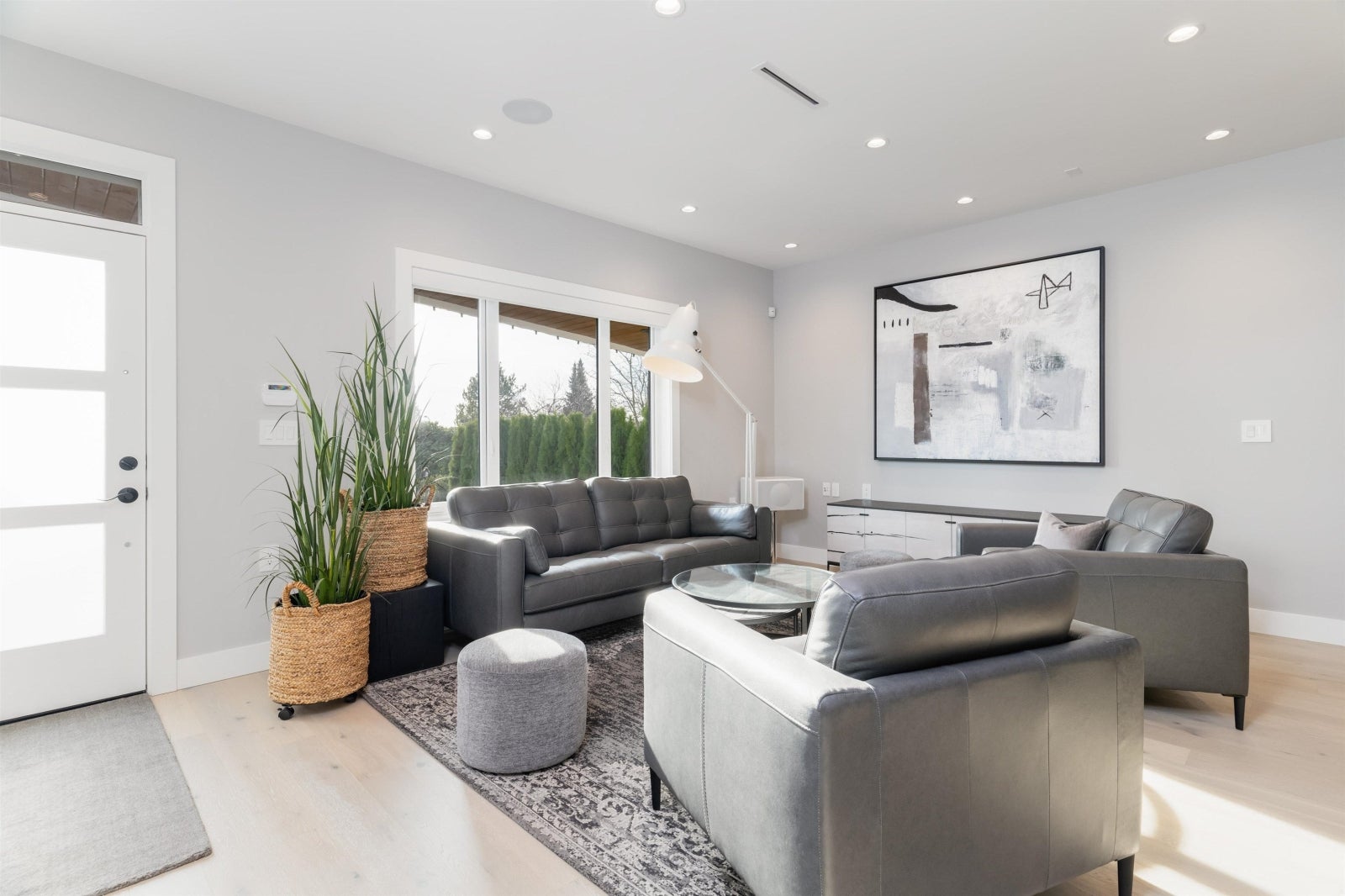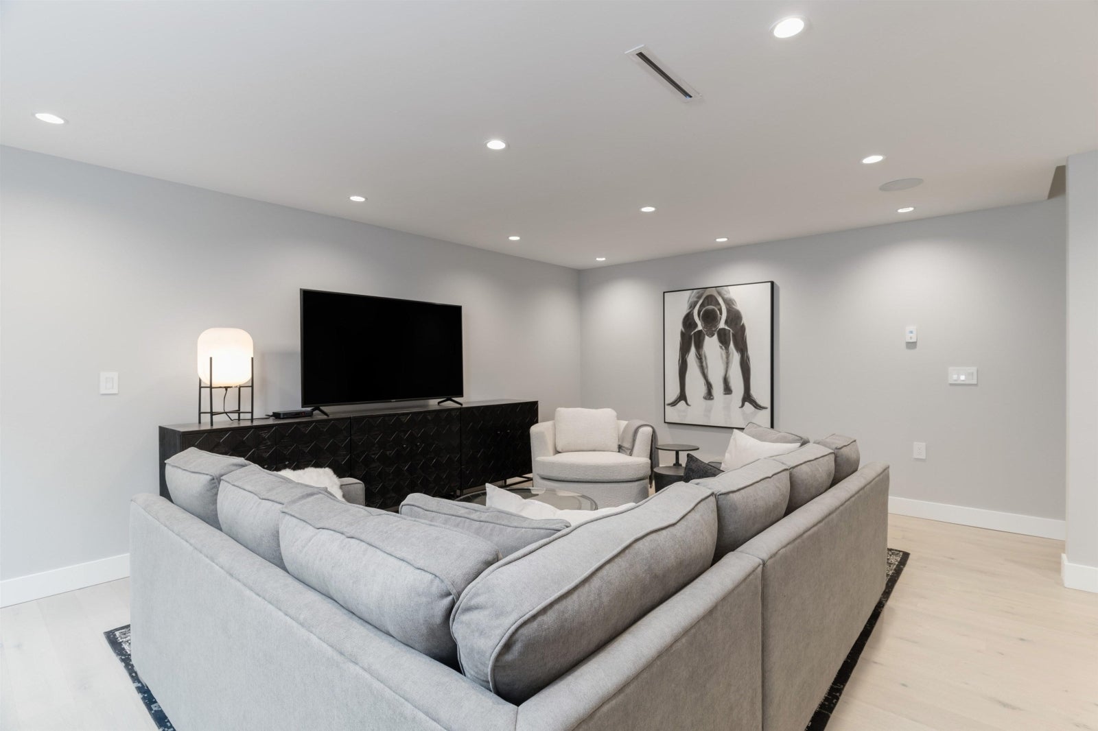 A SPECTACULAR CITY HOME WITH EXCEPTIONAL VIEWS from the roof top patio! Featuring an open concept living plan with sleek interior design, radiant floor heating, Air Conditioning & HRV mechanical systems. The main floor offers an expansive kitchen with custom millwork & quartz counter tops, dining area, & a powder room with a featured brick wall. Upstairs has traditional 3 bedrooms with the primary featuring marble ensuite, WI closet & a deck. The roof top area has a wet bar & a built in office with an exterior south facing patio, perfect for entertaining & taking in the city views. Downstairs has a massive rec room, wet bar, laundry & bath with additional storage areas. Located in one of Central Lonsdale's most sought after areas, this city home is close to all amenities. 1 car garage.