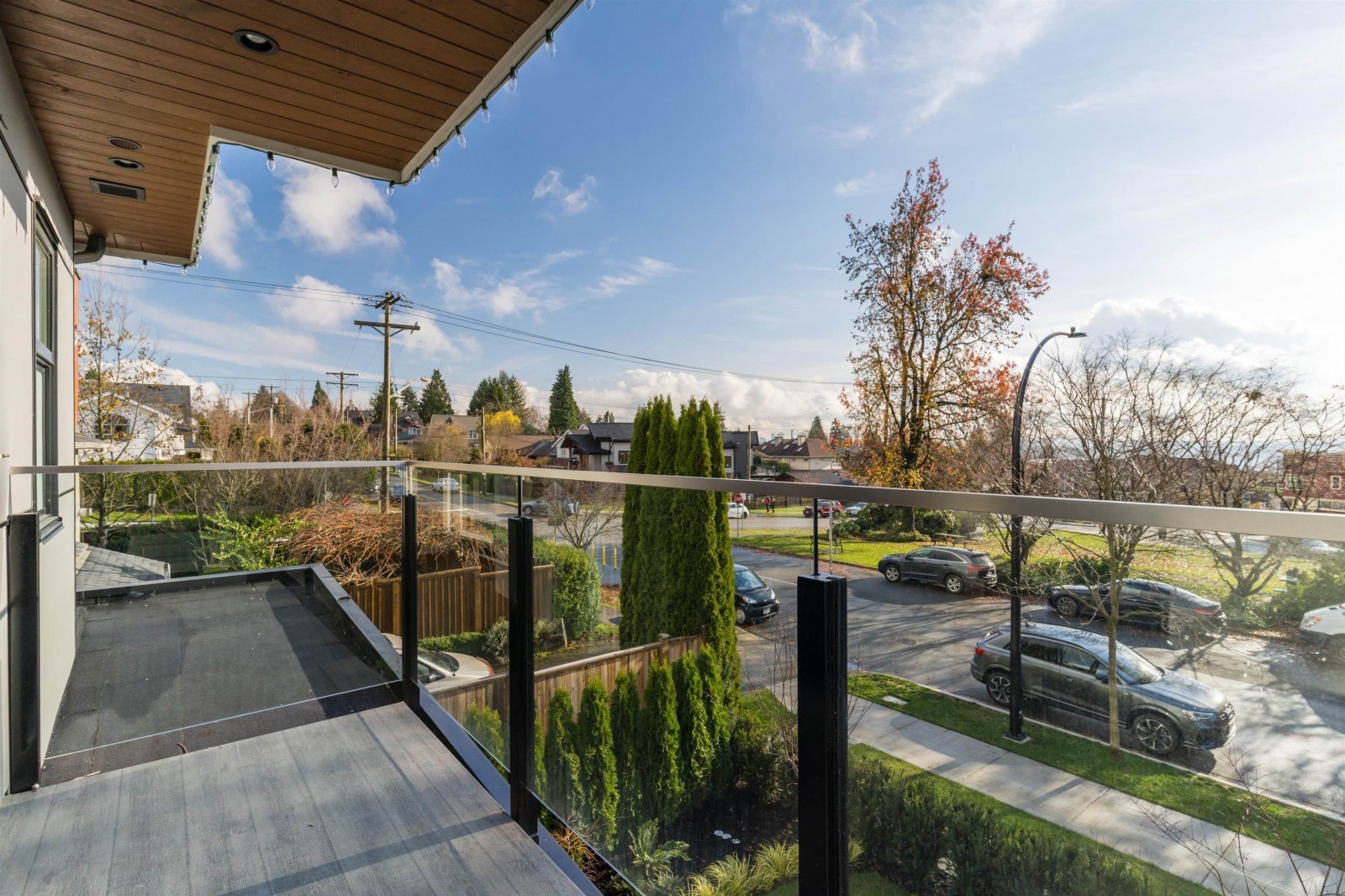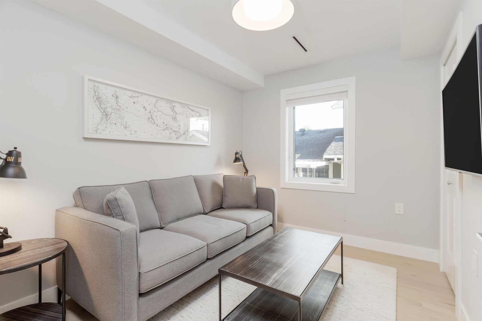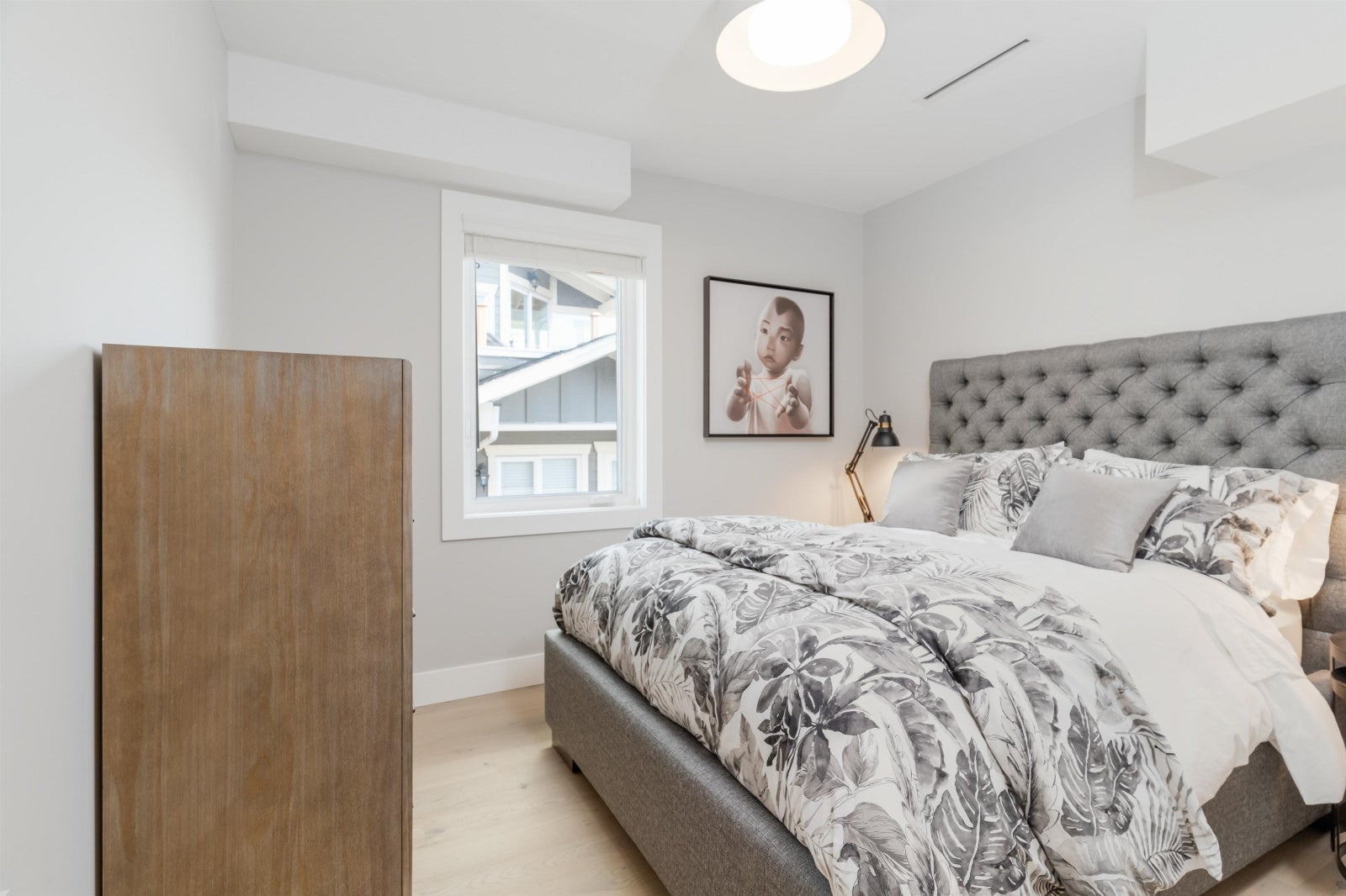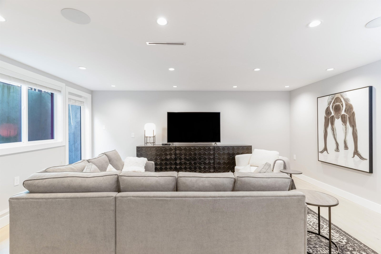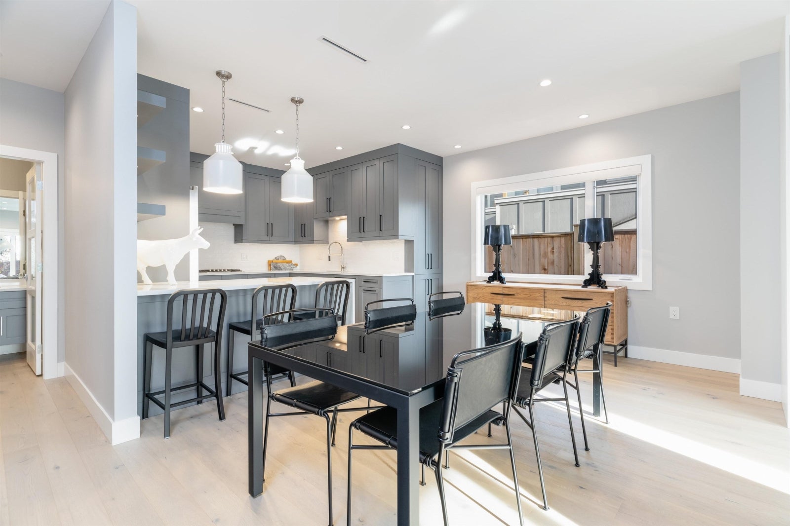 A SPECTACULAR CITY HOME WITH EXCEPTIONAL VIEWS from the roof top patio! Featuring an open concept living plan with sleek interior design, radiant floor heating, Air Conditioning & HRV mechanical systems. The main floor offers an expansive kitchen with custom millwork & quartz counter tops, dining area, & a powder room with a featured brick wall. Upstairs has traditional 3 bedrooms with the primary featuring marble ensuite, WI closet & a deck. The roof top area has a wet bar & a built in office with an exterior south facing patio, perfect for entertaining & taking in the city views. Downstairs has a massive rec room, wet bar, laundry & bath with additional storage areas. Located in one of Central Lonsdale's most sought after areas, this city home is close to all amenities. 1 car garage.