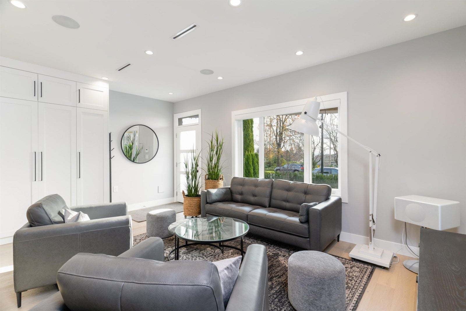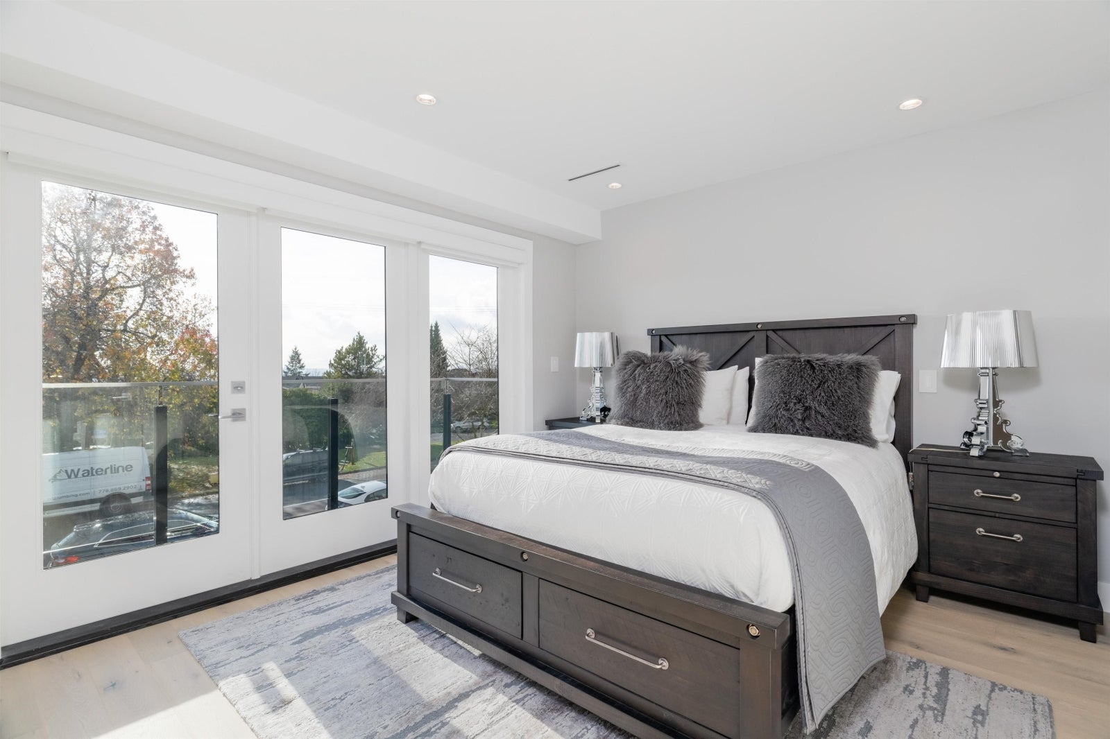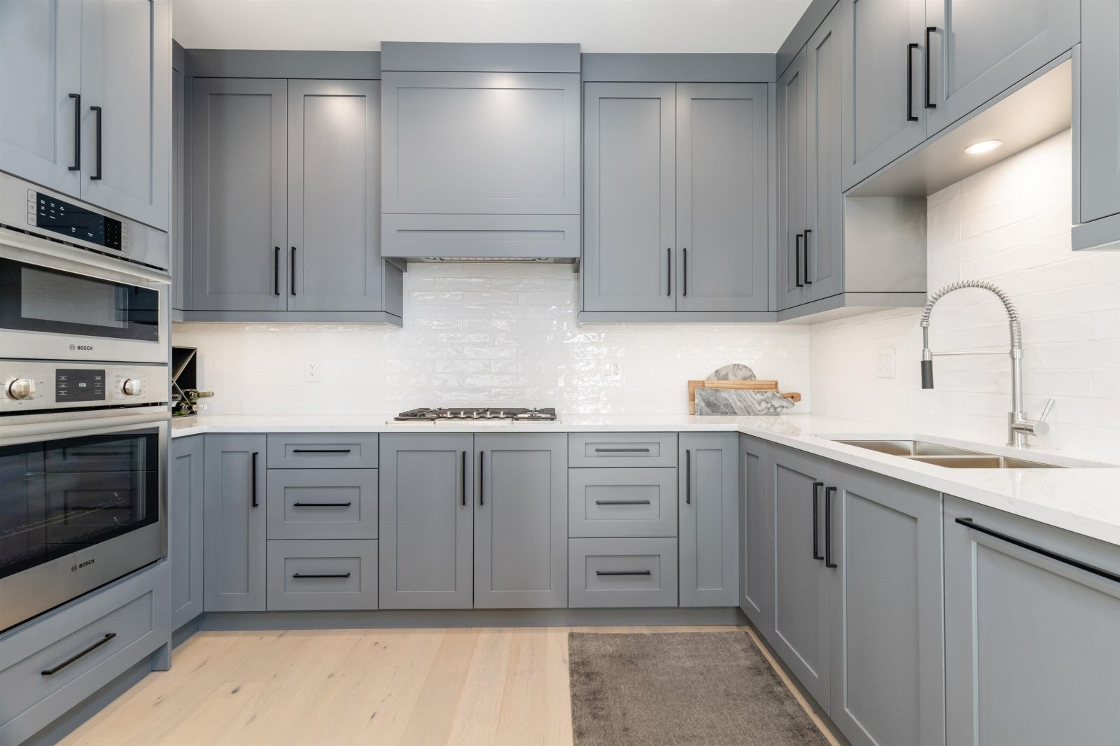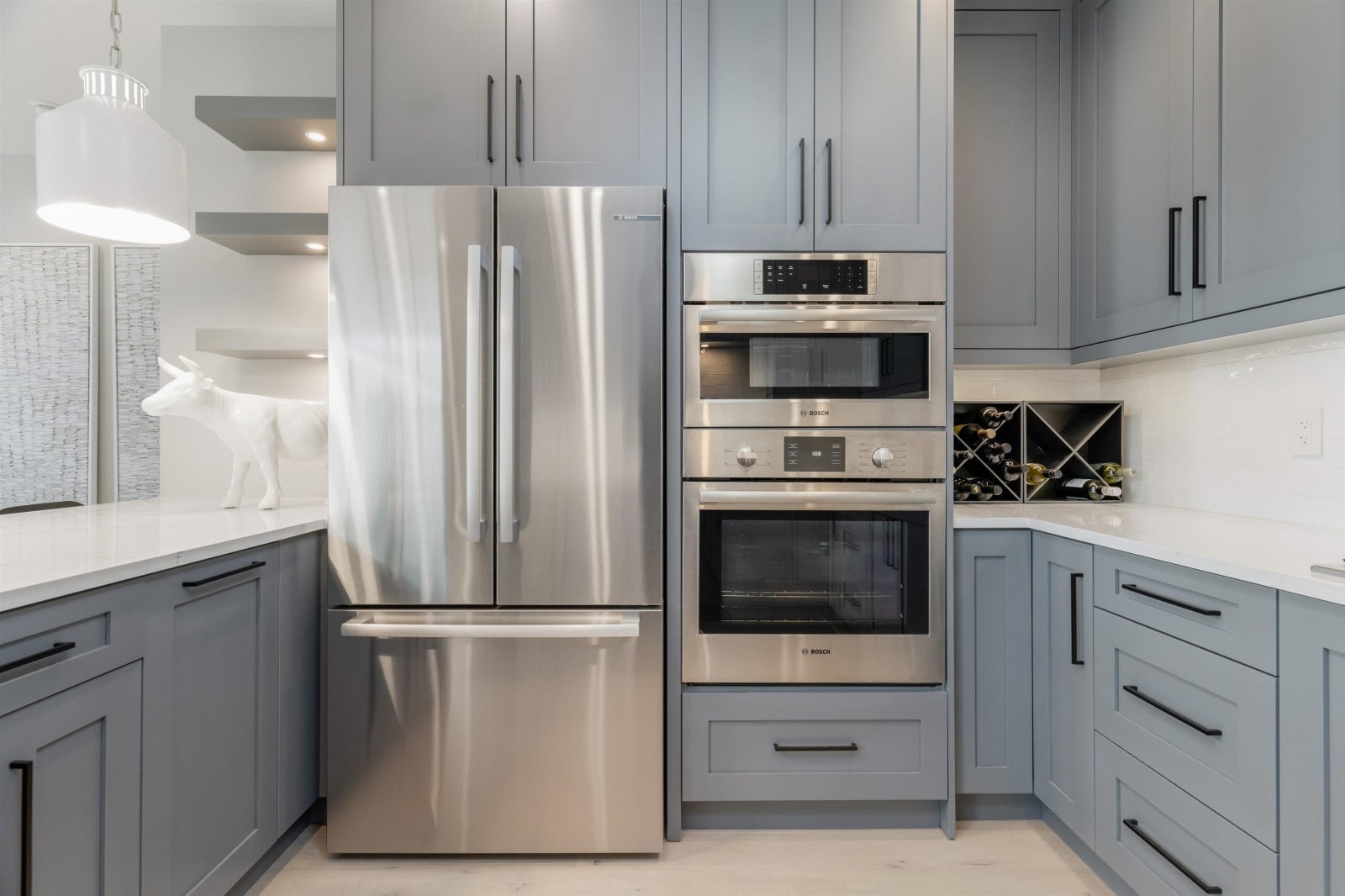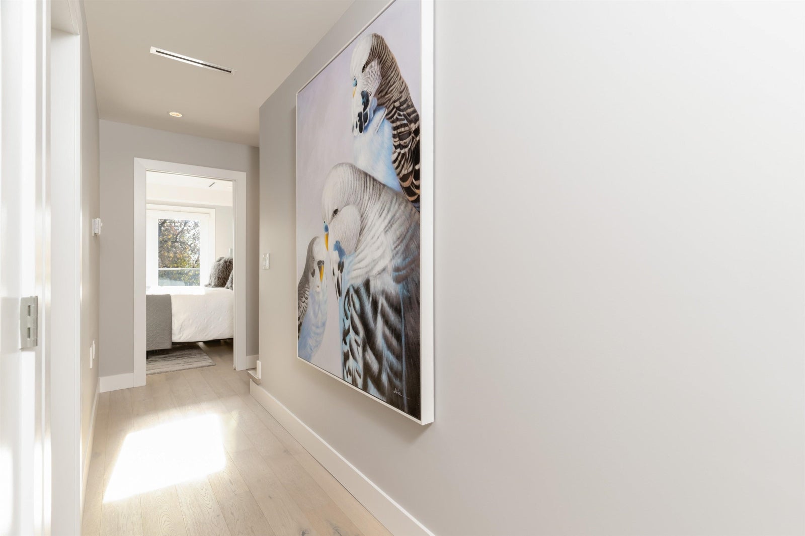 A SPECTACULAR CITY HOME WITH EXCEPTIONAL VIEWS from the roof top patio! Featuring an open concept living plan with sleek interior design, radiant floor heating, Air Conditioning & HRV mechanical systems. The main floor offers an expansive kitchen with custom millwork & quartz counter tops, dining area, & a powder room with a featured brick wall. Upstairs has traditional 3 bedrooms with the primary featuring marble ensuite, WI closet & a deck. The roof top area has a wet bar & a built in office with an exterior south facing patio, perfect for entertaining & taking in the city views. Downstairs has a massive rec room, wet bar, laundry & bath with additional storage areas. Located in one of Central Lonsdale's most sought after areas, this city home is close to all amenities. 1 car garage.
