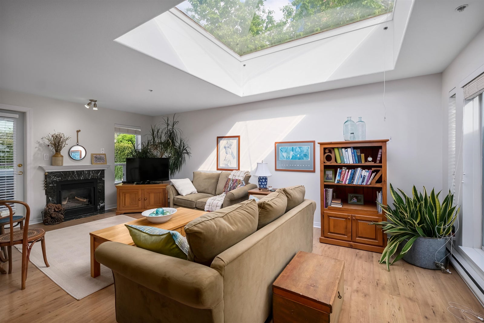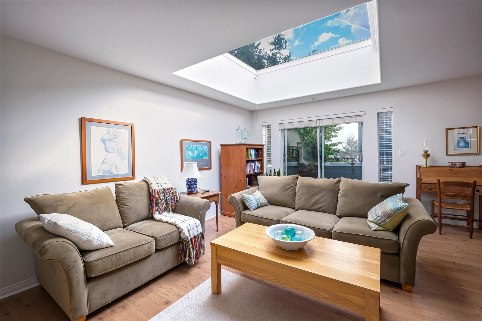 A FABULOUS 1200 SF CONDO IN LOWER LONSDALE. TOP FLOOR 2 bed + 2 Bath + Den floorplan with massive sky lights for amazing natural light. This corner unit has both north and south patios for outdoor living, huge room sizes, large walk in closets, ensuites in both bathrooms, gas fireplace and in suite laundry. A boutique rain screened building in a superb location, close to the AMAZING shipyard district. Pets and rentals are allowed. A rare over sized unit in the heart of LOLO! Showings Friday 4-5 pm and Saturday from 130-4 PM.