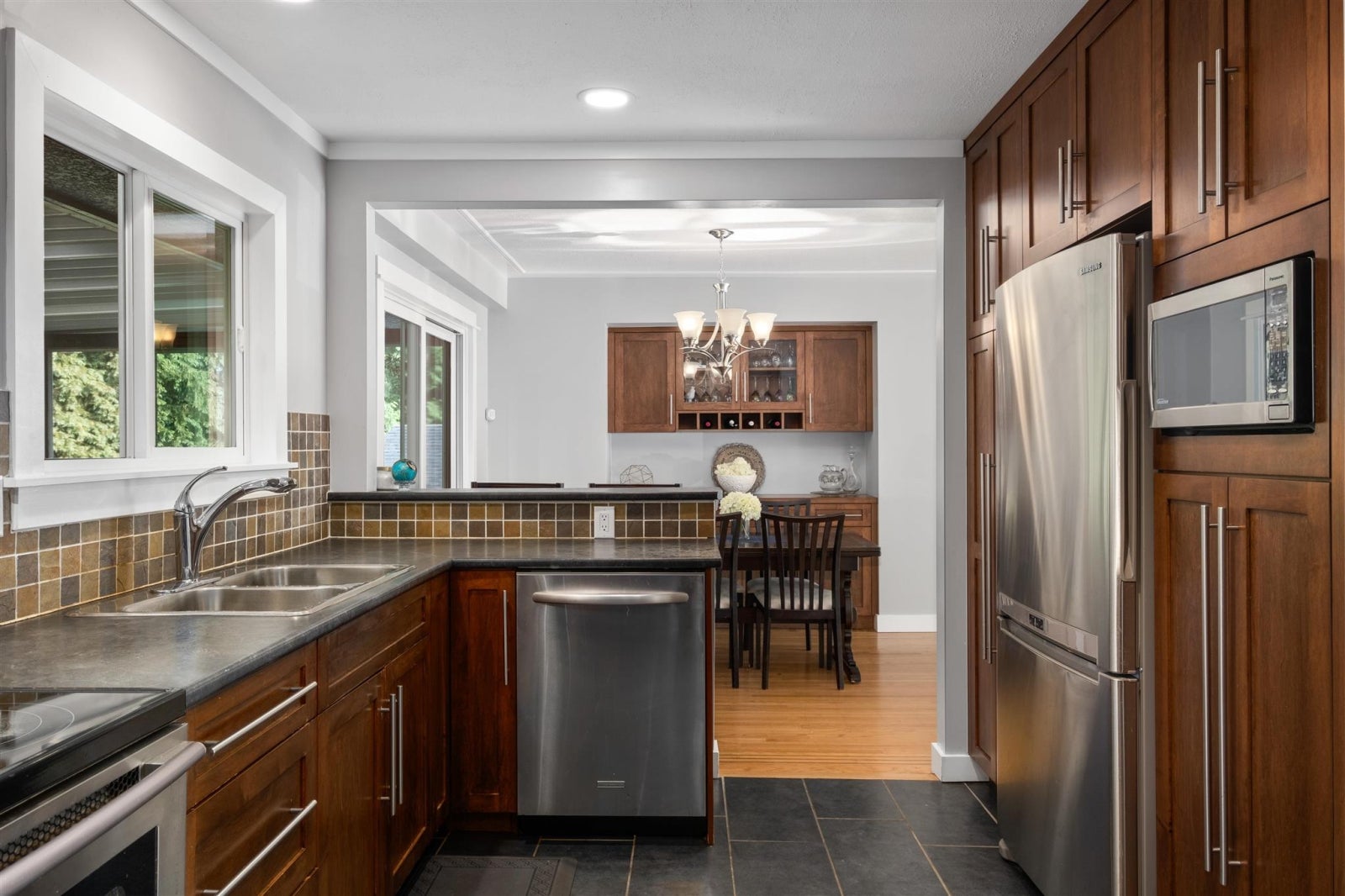 SPECTACULAR PROPERTY IN POPULAR Windsor Park. Featuring almost 9,000 SF of land with an ULTRA private back yard that is lush, flat, fully fenced in - perfect for summer entertaining. A ton of upgrades in the last decade, this SOLID 2,600 SF home has 2 levels, a garage, outdoor storage, landscaping lighting, water views & pride of ownership! Upstairs boasts 3 bedrooms, 2 baths & a generous sized kitchen, dining & living area. Off the main living area, enjoy an expansive covered deck, for indoor & outdoor seamless living, BBQing & sitting area. Featuring a bright walkout basement level, a huge rec room, bedroom, laundry, unfinished 340 SF that can be a workshop, home gym and or an art room. This floorplan can be easily suited for extra income (check with DNV) with loads of natural light.