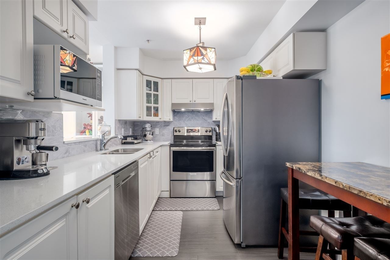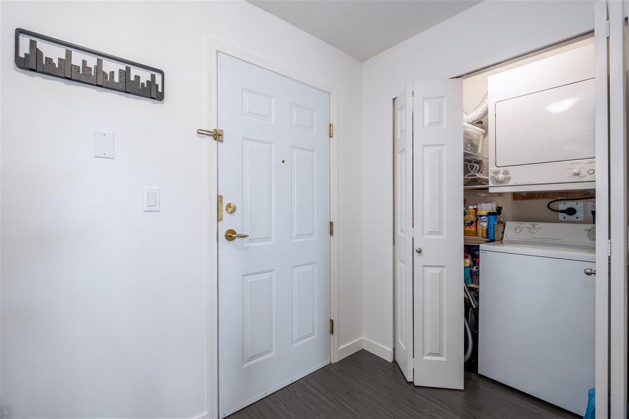 FANTASTIC 1 BEDROOM WITH LOADS OF NATURAL LIGHT! This south facing unit offers downtown Vancouver views all in a central location close to amenities. Featuring a functional living plan with new hardwood flooring, renovated kitchen with SS appliances, in suite washer and dryer with storage and a great outdoor balcony. Quietly nestled behind Marine drive, this clean corner unit has 1 large storage locker, 1 parking, rentals and pets are allowed. Move in ready, transit and bike routes are right outside your doorstep. Enjoy the lifestyle in this 700 SF apartment on the Marine Drive corridor. Call listing agent for private showing.
