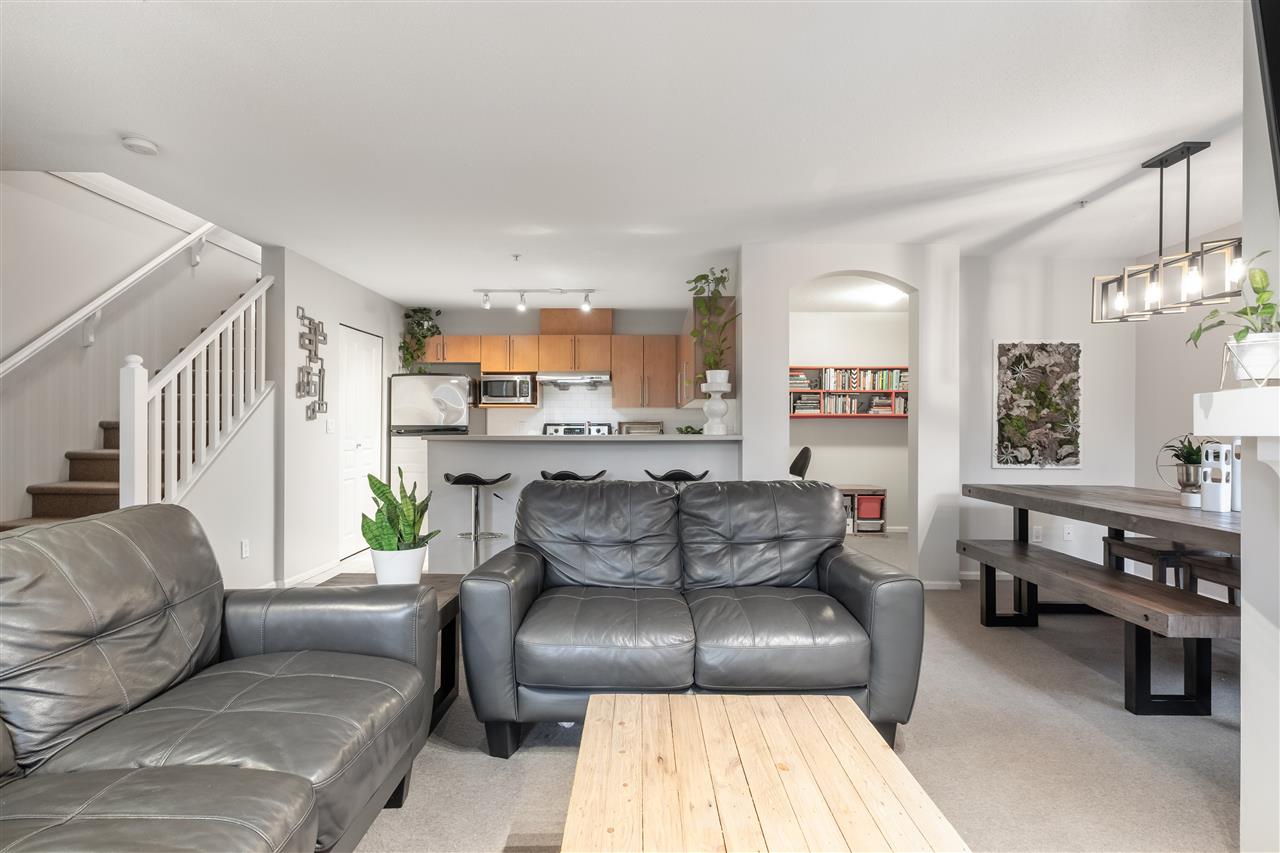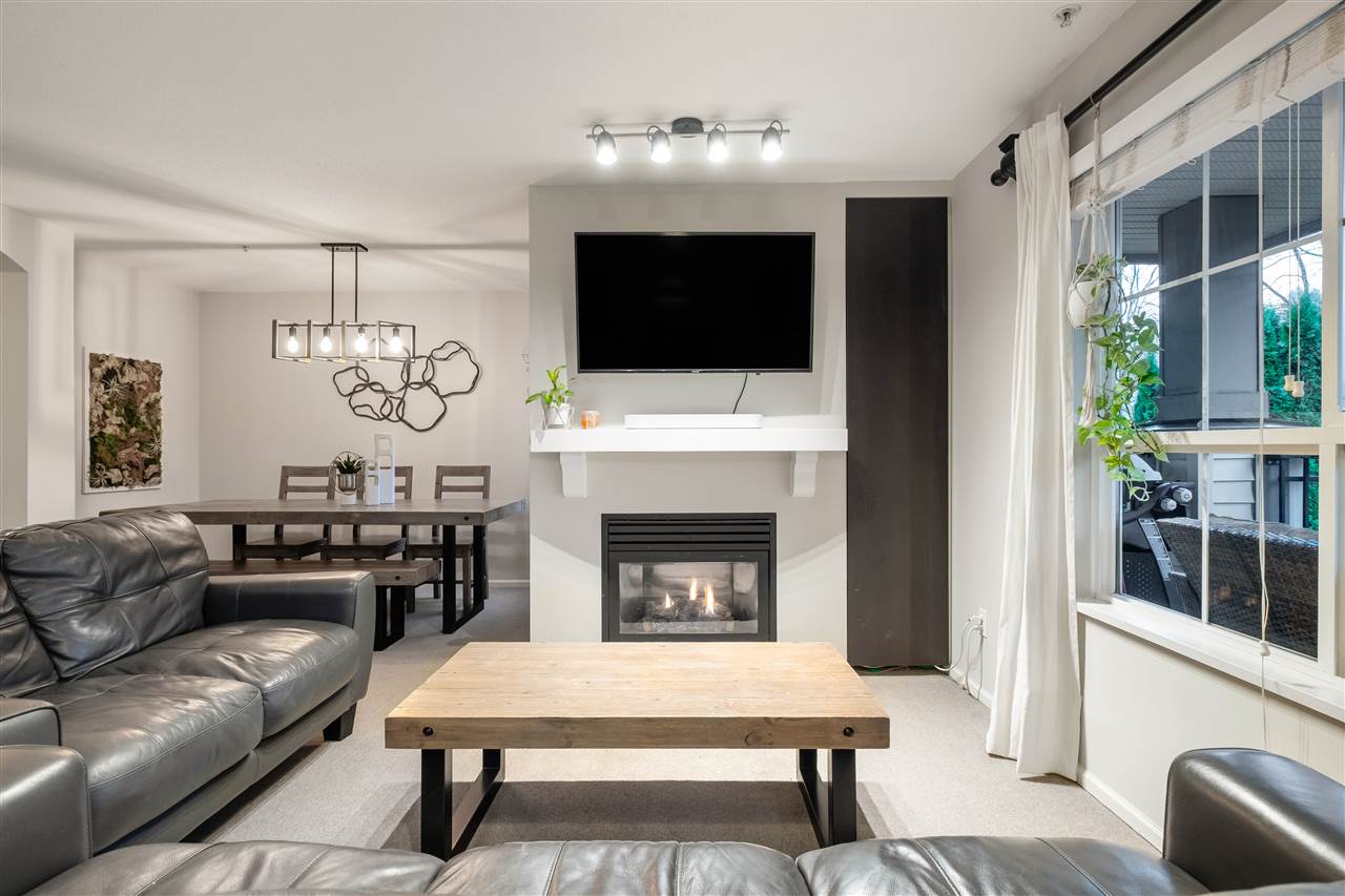 A FAMILY FRIENDLY 3 BED + DEN, 2 BATH TOWNHOUSE IN AN AMAZING LOCATION of Lynn valley! This rare 1,215 unit is in the popular “Highgate” development. PERFECT for young families, offering great indoor and outdoor living spaces. Open concept on the main floor with a large dining area, den (home office), living and kitchen with a pantry. Upstairs offers 3 bedrooms with an ensuite in the master and walk in closet with beautiful mountain views. The outdoor space includes a private veranda and a fully fenced in lower patio, perfect for outdoor entertaining or a kids mini play area. Walking distance to the new Lynn valley Town Center, transit, restaurants, parks, schools and dog friendly trails. 1 storage(#100) and 1 secured parking(#105). This will not last long, book your private appointment.