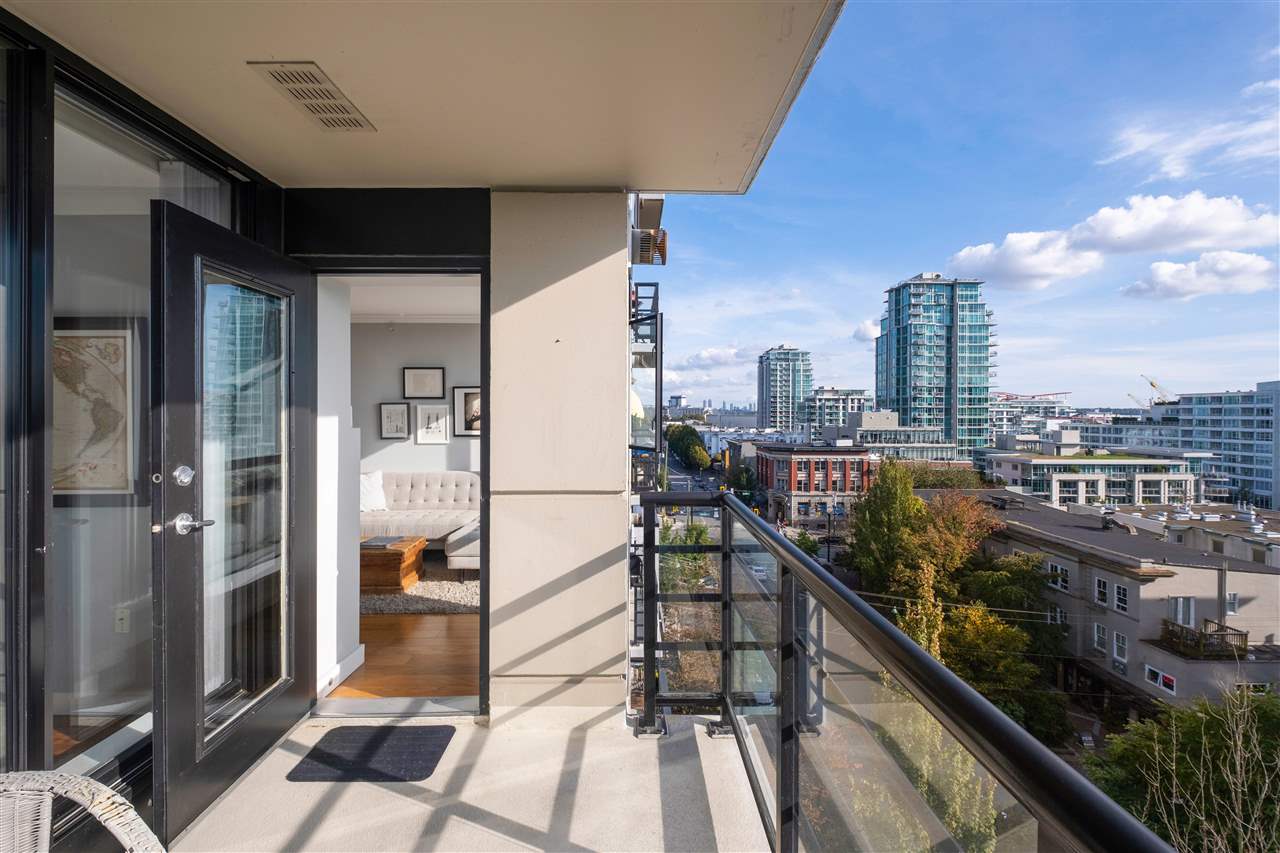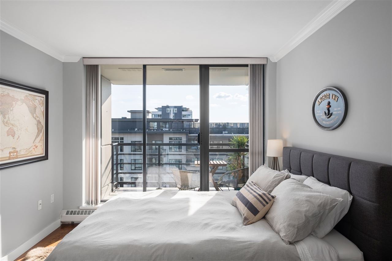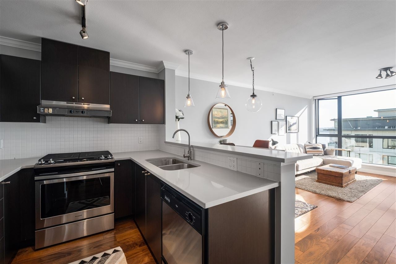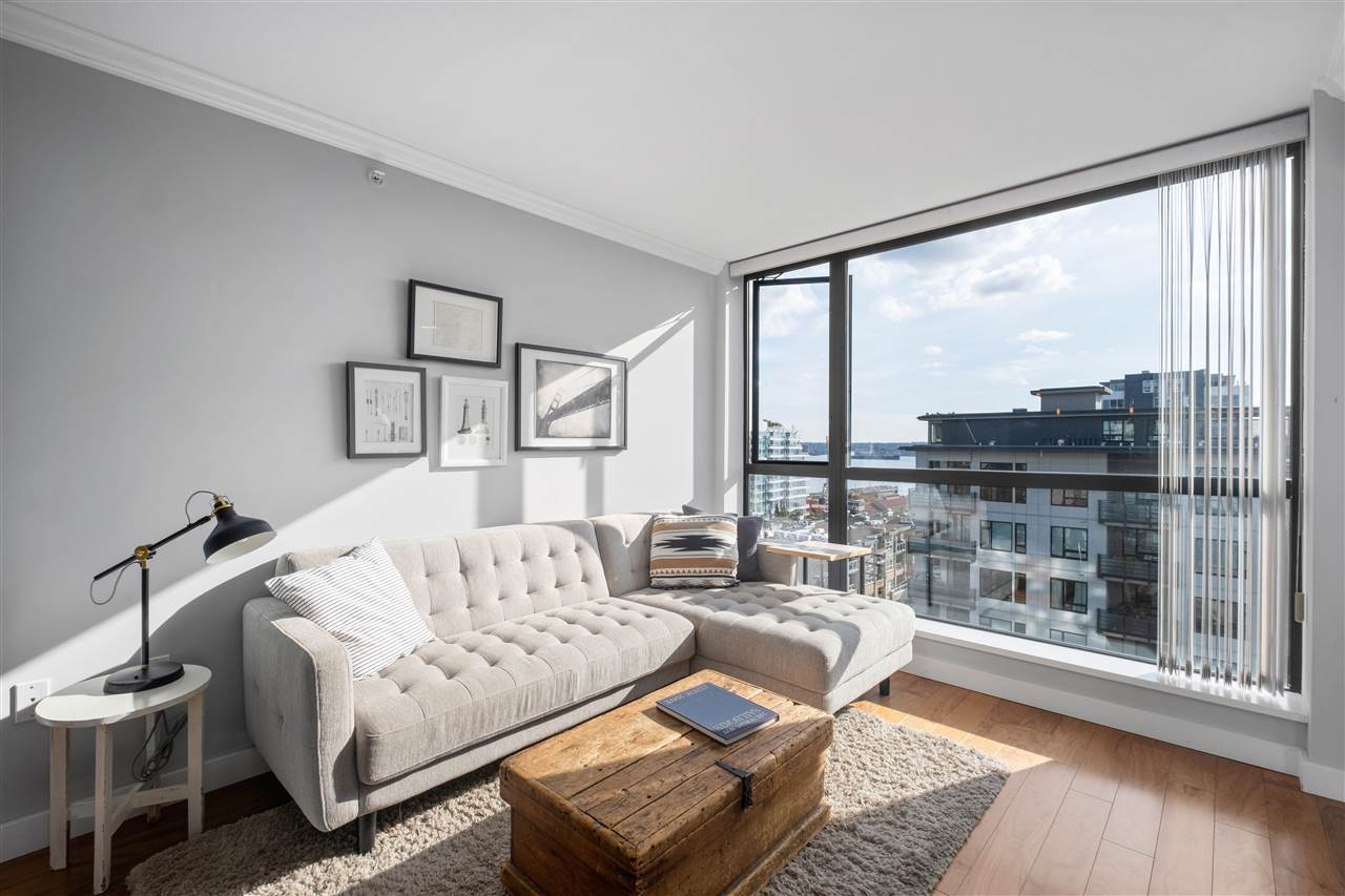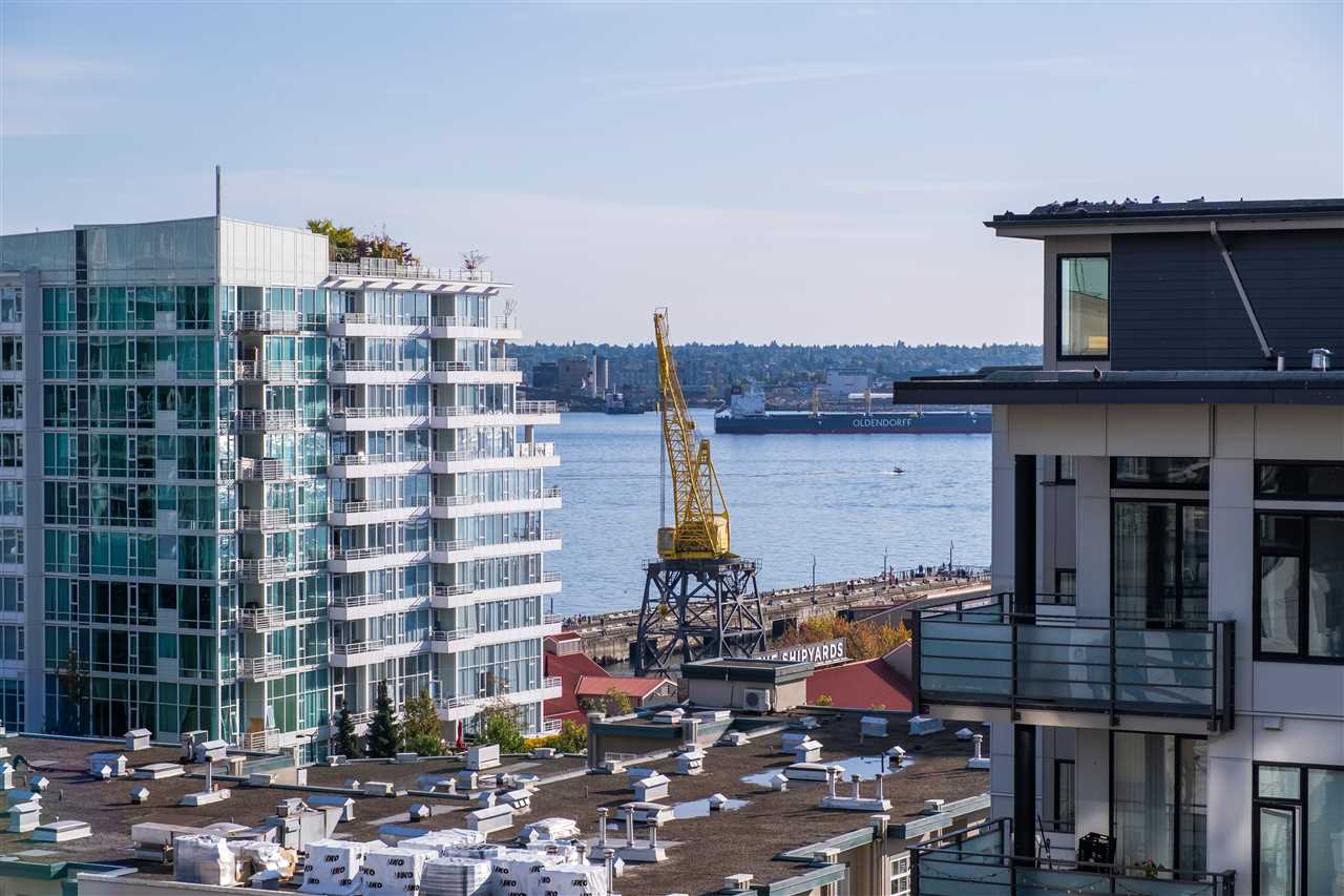A SPECTACULAR, 632 SF 1 bedroom & den at THE Q! A perfect location in the heart of Lower Lonsdale with southern exposure capturing city & water views. This bright unit features newer walnut flooring, S/S appliances, quartz counters and designer lighting... pride of ownership is evident here. The living room & master bedroom are a great size with the large patio space, a perfect place to catch sunshine and sip on a cappuccino. Enjoy North Van's best amenities, including John Braithwaite Rec Centre, restaurants, shops, Lonsdale Q, and the seabus will have you downtown in 12 minutes. One parking & storage included. Enjoy living on the best block in Lower Lonsdale.