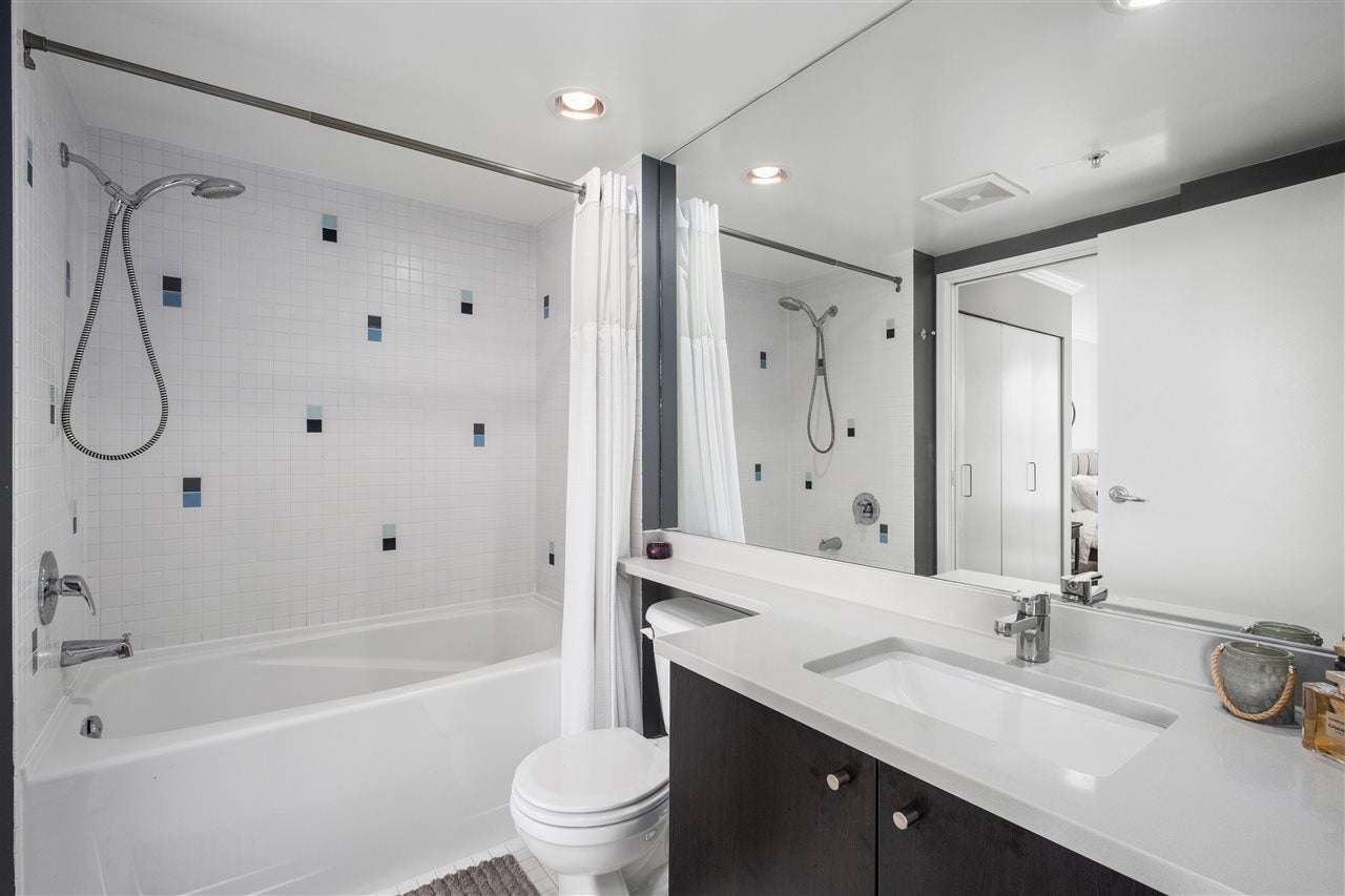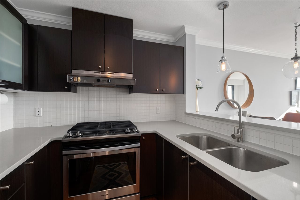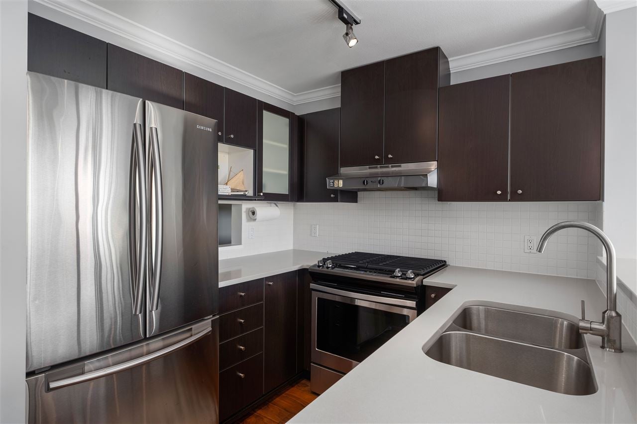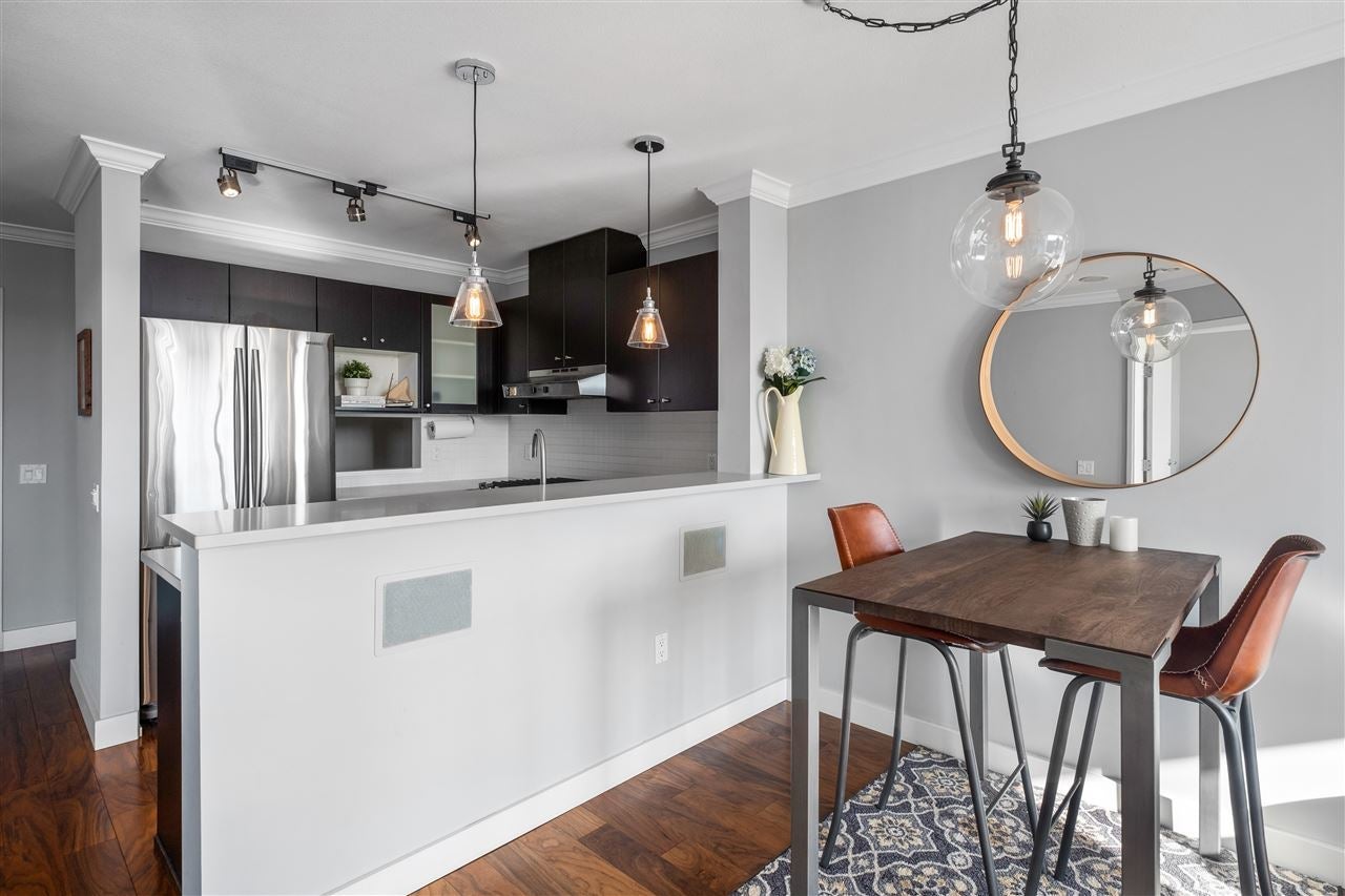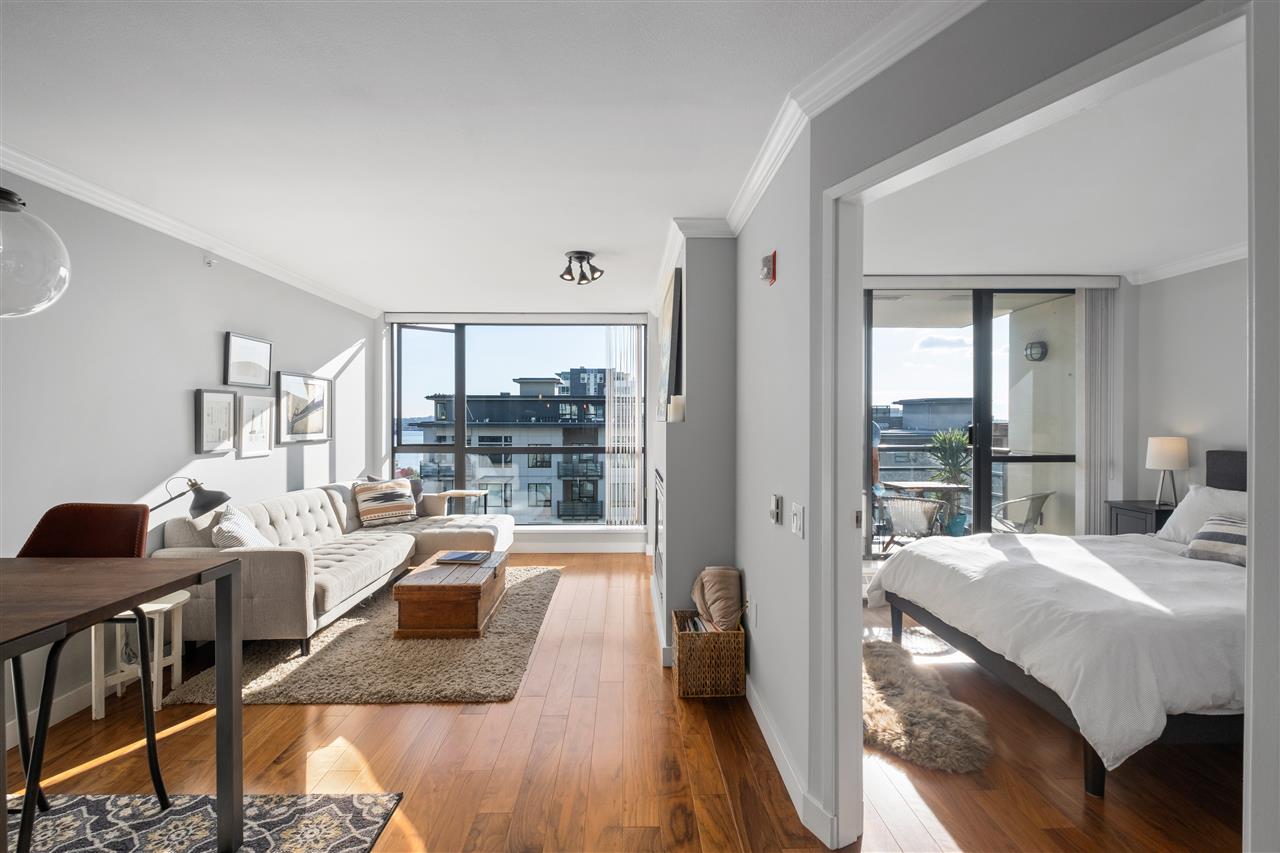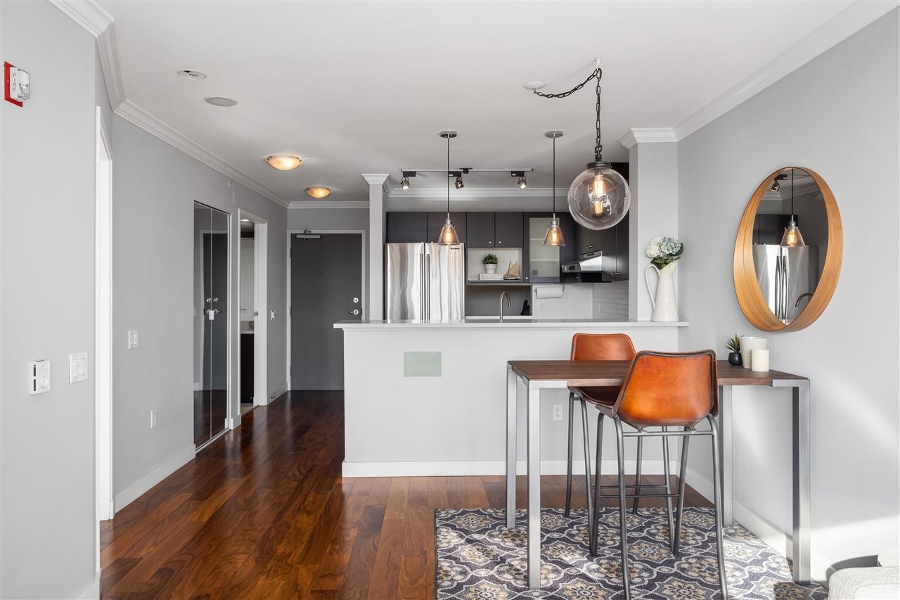 A SPECTACULAR, 632 SF 1 bedroom & den at THE Q! A perfect location in the heart of Lower Lonsdale with southern exposure capturing city & water views. This bright unit features newer walnut flooring, S/S appliances, quartz counters and designer lighting... pride of ownership is evident here. The living room & master bedroom are a great size with the large patio space, a perfect place to catch sunshine and sip on a cappuccino. Enjoy North Van's best amenities, including John Braithwaite Rec Centre, restaurants, shops, Lonsdale Q, and the seabus will have you downtown in 12 minutes. One parking & storage included. Enjoy living on the best block in Lower Lonsdale.