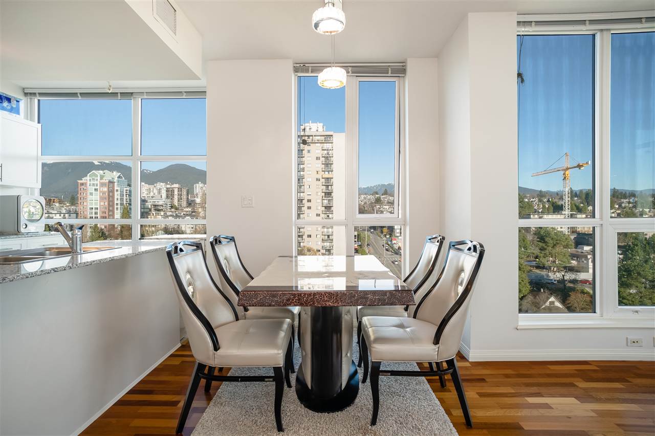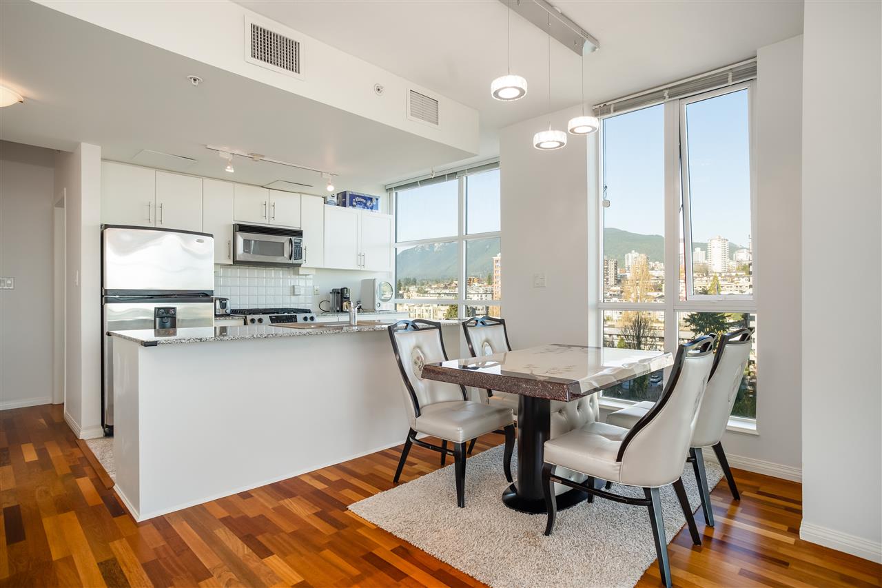 IN THE HEART OF Lower Lonsdale, offering 2 bedrooms, 2 baths, 950 SF on the 16th floor. A fantastic unit with unobstructed North East views of the Burrard Inlet and the North Shore Mountains with a great outdoor balcony. Featuring 9” ceilings, Air Conditioning, hardwood floors, granite counter tops and Bosch and Leighberr appliances. This lifestyle is amazing, with the new Shipyard district at your door step! A quick stroll to the Seabus to downtown Vancouver, restaurants, shops and the new Art Gallery. Pets and Rentals are allowed with restrictions, 1 parking and 1 storage locker is included.