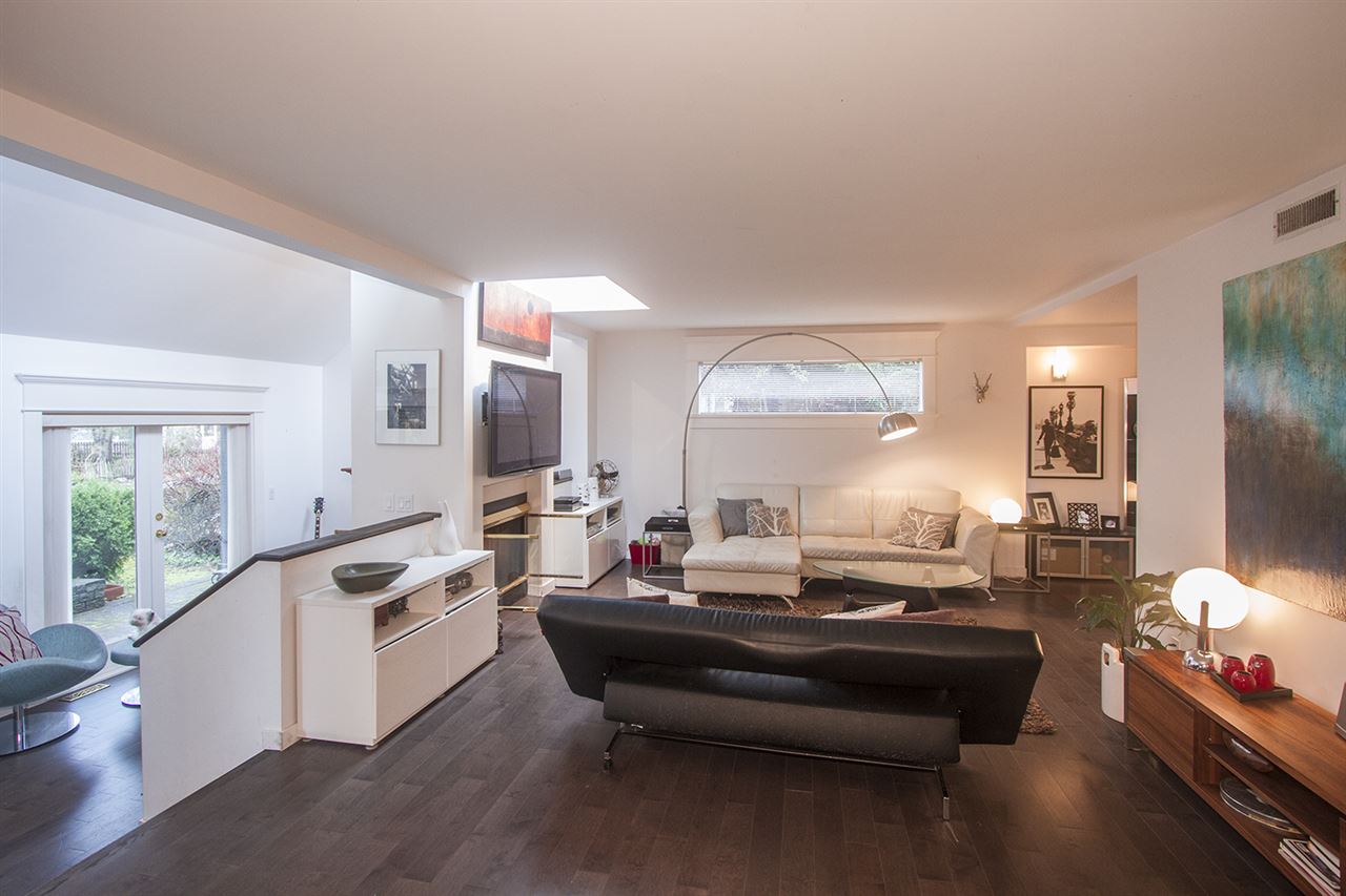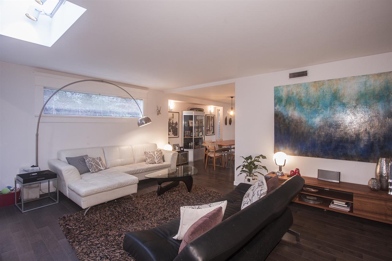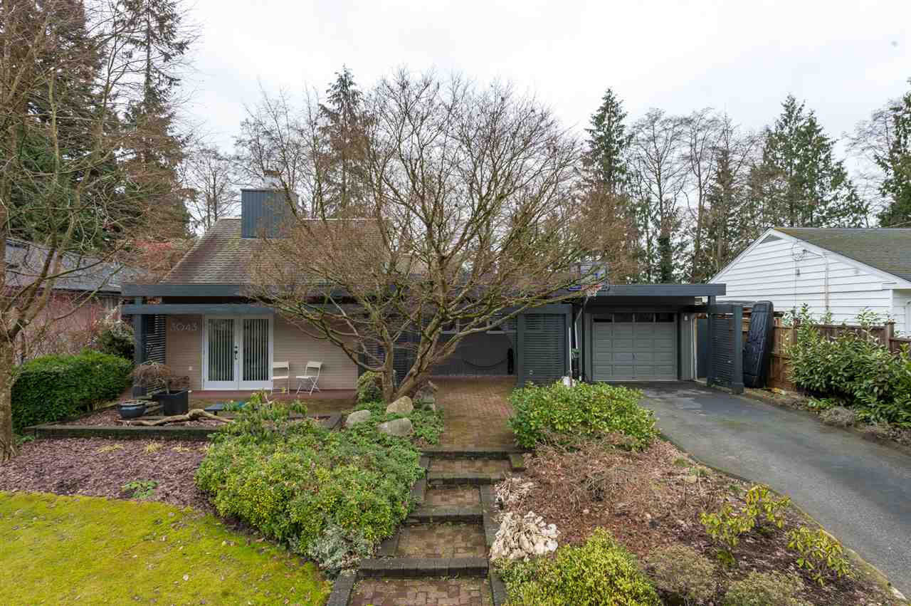 Architecturally designed rancher on a beautiful, private lot only 3 blocks from Edgemont Village. Endless opportunities for additional square footage, build or hold as an investment. This home features vaulted ceilings, skylights, entertainers kitchen overlooking the back decks with an endless greenbelt for complete privacy. This residence has double glazed windows, a see thru gas fireplace dividing the living room & large foyer/tv room & a functional plan. The third bedroom has been converted into an office/den and can easily be converted back if desired. The single garage is over 30ft long & could be used for storing a boat, trailer or converted into a workshop or guesthouse. A great opportunity ! All walking distance to popular Edgemont Village, and in the Handsworth School catchment.