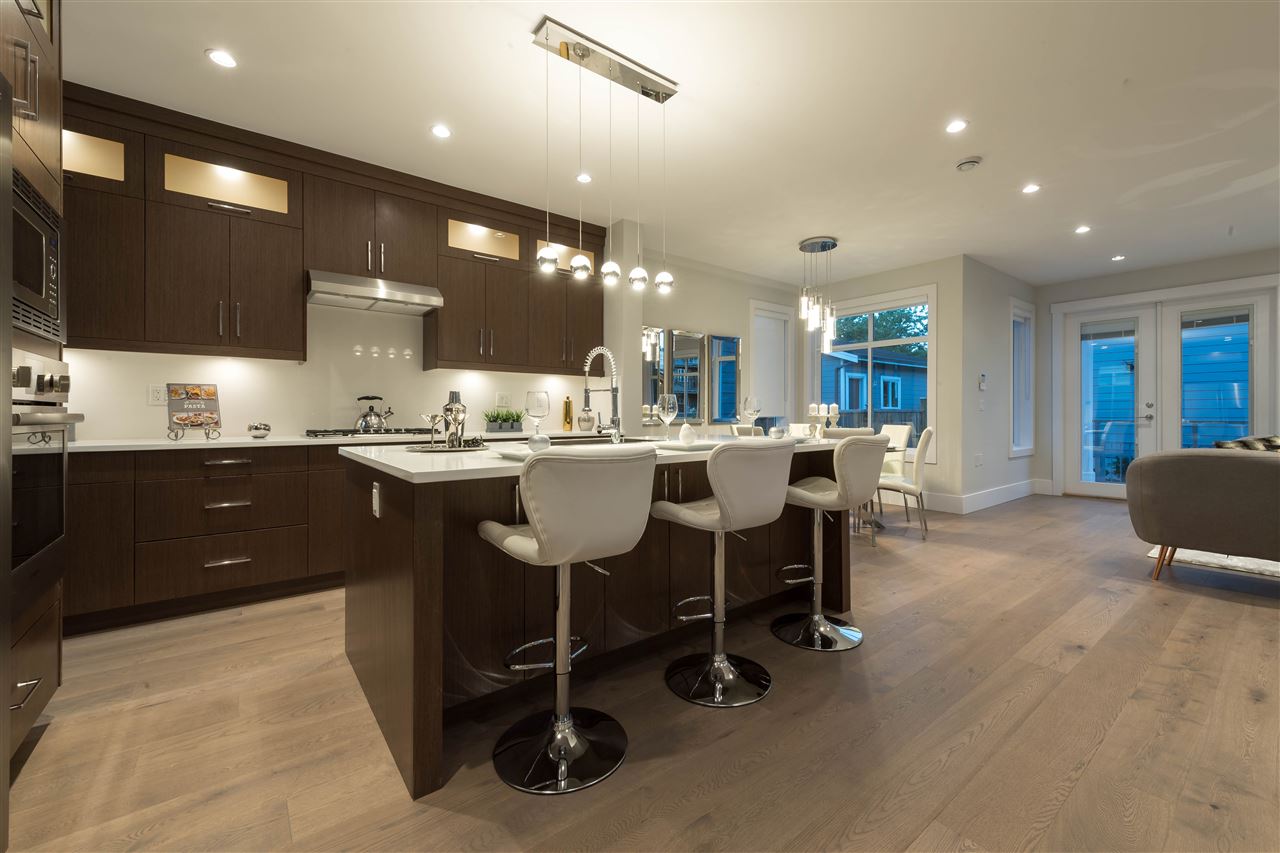 A SPECTACULAR new family home set in a popular Central Lonsdale location. This residence has been designed with a dramatic open floor plan with architectural vaulted ceilings, loads of natural sunlight and a legal 1 bedroom self contained suite. Enjoy the entertainment chef like kitchen, bright professional office, 3 bedrooms upstairs, an impeccable master ensuite with a large spa like bath, an expansive entertainment room down, and great indoor/outdoor living areas. Steps to schools, parks, trails and all of Lonsdale's trendy amenities. Built by a local builder and an award winning designer, this 3 level 3100 SF home displays practical livability. Open house Sat & Sun from 2-4 pm.