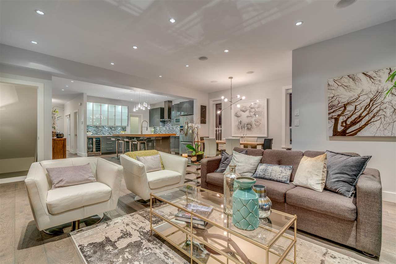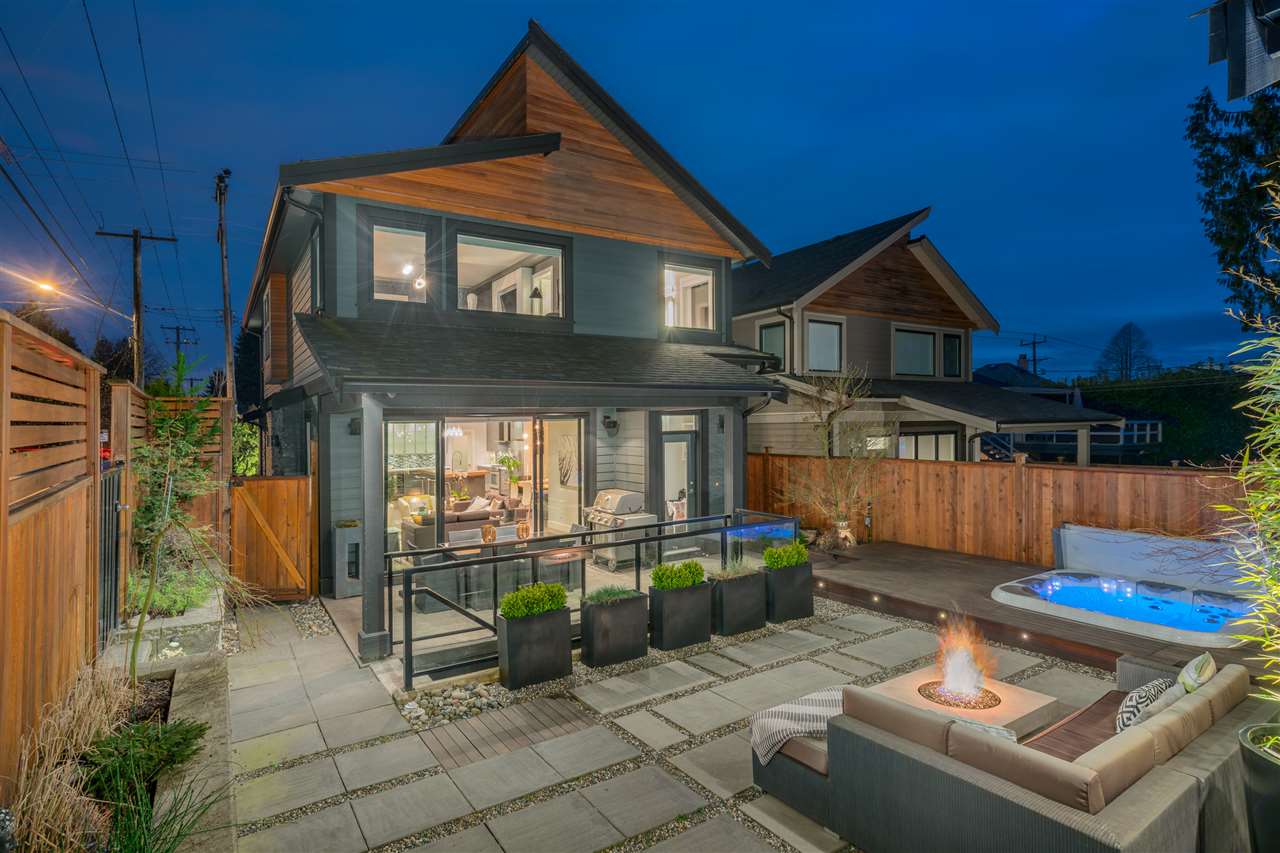 STUNNING RESIDENCE in the heart of Central Lonsdale. Incredible living format, offering 3600 SF of custom finishes, luxurious design, and simple elegance. The main floor is seamlessly designed with a great open concept plan, a luxurious office, all to escape to a relaxing backyard atmosphere with lush Japanese gardens, integrated hot tub and a fully converted high end gym/garage. The upstairs includes 3 interior designed bedrooms, a spa-like master suite and a flex space off the stairs. Down offers an ambient lit dramatic theatre room and a perfect income generating suite. Minutes to everything life has to offer, conveniently located on the Green Necklace walking trail, built with exceptional building standards w many upgrades!