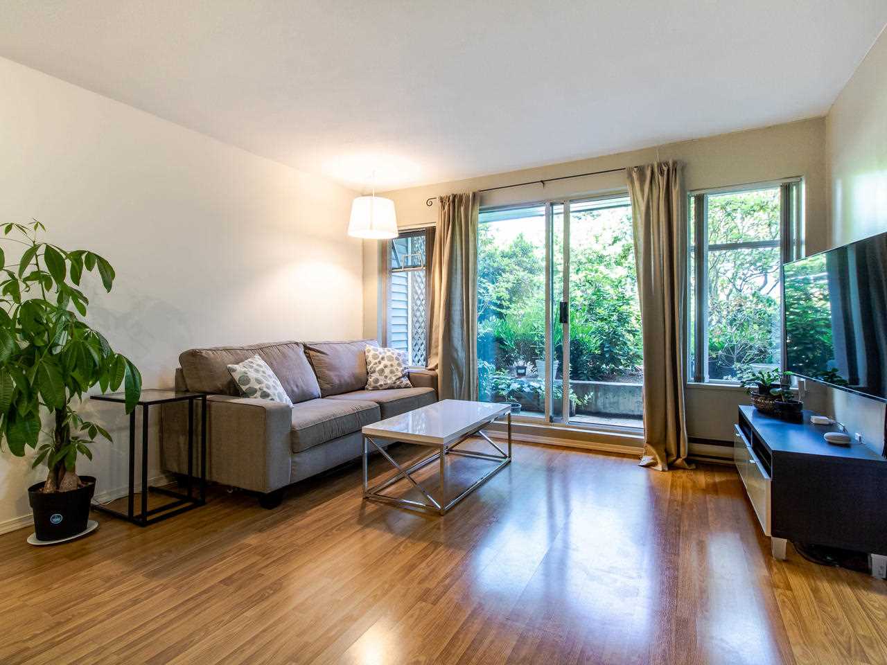 Capitol Hill GEM! Spacious one bedroom and den that's almost a 2 BR. Bright living room opens to a quiet patio surrounded by greenery. Efficient kitchen with stone counter tops, glass backsplash, lots of cupboards & stainless steel appliances. Dining room with huge pantry has plenty of room for nice sit-down dinners. Big bedroom and den can be used as a second bedroom. Updated bathroom has nice counter tops and tiled floor. Convenient in-suite laundry. Plumbing has been updated. MOVE-IN READY. Centrally located. Close to schools, shops and transit. No pets allowed. All measurements are approximate and should be verified if important.