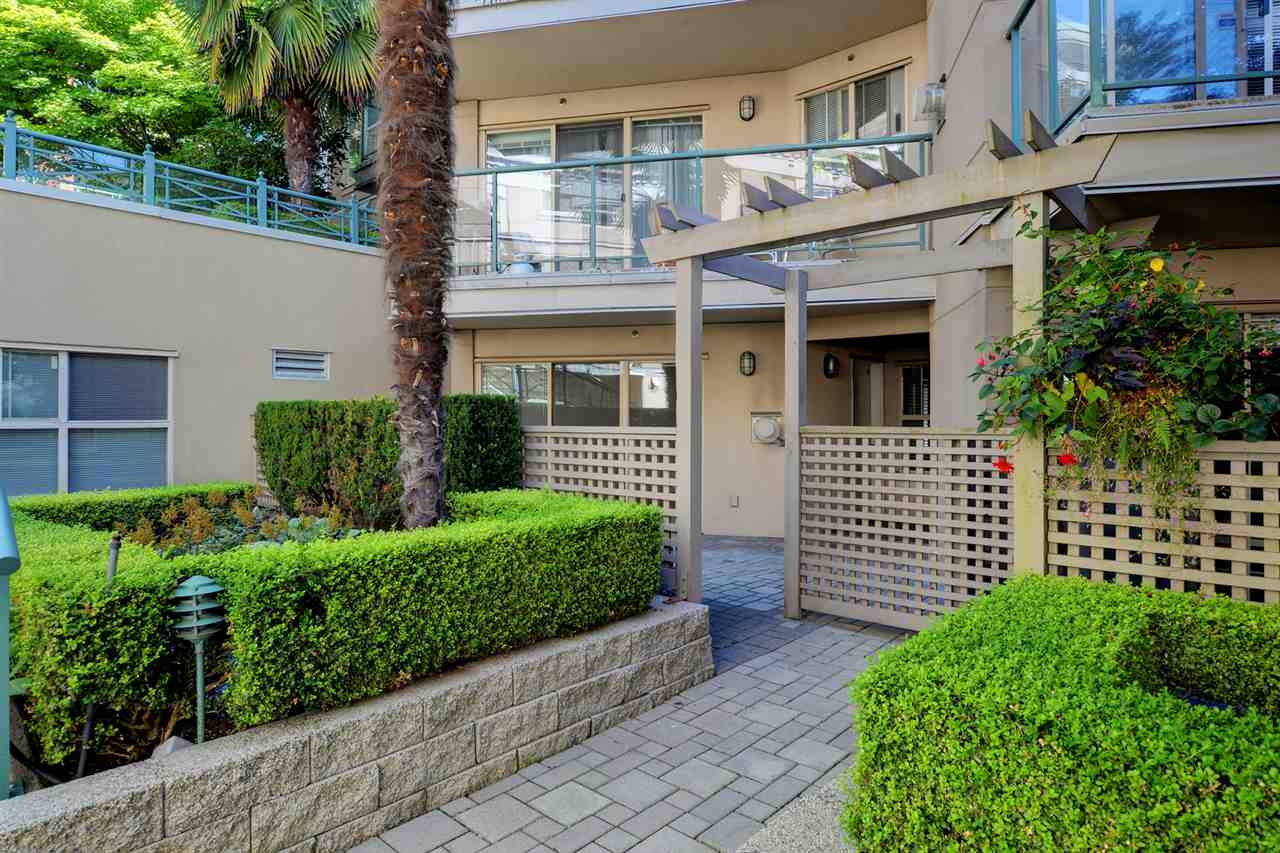 The C in C1 refers to Courtyard. Enter the Courtyard from the main gates on Lonsdale and unit C1 from the opposite side of the Courtyard that does not front Lonsdale. Any distant traffic sounds are muted by soothing sounds of the trickling fountain water near C1's patio. This freshly painted, well cared-for, quiet, open concept unit has a large bedroom, walk-through closet, and a den that could easily serve as an office, a tv/stereo room or accommodate another bed if preferred. Imagine purchasing this marvellous unit, in the well-maintained Calypso community, within minutes walking access to shops, restaurants, seabus & all that this terrific Lower Lonsdale location has to offer.