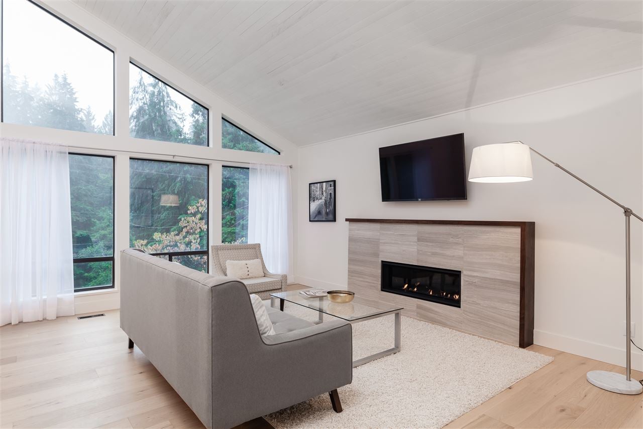 West Coast Post & Beam Masterpiece! This incredible home has been completely renovated down to the studs & is ready for its lucky new home owners. Live in complete privacy with only 1 neighbour. Sunny WEST facing lot w/gorgeous views of Seymour River & fully landscaped to include green space perfect for children's play time & can been seen from the kitchen. Open your double sliding doors to your 600SF, sun drenched, private patio paradise perfect for summer BBQ's & parties w/friends. Features- 15ft ceilings, built in speaker system, wetbar w/wine fridge, gas fireplace, tons of windows & natural light, open floorplan, double car garage & stand alone dry storage room. 3 bed's up & family room (could be 4th bedroom)& laundry down. Open House Nov 12th 2-4pm. This has that WOW factor!
