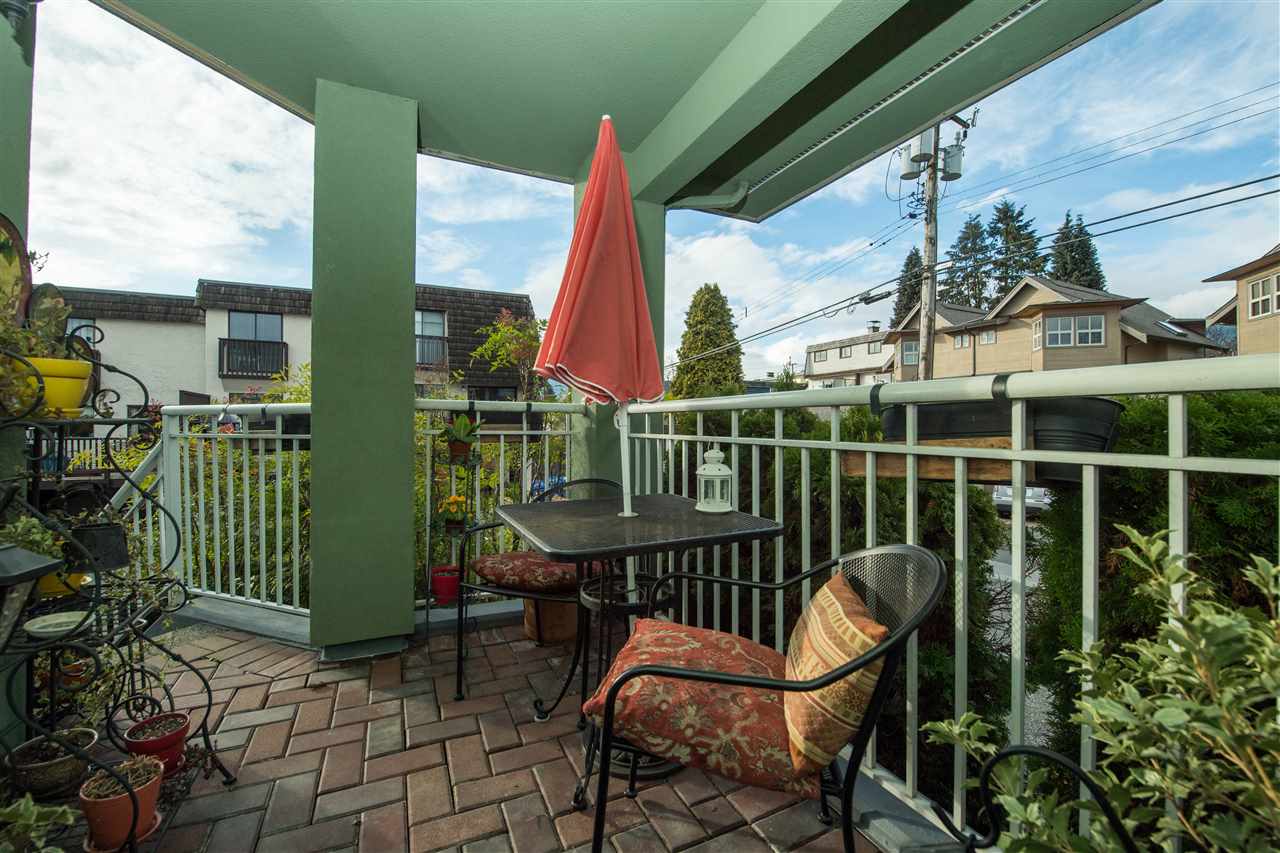 A GARDEN LEVEL SUITE IN LOWER LONSDALE. This well designed one bedroom apartment shows beautifully! Corner unit offering this two-tiered brick patios, one covered and one exposed to the sunshine offering the best in indoor to outdoor living. Lots of windows, gas fireplace, bright kitchen, in suite laundry and the building has been well kept & rainscreened, secure parking, storage. Easy stroll to all of Lower Lonsdale's amenities, the Quay, the Sea bus, shopping & very convenient for all transport. OPEN SATURDAY 2-4