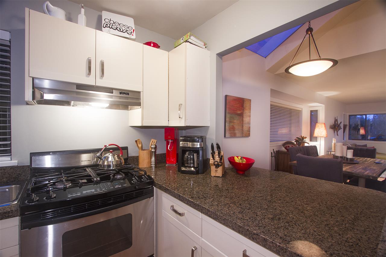 A spectacular updated residence with ocean & city views in desirable Upper Lonsdale. Featuring 2 levels, 4 bedrooms, 2 bathrooms, 2000 SF of open living space with a perfect professionally renovated suite downstairs. Upstairs offers a stunning open concept kitchen with granite counter-tops & SS appliances, brand new designer bathroom with a rain shower, dining room with vaulted ceilings, cozy fireplace & amazing sky lights. The new expansive back deck is perfect for entertaining while the front captures the amazing sunsets. Many upgrades along the way, this home is a MUST SEE! Lane access, fabulous location and kept immaculately. Over 100 k spent in the last year, including new plumbing, decking with a gas bbq hookup, gutters, carpet and many possibilities for expansion.