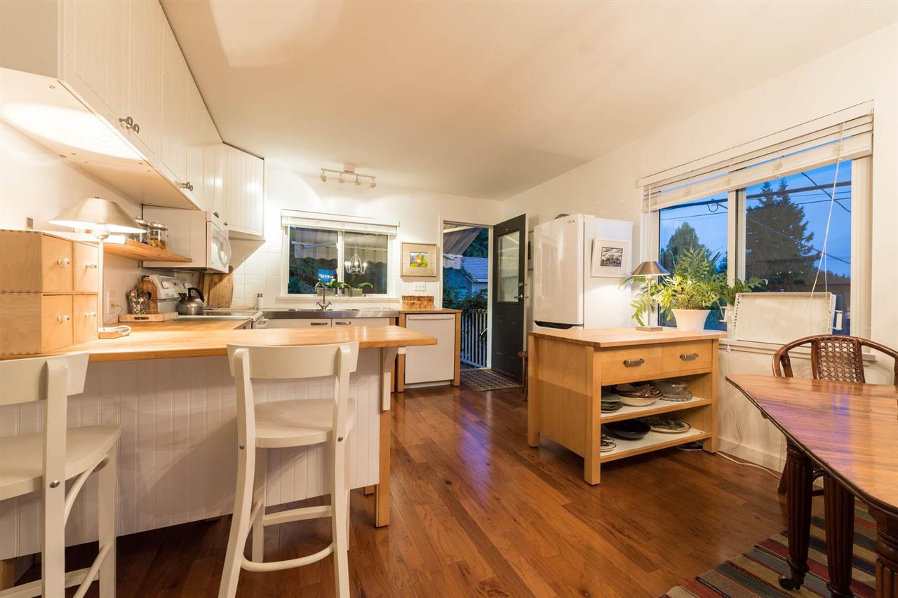 EXCEPTIONAL VALUE in Upper Lonsdale! This charming two level home is situated on a south facing corner triangular lot offering renovated living upstairs with 2 beds 1 bath, with a self contained 2 bed suite down. Boasting hardwood flooring, Navien hot water on demand, aluminum roof, energy efficient double glazed windows, a private & beautifully landscaped yard and peek-a-boo views of the harbour and Lions Gate Bridge. A perfect long term investment with potential rental income. Ideally located close to all the amenities Lonsdale has to offer including a short stroll to Queensdale Market, transit & with easy access across the North Shore or to downtown from Highway 1. Don't miss this great opportunity to get into the market, renovate, or hold! Opportunity to own Land with a rentable home