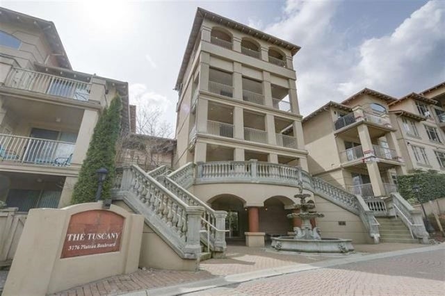 Welcome to The Tuscany located in prestigious Westwood Plateau. This spacious 1200 sq ft 2 level home has stunning mountain & golf course views. A very functional and open layout with 2 bedrooms on either side of the condo both with their own full bathroom. Other features include: Gourmet kitchen with newer SS kitchen appliances, dbl sided granite Gas fireplace, Laminated hardwood flooring, 2 newer bathroom, mirrors, glass tile walls. In suite laundry. Balcony with entrance from both living room & master bedroom. 1 parking stall & 1 locker are also included. RENTALS & PETS ALLOWED. Steps away from Hampton Park Elementary, Bus stop, Golf course, Parks and trails. This unit has it all!!