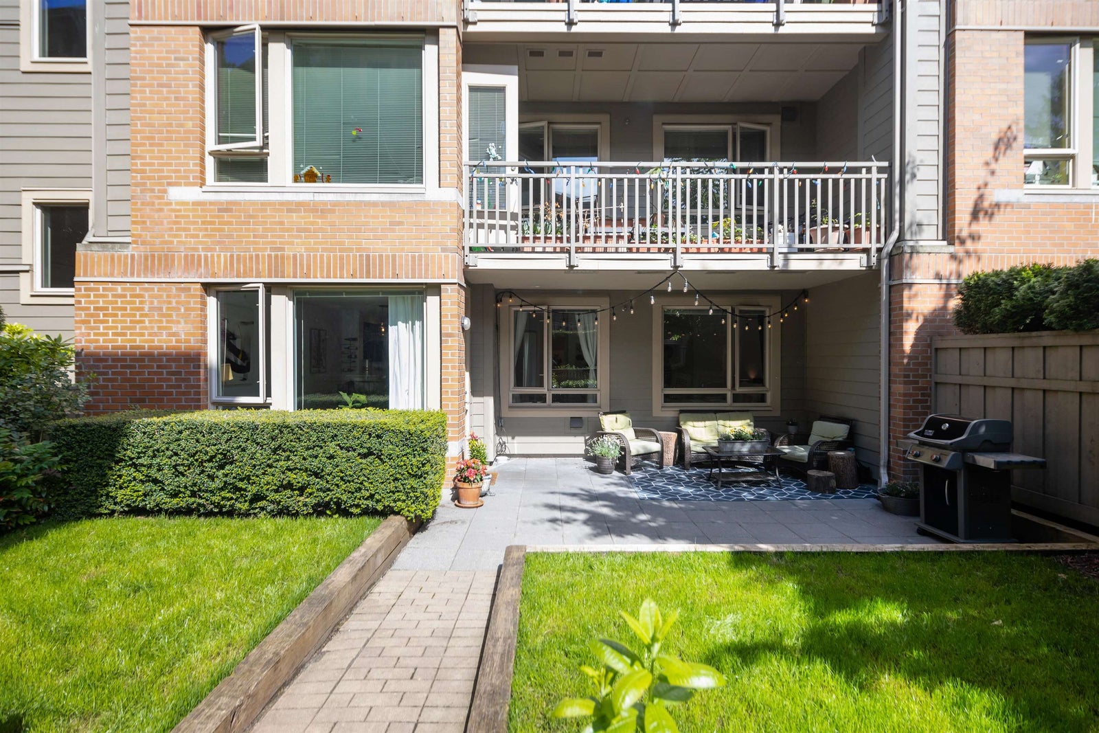 Prepare to fall in love w this dreamy ground-level home w a sprawling fenced yard at Anderson Walk by Polygon located in Central Lonsdale. Rarely available, this west facing 2bed/2bth unit is flooded w natural light throughout the functional floor plan. Perfect for entertaining - open the patio door to enjoy your 306sqft patio & watch the kids & dogs run free in the grassy yard. Feat. incl: sleek kitchen w s/s appliances, gas range, geothermal radiant in-floor heating, updated lighting & laminate floors, cozy fireplace, floor to ceiling windows, primary suite w large WIC & 4 piece ensuite. Building is well equipped w gym, bike storage & social room. Minutes to shops, restaurants, parks & recreation. BONUS 2 SIDE BY SIDE PARKING + 1 locker. 2 Pets & Rentals allowed. TRULY A MUST SEE!