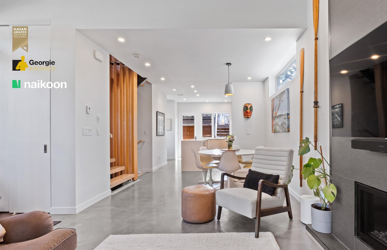 It’s an honour to be able to market this BC Georgie and HAVAN Ovation award winning missing middle project – The Ridge by Naikoon. Built to a higher standard this DETACHED home exceeds Building Code energy-efficiency requirements by around 40%, achieving Built Green Gold and Platinum standards. This unique offering features triple glazed Ply Gem Design windows, 5 zone in-floor radiant heating, Solar net metering, HRV, 4 zone Sonos audio, detached garage, polished concrete and engineered oak stairs, custom millwork and top of the line appliances from Miele, Faber and Jenn Air. Almost 1900sqft with multiple outdoor areas including 2 large roof decks with water and city views! Moments away from Central Lonsdale, St. Andrews on Eighth Café, Sam Walker Park, Moodyville and the Boulevard.