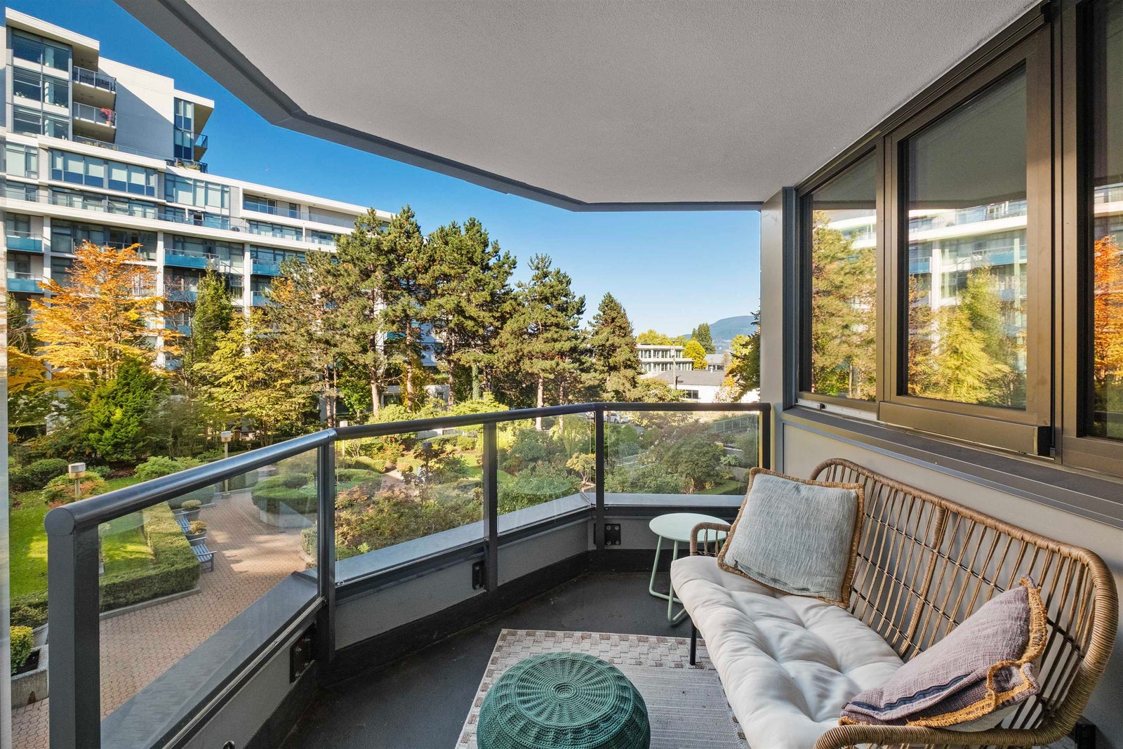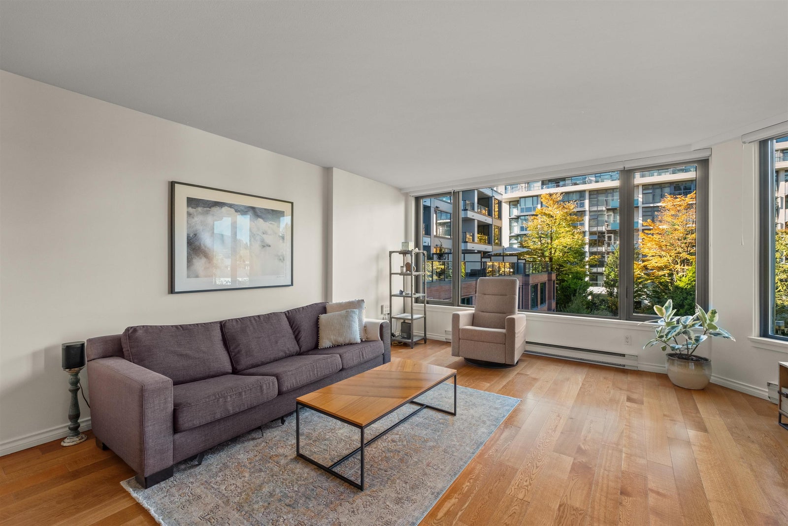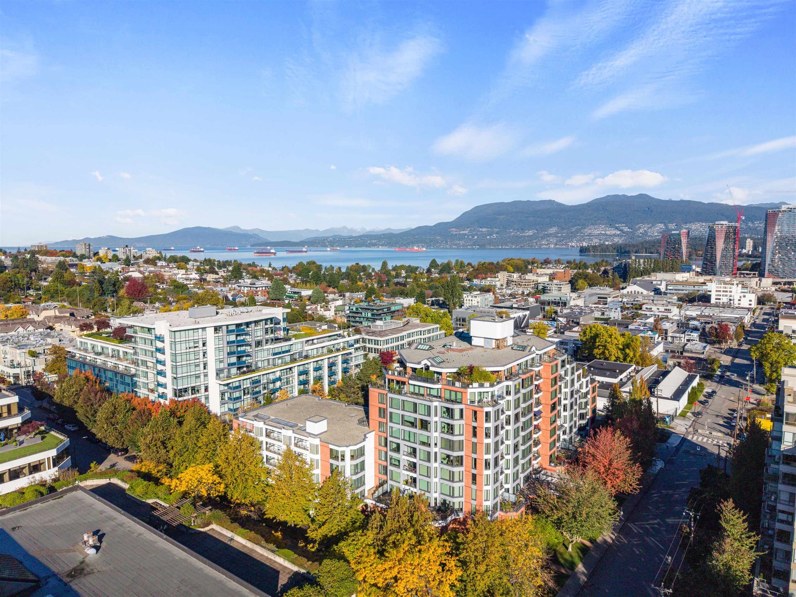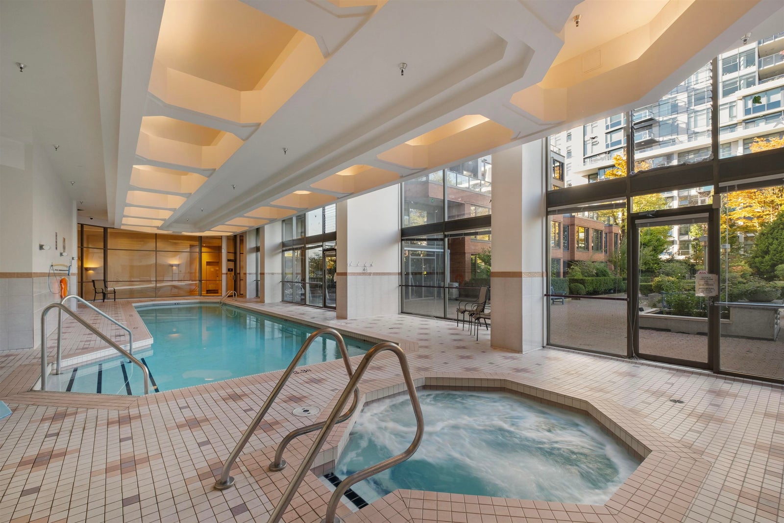 Meridian Cove – a premier concrete residence, fully rain-screened in 2023 with new triple-pane windows and is now EV-ready. This beautifully renovated 2-bed, 2-bath home showcases hardwood floors, a modern kitchen with stone countertop, ss appliances, and updated bathrooms. Thoughtfully designed by Urban Presentations, the cohesive interior exudes sophistication. A quiet west-facing outlook enjoys views of the tranquil inner courtyard. This suite incl. 2 parking and a locker. Residents enjoy resort-style amenities incl. a saltwater pool, hot tub, sauna, steam room, gym, garden courtyard, library, and hobby rooms. Steps to Granville Island, West 4th, and the new Burrard Slopes Park. Very proactive and sought after building! Only 600m from the Broadway Line Extension.