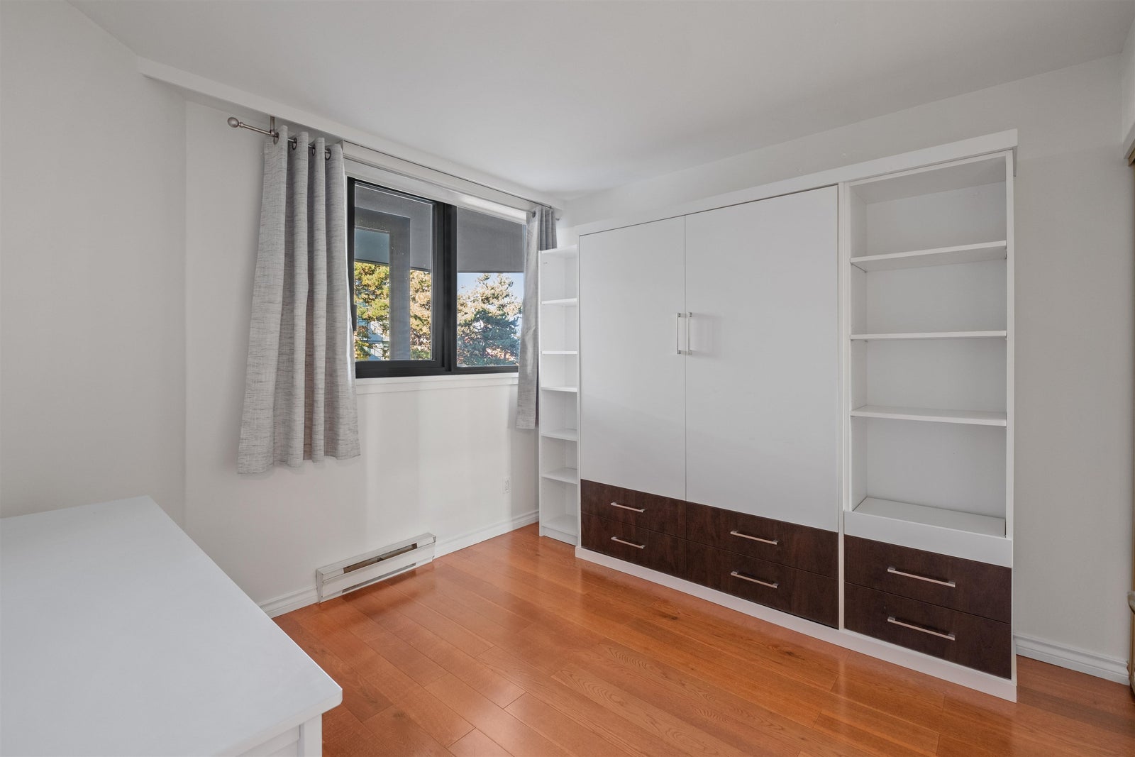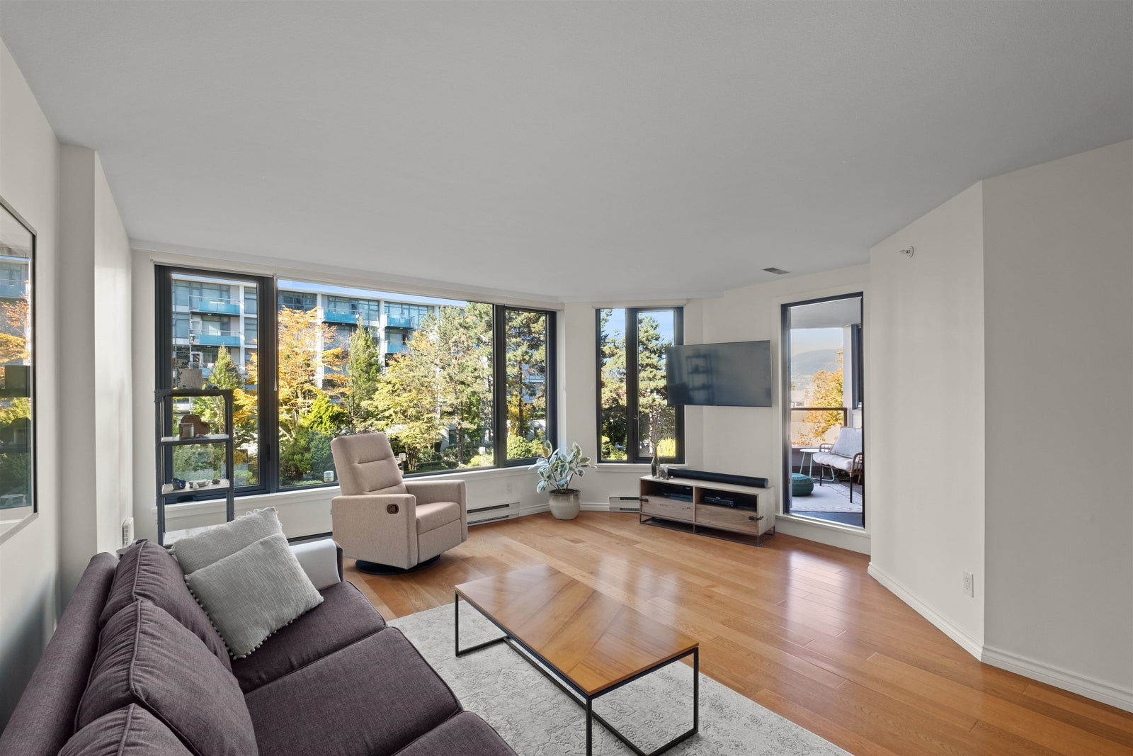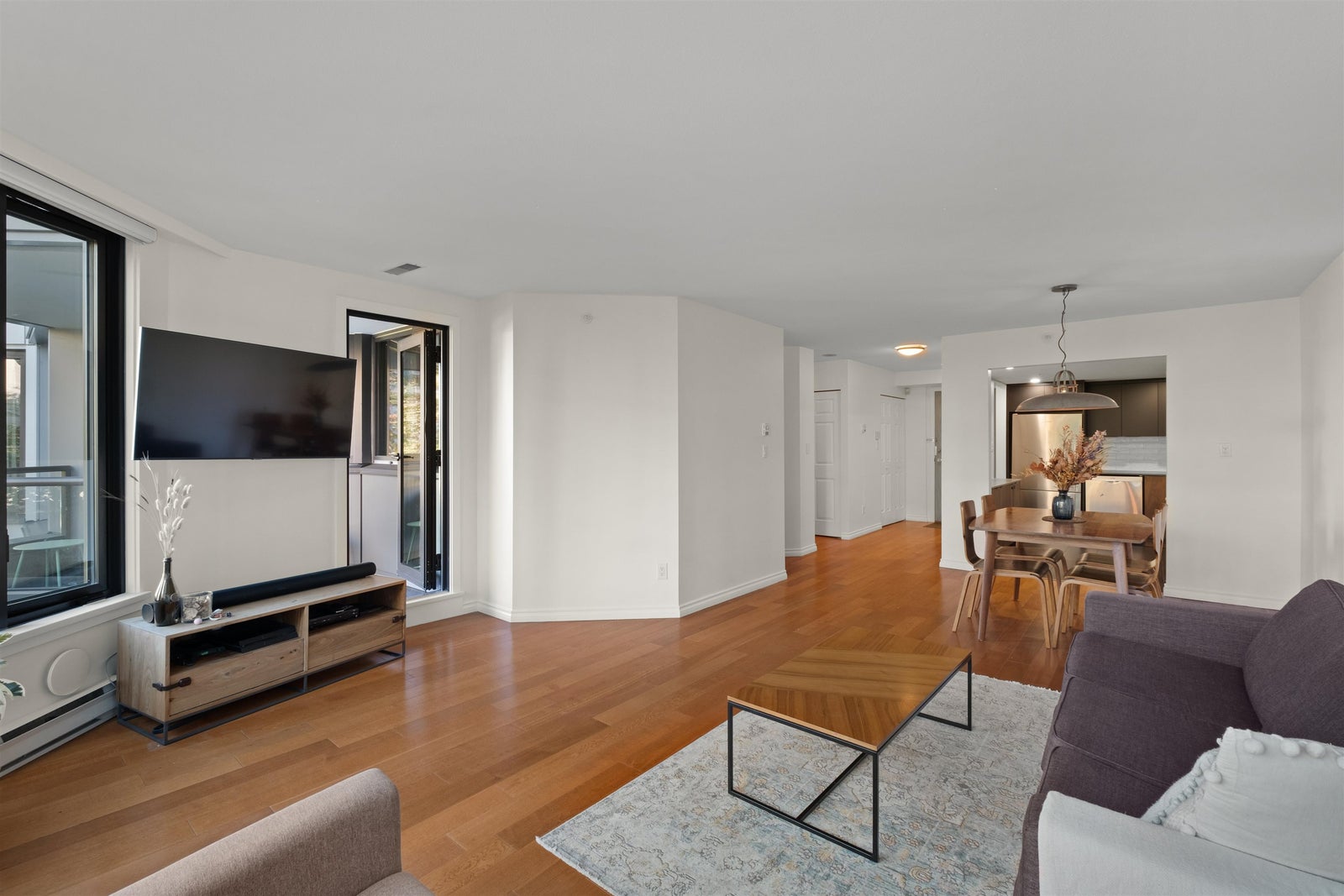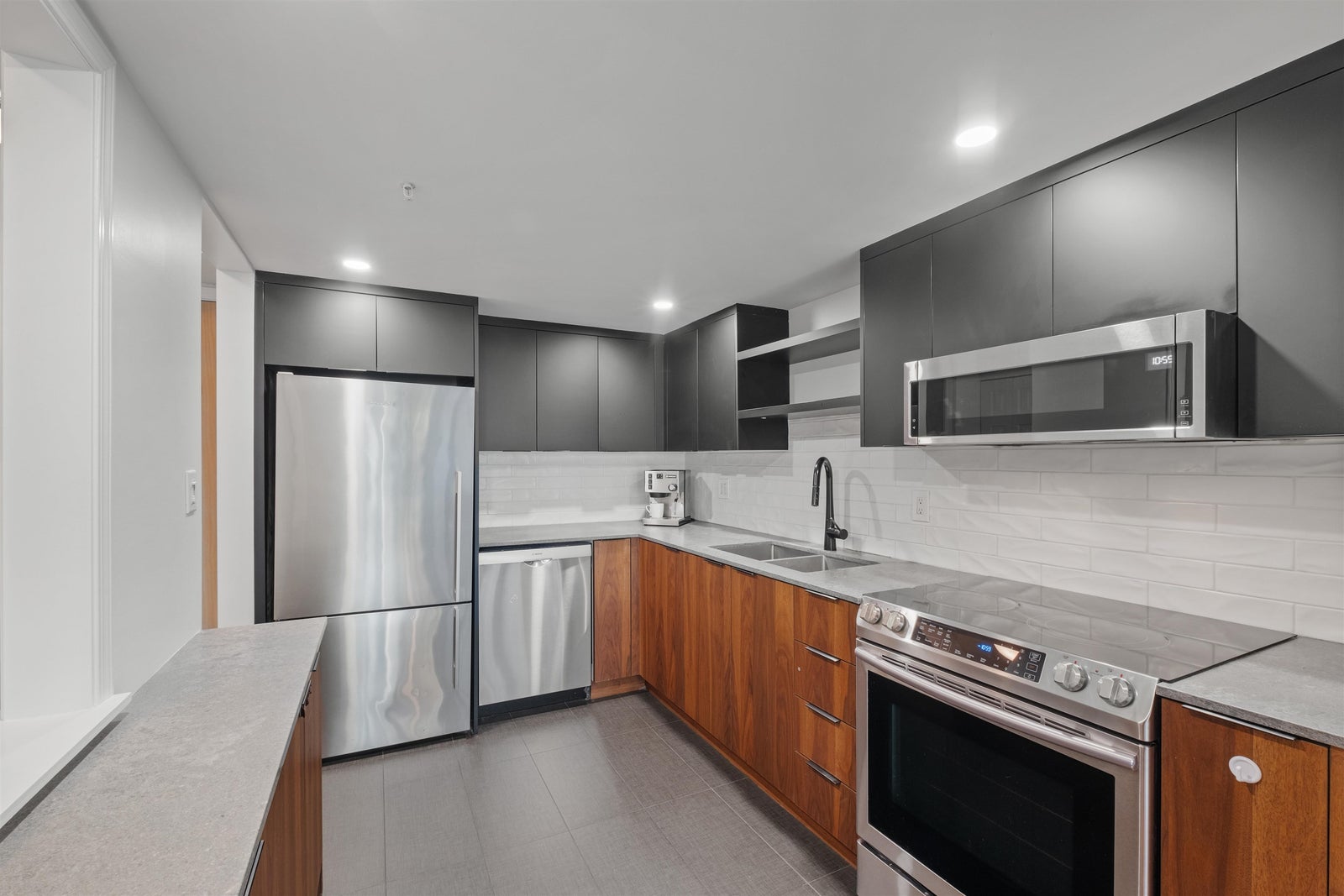 Meridian Cove – a premier concrete residence, fully rain-screened in 2023 with new triple-pane windows and is now EV-ready. This beautifully renovated 2-bed, 2-bath home showcases hardwood floors, a modern kitchen with stone countertop, ss appliances, and updated bathrooms. Thoughtfully designed by Urban Presentations, the cohesive interior exudes sophistication. A quiet west-facing outlook enjoys views of the tranquil inner courtyard. This suite incl. 2 parking and a locker. Residents enjoy resort-style amenities incl. a saltwater pool, hot tub, sauna, steam room, gym, garden courtyard, library, and hobby rooms. Steps to Granville Island, West 4th, and the new Burrard Slopes Park. Very proactive and sought after building! Only 600m from the Broadway Line Extension.
