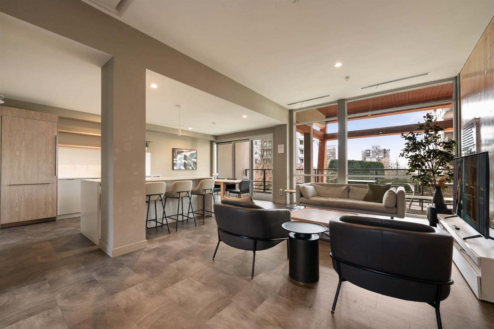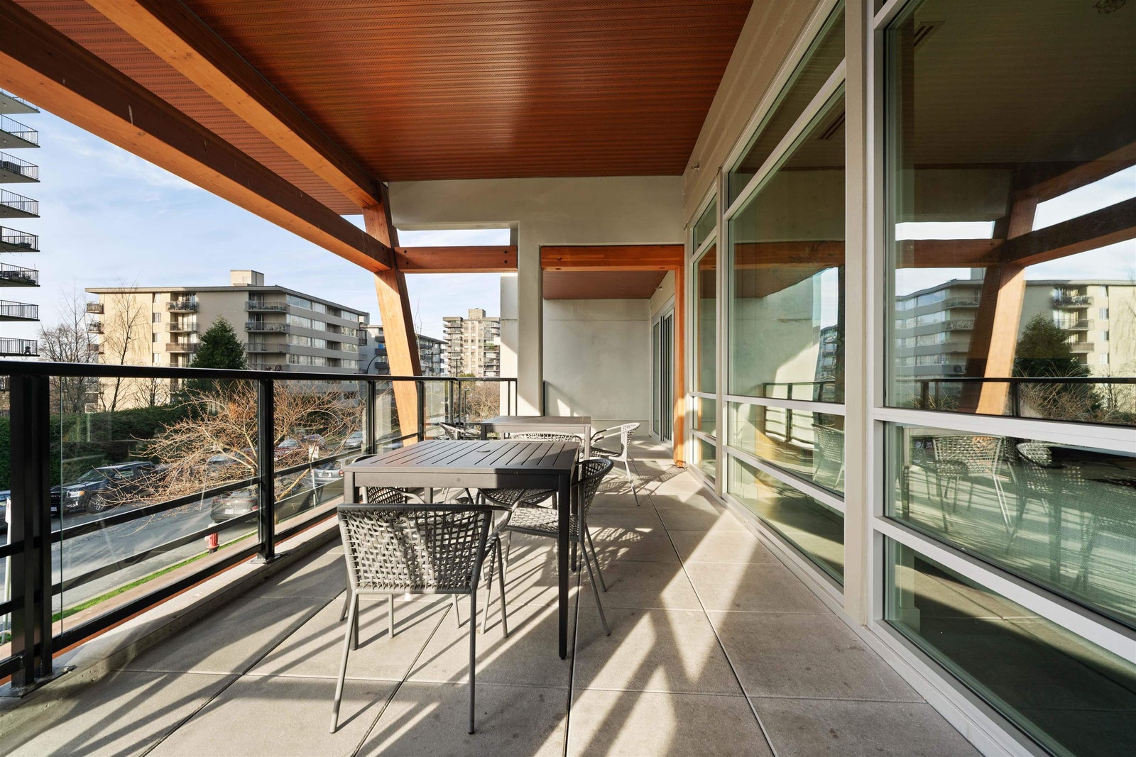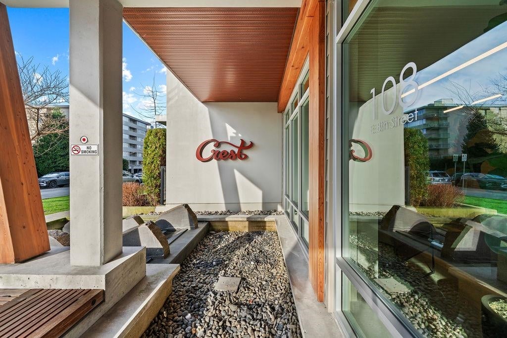 A STUNNING 3 BEDROOM CORNER UNIT, Welcome to Crest. This single-level 1,030 SF residence offers bright, open-concept living and a true standout feature: an impressive 375 SF covered private wrap-around balcony designed for year-round use, ideal for BBQing, gardening, and relaxing in any season. The gourmet kitchen is appointed with quartz countertops, premium stainless steel appliances, and sleek fixtures that flow seamlessly into the spacious south-facing living and dining areas, highlighted by peek-a-boo ocean views. Completed in 2021, this award-winning development is constructed with SmartWood® innovation and cross-laminated mass timber, delivering a sustainable, sound-dampening build. Residents also enjoy premium amenities, including a fully equipped gym. OPEN SAT 2-4 PM